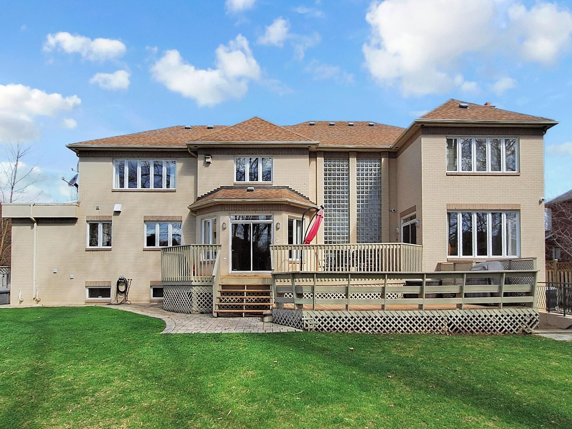 Prestigious * renaissance court * in prime ' thornhill ' community! Spectacular 107 feet x 228 feet south backing custom-built home on picturesque half acre treed lot with circular driveway and walk-up basement, 7500+ sq ft living space including 5155 sq ft on 1st and 2nd oor per mpac report. Nestled in one of thornhill's most exclusive enclaves. Separate entrance to the basement. Completely transformed with exquisite renovations, it features a stunning and dramatic floating staircase with expansive windows that floods the second level with natural light. The chef's gourmet kitchen includes stainless steel kitchenaid appliances, a butler's pantry, and a built-in panasonic microwave. Master bedroom includes two custom dressing rooms. One of them can be easily converted to a fifth bedroom. Additional features include beautiful sauna room, an in-ground sprinkler system, central vacuum, and comprehensive window coverings and lighting fixtures. Hardwood oors/pot lights throughout the whole house. Beautiful view through all seasons. Mins to highway, shopping, restaurant, thearter , schools and public transit etc.