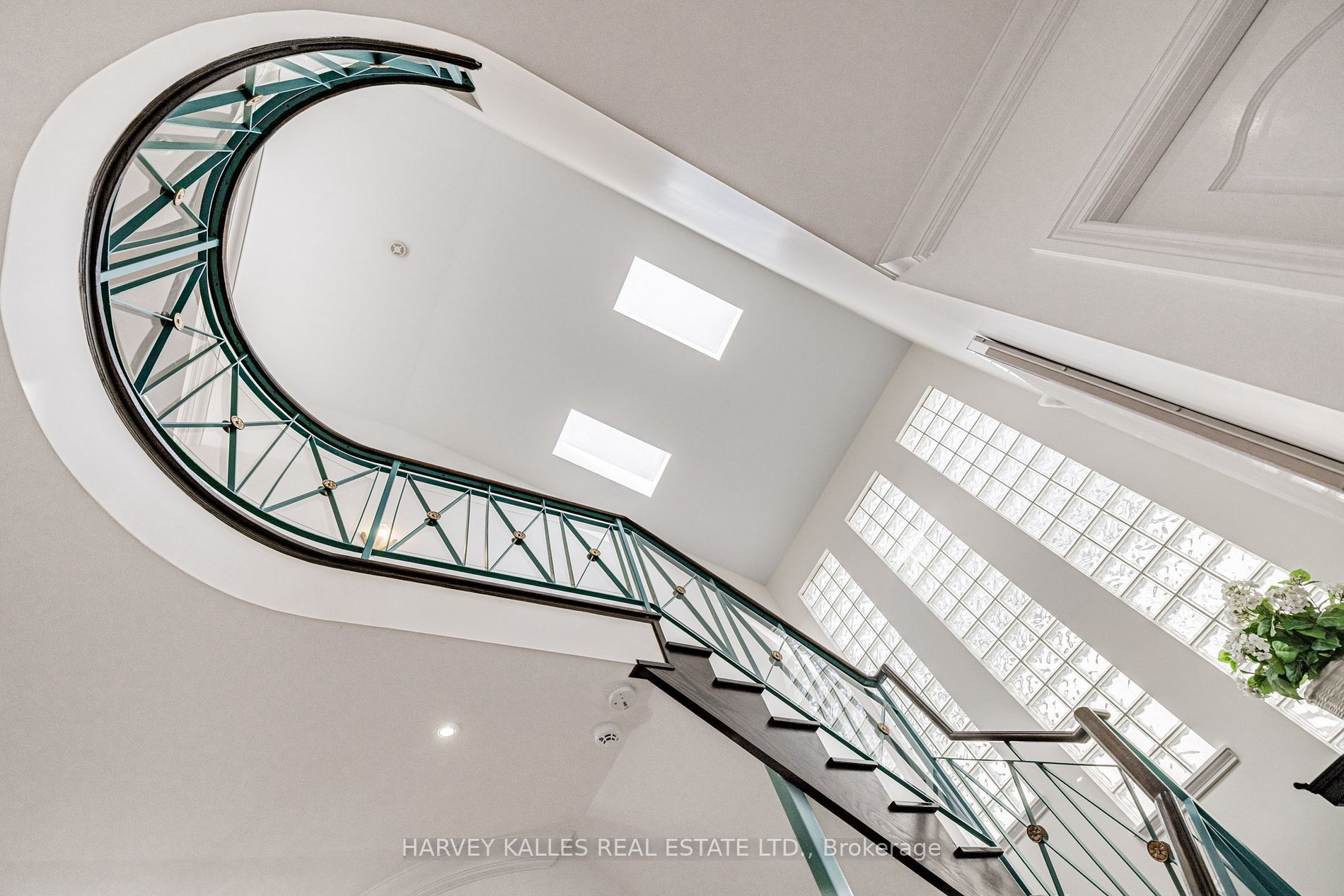Nestled on a quiet cul-de-sac in one of thornhill's most sought-after communities, this grand custom-built residence offers over 5,000 square feet of refined living space. Showcasing striking curb appeal, the home opens into a dramatic double-height foyer with skylights and a statement staircase. The elegant layout features 10 foot ceilings, formal living & dining rooms, as well as a private main floor office/music room. Gourmet kitchen with service pantry, quartz countertops, center island, gas stove & built-in appliances including 2 dishwashers. Breakfast area w/ walk-out to a newly constructed expansive deck. A family room with cozy gas fireplace, an updated powder room & a tucked-away laundry room complete the main level. Upstairs, the luxurious primary suite offers a sitting area, 2 oversized walk-in closets, and expansive ensuite bath. A spacious guest room w/ private ensuite and walk-in closet is perfect for in-laws or visitors. Two additional generous bedrooms share a bathroom with double vanity. The fully finished basement adds 2 more bedrooms/offices and a huge recreation space ideal for a theatre, gym, or playroom. Direct access to a double garage and mudroom w/sep entrance. Recently updated with fresh paint throughout, refinished hardwood on the main level, and new flooring upstairs & in the basement. Interlocked double drive, landscaped and set among beautiful homes in a diverse, family-focused neighbourhood. In close proximity to top-rated schools, synagogues, and an array of grocery and dining options. Conveniently located just minutes from hwy's 7 and 407, promenade shopping centre, ttc & yrt transit. Enjoy the many nearby parks and wonderful nature, all ideal for leisurely strolls or family outings.
