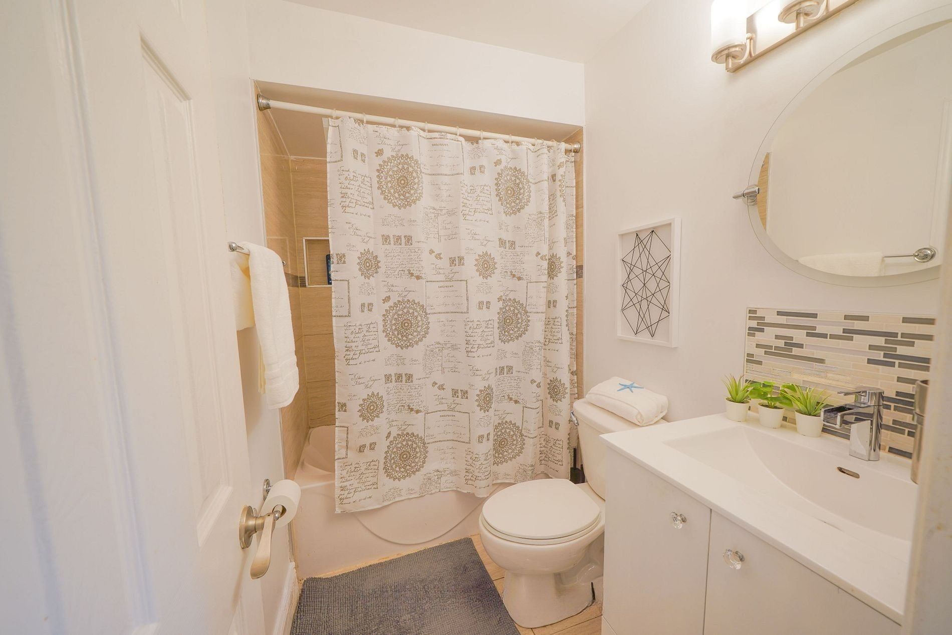 • Newly renovated kitchen with quartz countertops and premium appliances.