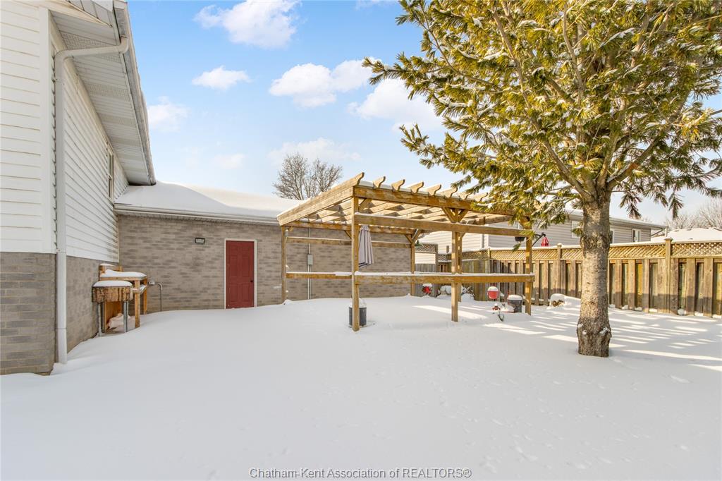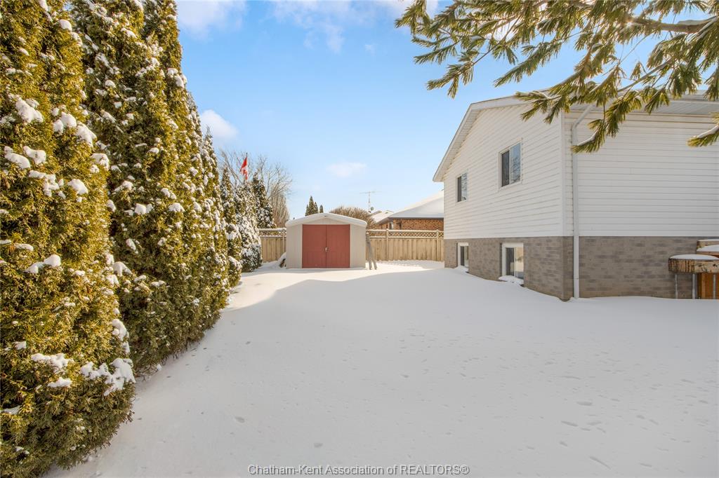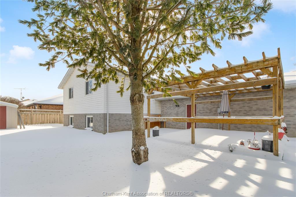 Nestled in a sought-after, family-friendly northside chatham neighbourhood, this spacious home is perfect for a growing family. Inside, you’re welcomed by a large foyer that offers direct access to the lower level, garage, and upper living spaces—an ideal layout for busy family life. The upper level features a bright and expansive living room filled with natural light, seamlessly flowing into a spacious dining area and well-appointed kitchen. With ample cabinetry and workspace, the kitchen is perfectly suited for everyday meals as well as hosting family and friends. The main floor is complete with three well-sized bedrooms and a four-piece bathroom, providing comfortable accommodations for the whole family. Downstairs, the fully finished lower level offers incredible additional living space, including a massive recreational room ideal for movie nights, a playroom, or a home gym. An additional bedroom and three-piece bathroom make this level perfect for guests, extended family, or a private home office. A dedicated laundry room and a large utility and storage area add to the home’s practicality. Step outside to your fully fenced backyard oasis, featuring a charming pergola—perfect for outdoor entertaining or relaxing evenings—along with a storage shed for added convenience. Located close to schools, parks, and amenities, this home checks all the boxes for family living in a prime location.
