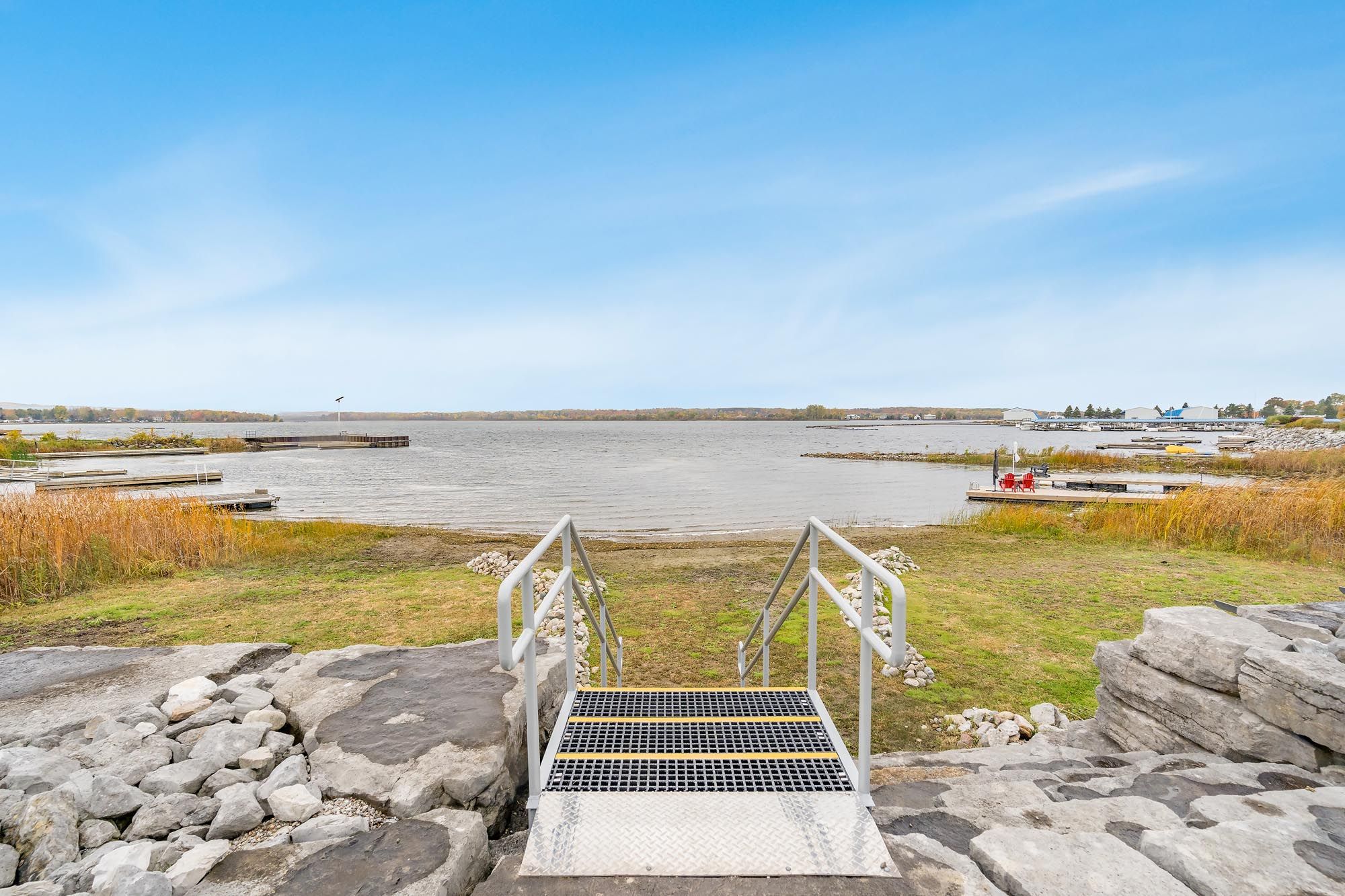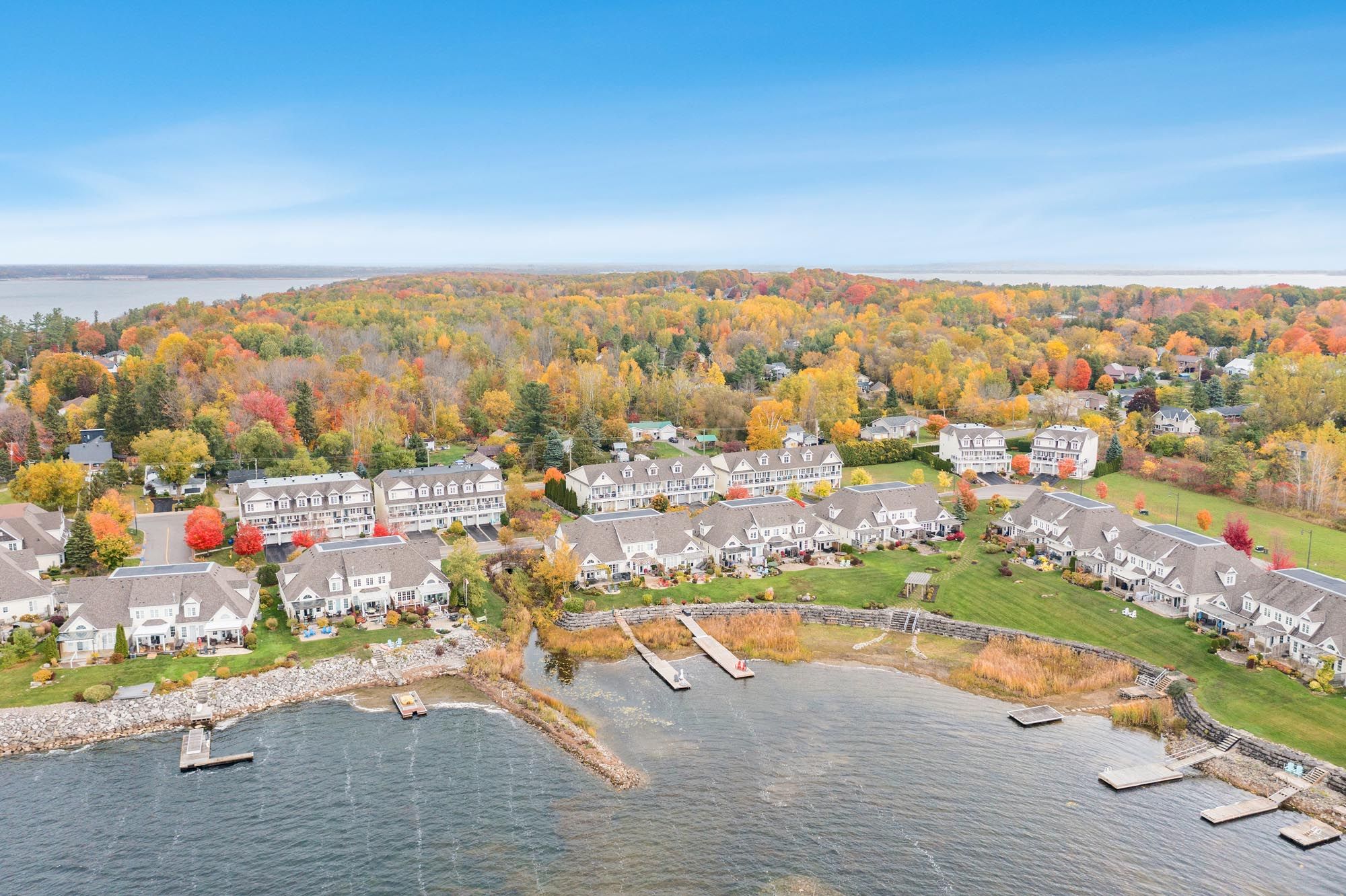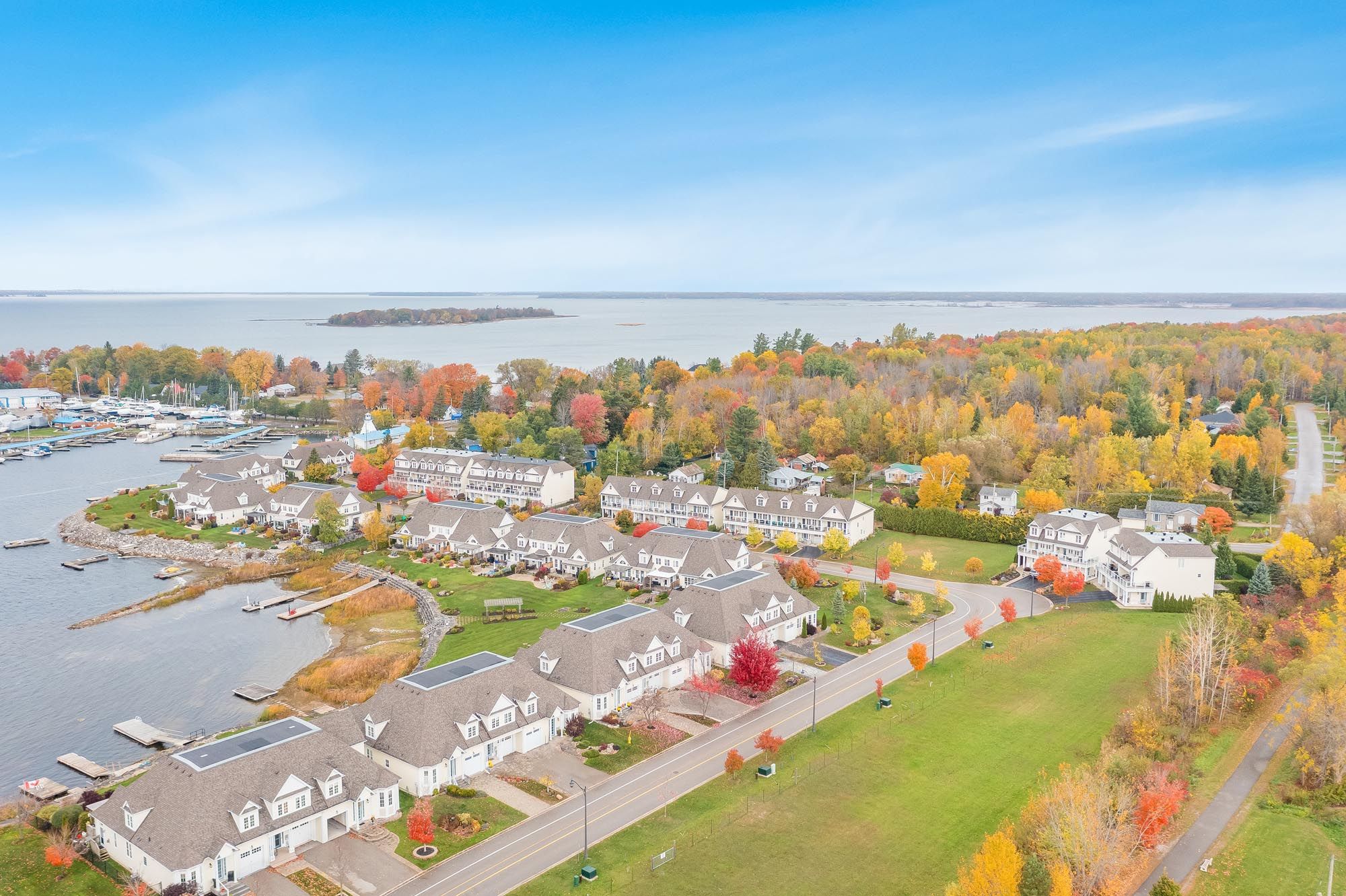 Top 5 reasons you will love this home: 1) beautiful freehold townhome in a sought-after waterfront community, offering low-maintenance living just steps away from the shores of hog bay 2) fully finished and thoughtfully upgraded throughout, this turn-key home is move-in ready and offers multi-generational capability with a one bedroom suite on each level 3) the upper level features an open-concept layout with 9' ceilings, a dual walkout to your own private balcony with beautiful sunset views, and a primary suite offering a a spa-like ensuite featuring a large soaker tub, and plenty of room to unwind 4) enjoy worry-free living with the homeowners association covering exterior maintenance such as grass cutting, snow removal, roofing, and exterior painting, all for $305/month (monthly) 5) ideally situated just minutes from the highway and within walking distance to the boat launch, beach, and marina, making every day feel like a getaway. 1,656 sq. Ft. Plus a finished basement.