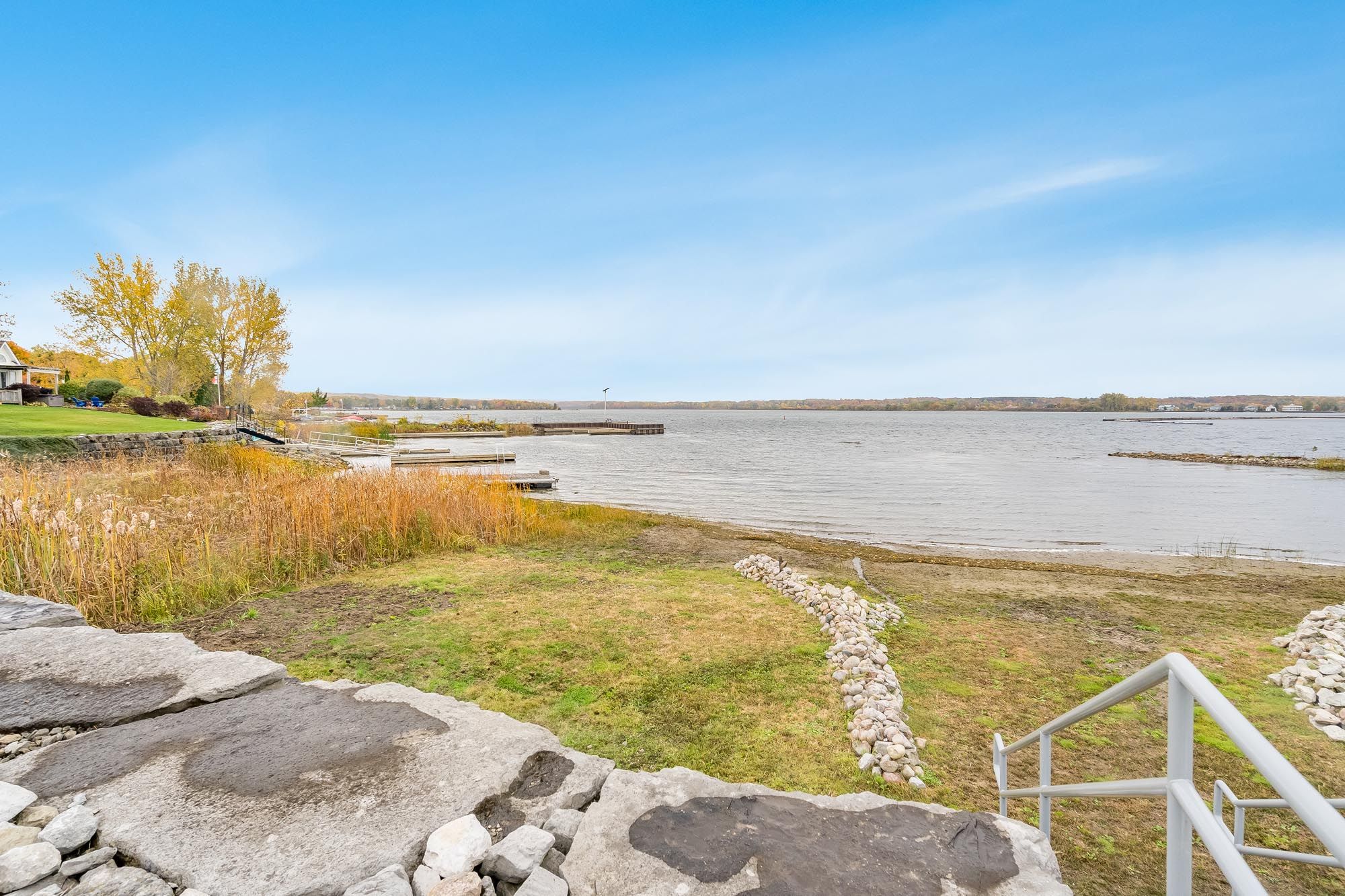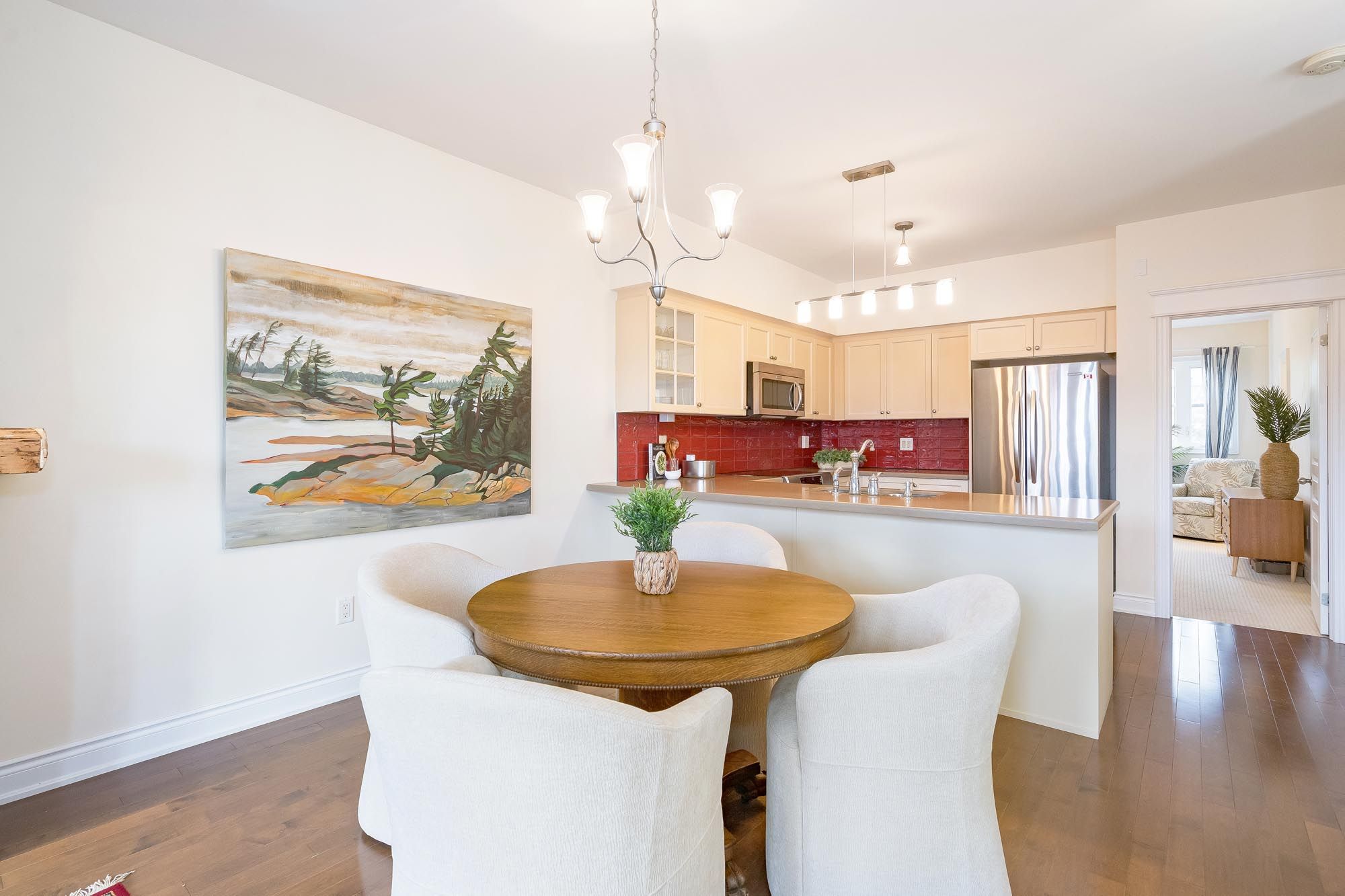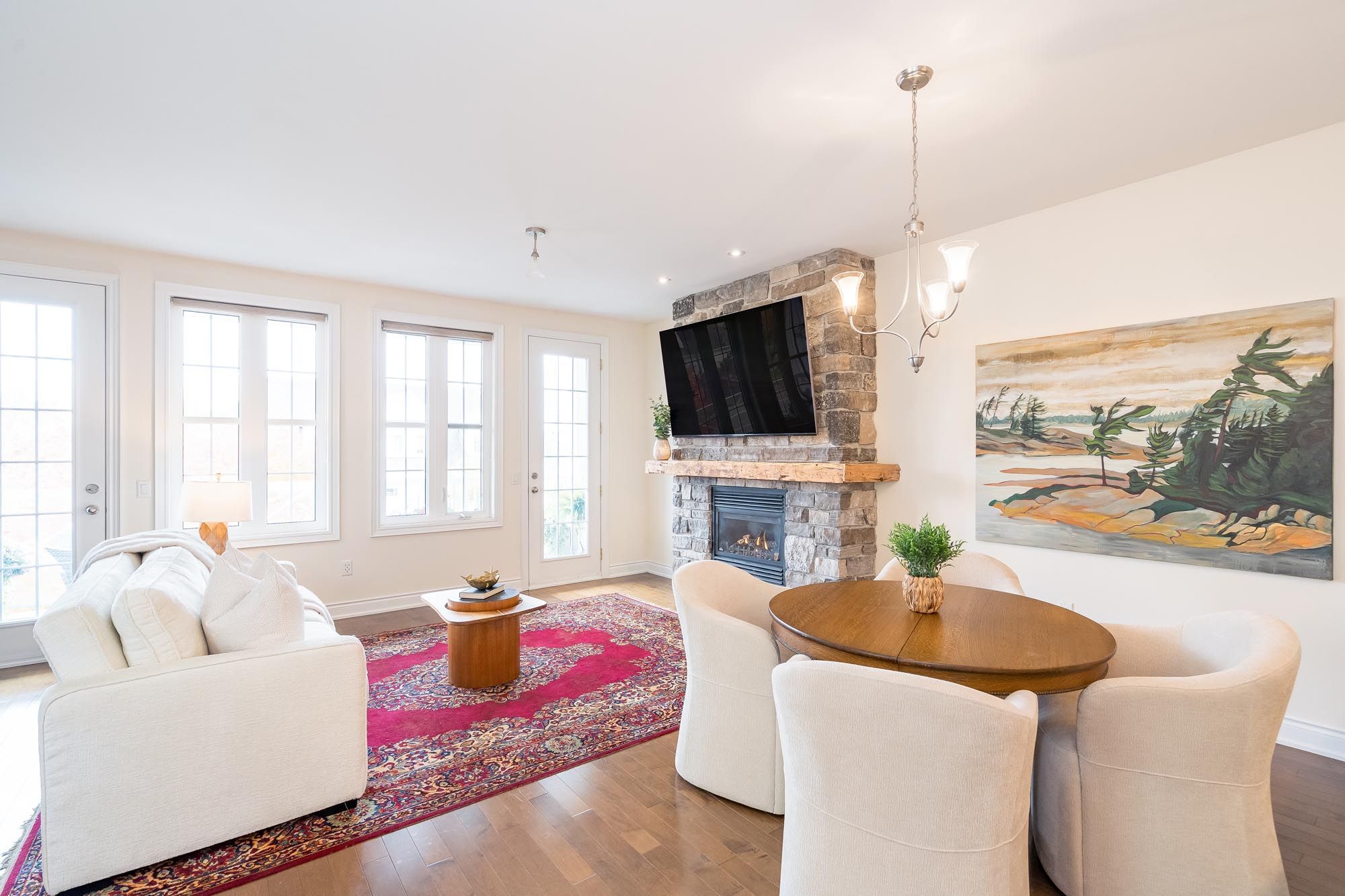 Top 5 reasons you will love this home: 1) beautiful freehold townhome in a sought-after waterfront community, offering low-maintenance living just steps away from the shores of hog bay 2) fully finished and thoughtfully upgraded throughout, this turn-key home is move-in ready and offers multi-generational capability with a one bedroom suite on each level 3) the upper level features an open-concept layout with 9' ceilings, a dual walkout to your own private balcony with beautiful sunset views, and a primary suite offering a a spa-like ensuite featuring a large soaker tub, and plenty of room to unwind 4) enjoy worry-free living with the homeowners association covering exterior maintenance such as grass cutting, snow removal, roofing, and exterior painting, all for $305/month (monthly) 5) ideally situated just minutes from the highway and within walking distance to the boat launch, beach, and marina, making every day feel like a getaway. 1,656 sq. Ft. Plus a finished basement.