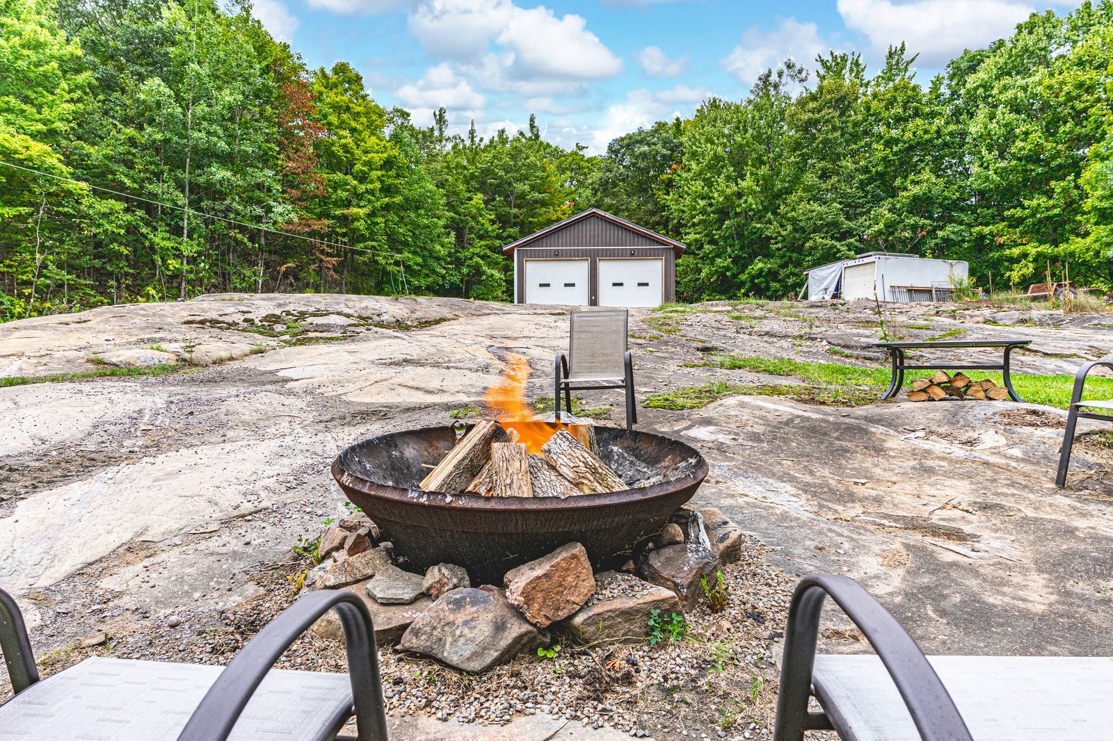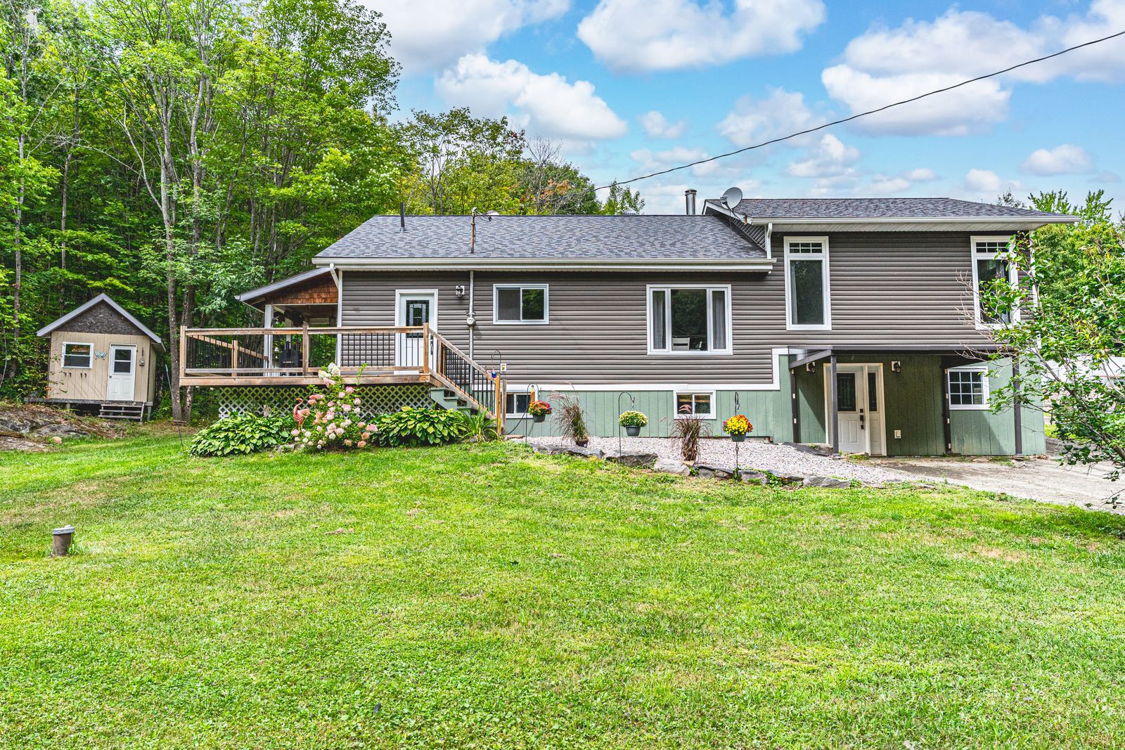 Fully remodelled muskoka retreat on 1. 76 private forested acres with soaring cathedral ceilings, a custom muskoka sunroom, & a 30 x 30 ft shop with double bay doors! Tucked away on 1. 76 acres of private, forested land, this extraordinary muskoka retreat combines natural beauty with stunning upgrades and year-round comfort. Located just down the road from mclean bay and sopher's landing marina, and only 10 minutes to downtown gravenhurst, you are surrounded by lakes, trails, golf, and natural splendour, yet close to every convenience. Designed for outdoor enjoyment, the home boasts a wrap-around deck, a luxurious newer hot tub with a pergola, a charming 3-season bunky for guests or creative use, and a newly built 30x30 ft shop with double bay doors, ideal for car enthusiasts, hobbyists, or seasonal storage. An oversized driveway provides ample space for vehicles, rvs, boats, and other recreational toys. Inside, the striking open-concept design flows seamlessly through the kitchen, dining and living areas beneath soaring cathedral ceilings, while oversized windows frame serene forest views and flood the home with natural light. The inviting living room features a cozy stone-detailed fireplace, rustic exposed beams, and sliding barn doors leading to a primary suite with a walk-in closet and a spa-like 3-piece ensuite with a deep soaker tub. A custom muskoka sunroom extends from the primary suite for quiet mornings or evening relaxation. Two additional bedrooms and a 4-piece bath complete the main level, while the walkout basement with a dry bar and electric fireplace provides versatile in-law suite potential or a stylish entertainment space. Completely remodelled with a thoughtfully designed addition, this home is finished with artisanal details, including a hand-milled white ash staircase. A true muskoka sanctuary, this property offers the privacy, craftsmanship, and lifestyle you've been dreaming of - ready to be enjoyed in every season!