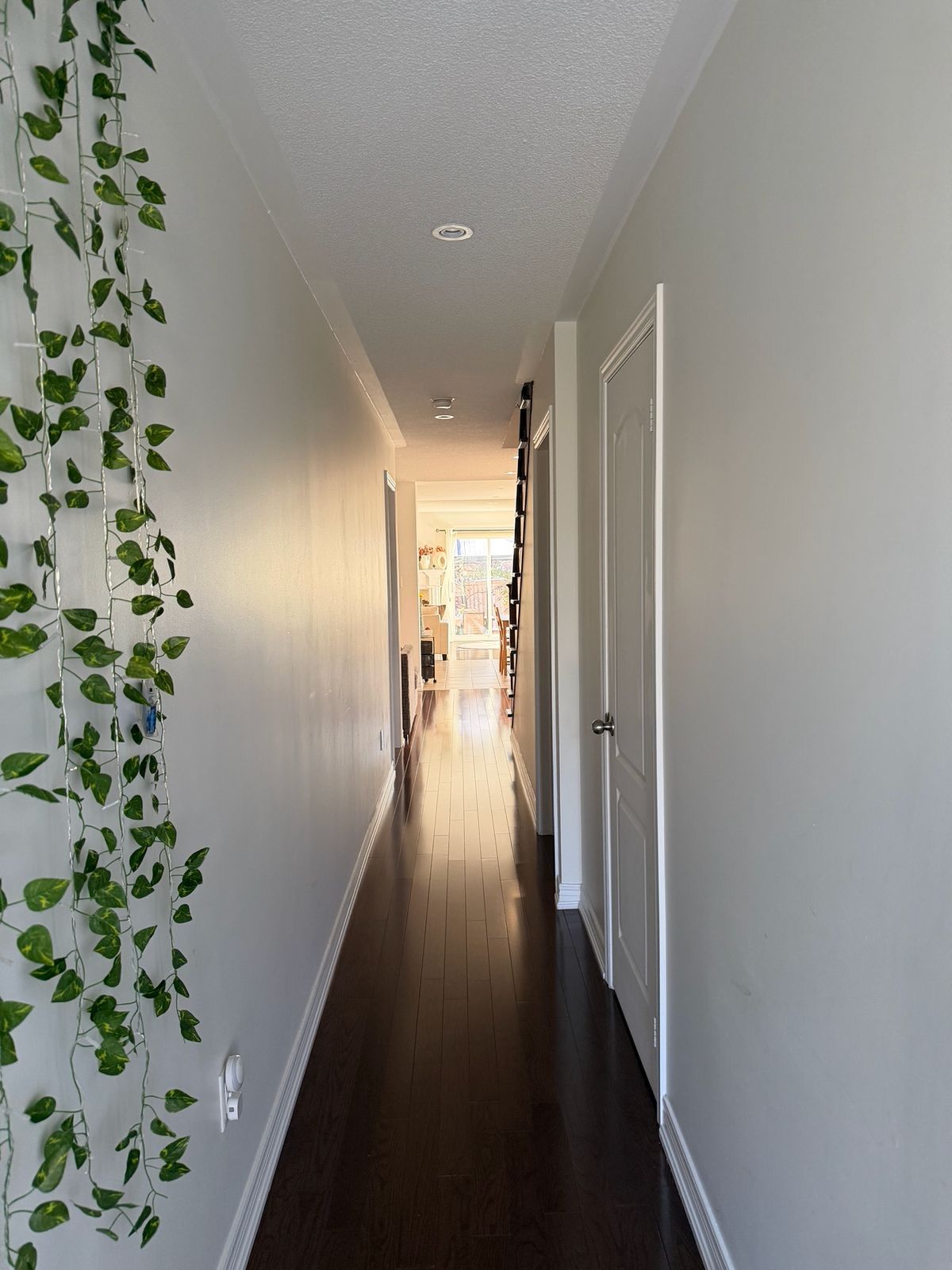 Rarely offered large semi-detached home built by great gulf, featuring nearly 1,900 sq ft plus a finished basement. Hardwood flooring on the main and second levels, with laminate in the basement. Functional layout with a formal dining room and an open-concept kitchen and family room with walk-out to deck. Upgraded kitchen with quartz countertops and pot lights throughout the main floor and basement. Finished basement includes multiple spacious areas, a 3-piece bath, storage room, and cold cellar. Primary bedroom features two walk-in closets and a 4-piece ensuite with a soaker tub and separate shower. Three additional good-sized bedrooms plus a walk-in linen closet complete the upper level.