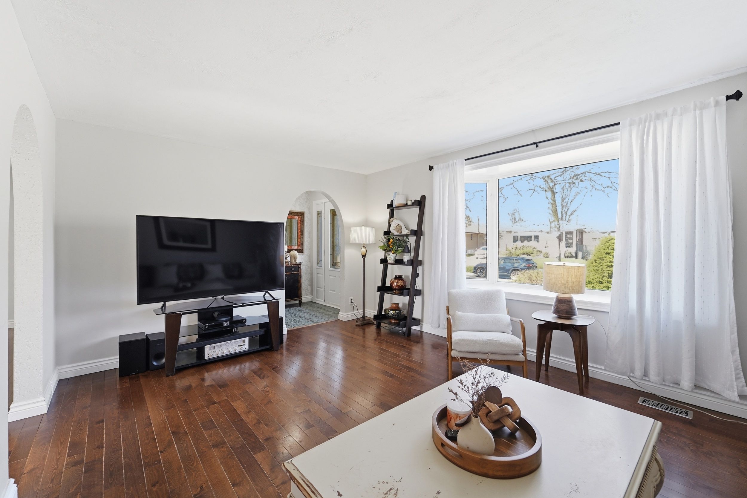 • Large living room with bow window provides plenty of natural light.