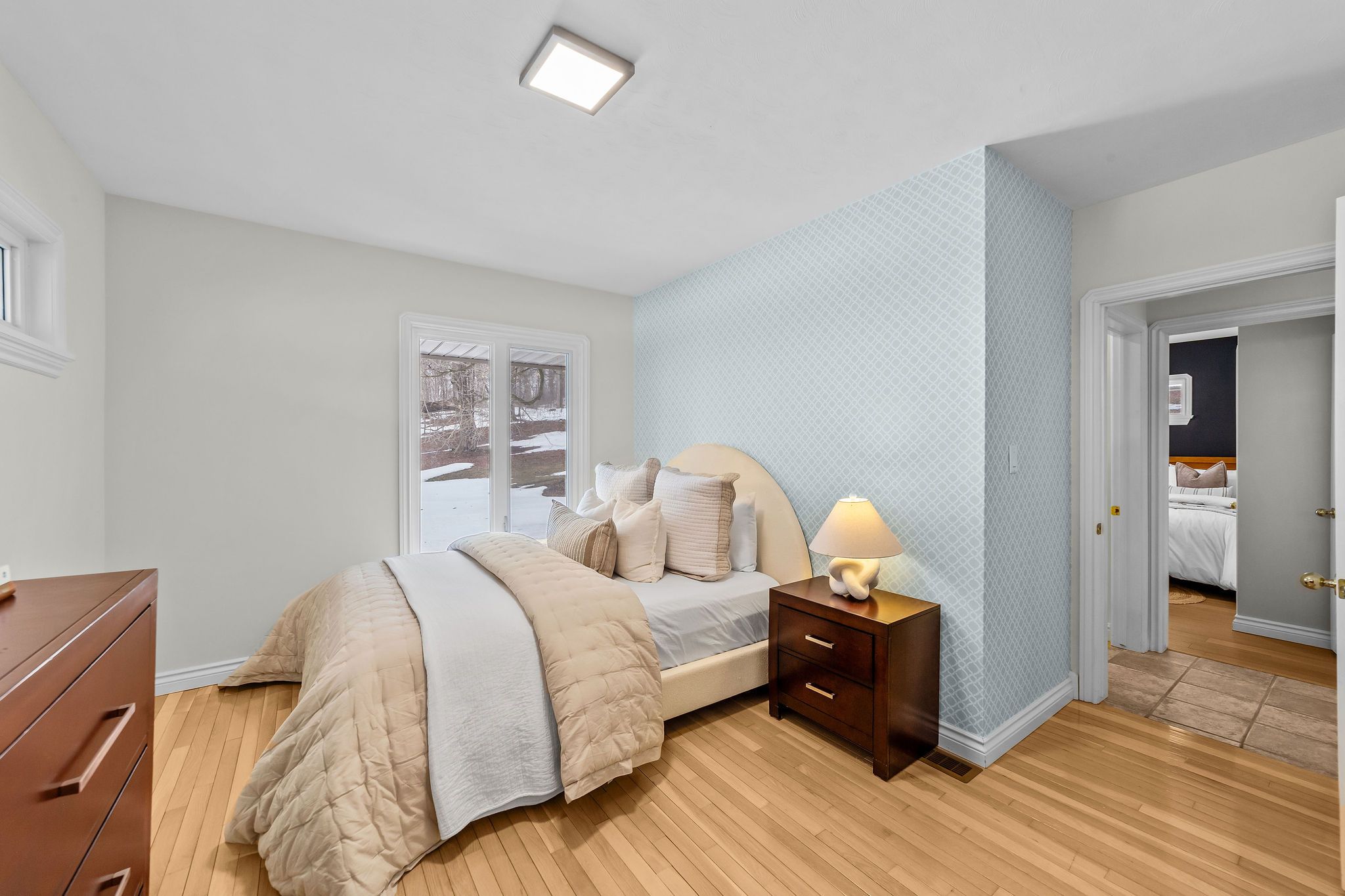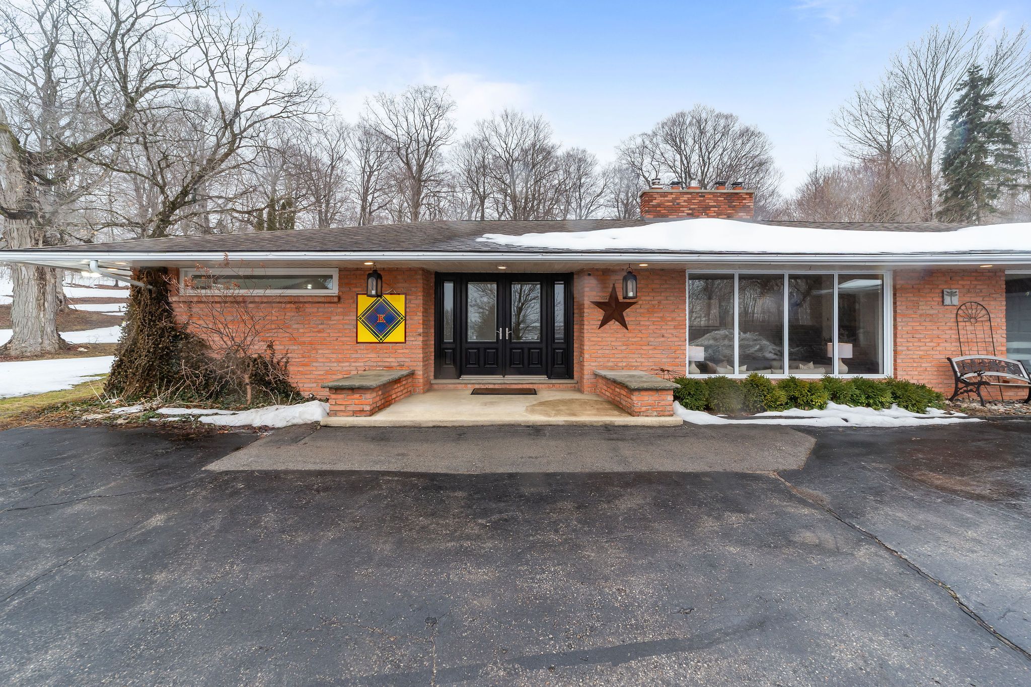 • Classic mid-century modern home with large windows for abundant natural light.