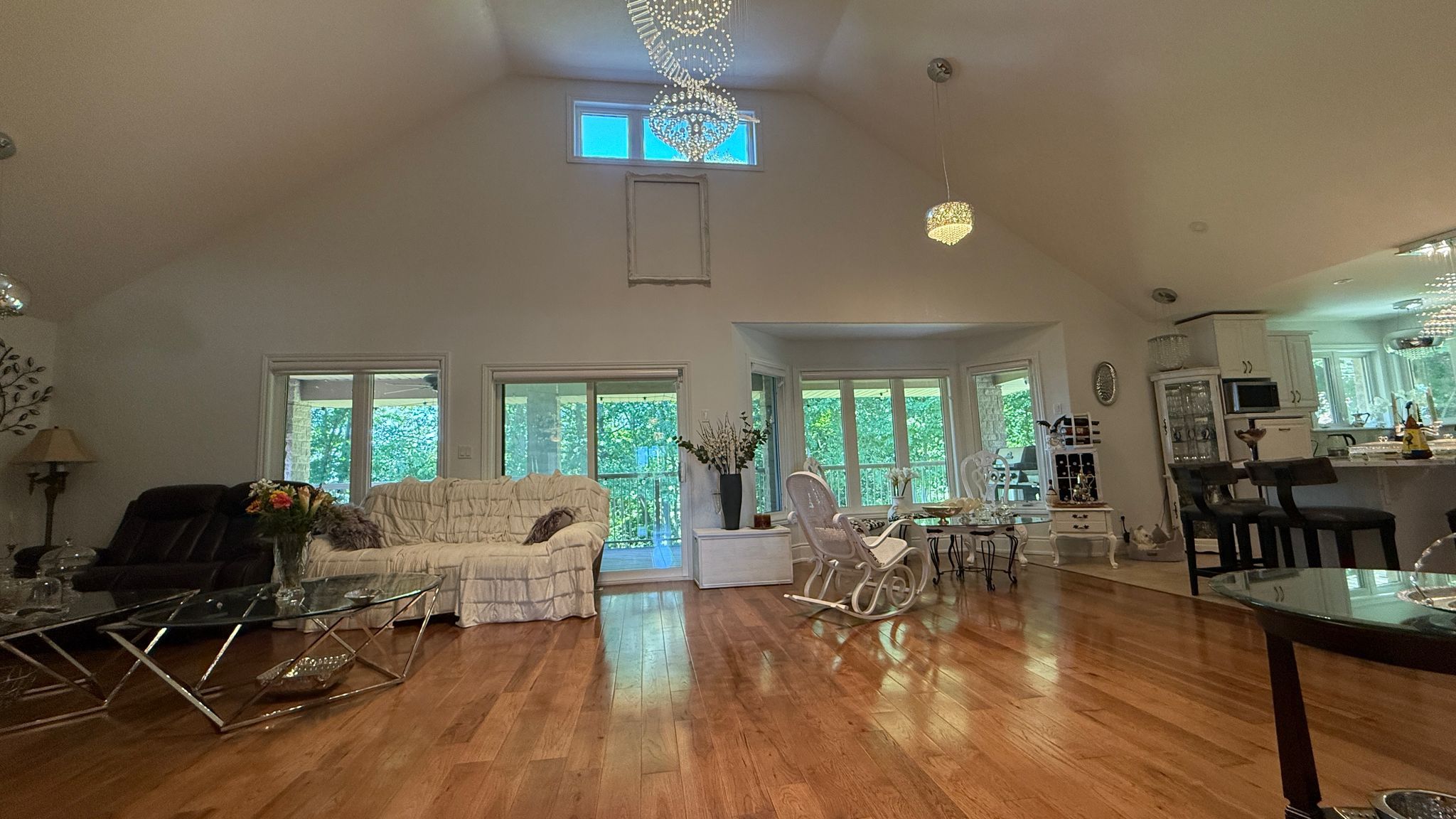 A custom masterpiece. This 4,440 sq ft james selkirk stone estate offers unparalleled luxury on a 2. 32-acre cul-de-sac lot-half professionally landscaped, half private hardwood forest. Moments from hwy 401 and kingston mills locks. The main level features soaring vaulted ceilings, rich hardwoods, a chef's kitchen with quartz/built-in appliances, and a primary retreat with a 5-pc ensuite and private access to a 60-ft covered deck. The lower level is a perfect multi-generational solution, featuring a walk-out in-law suite with 4 beds, 2 baths, and cozy in-floor radiant heating. For the collector: a 5-car garage plus driveway for 15+ vehicles. Unrivaled mechanicals: brand new indirect hot water tanks (march 2026), boiler/ac/metal roof (2023). Includes 10-zone irrigation, security, and intercom. This is the rare "forever home" that combines scale, privacy, and peak efficiency.