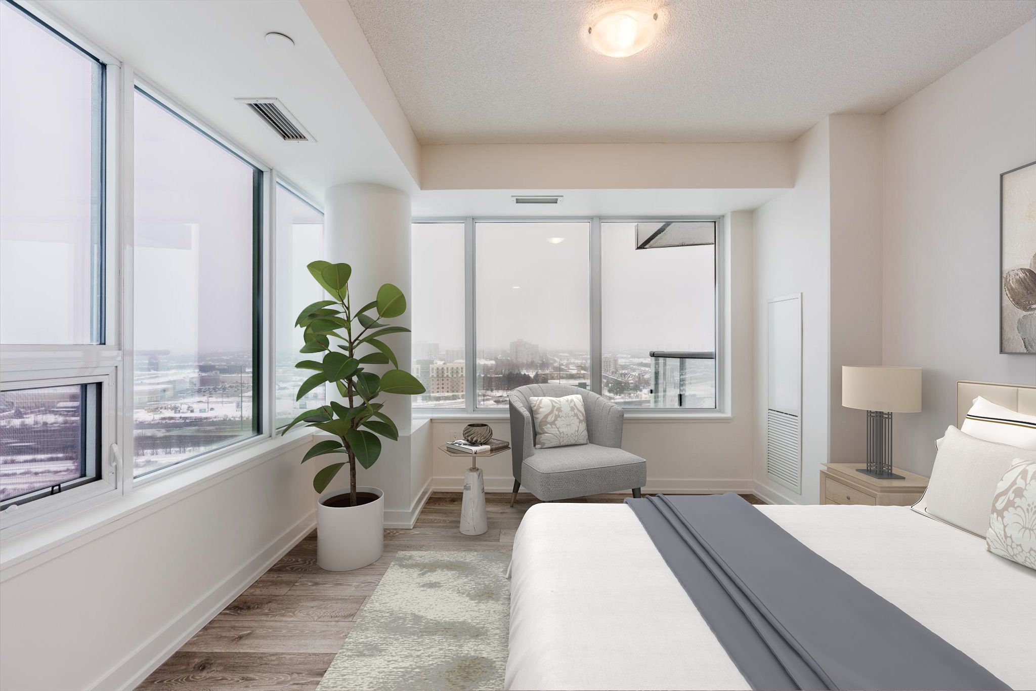• Freshly painted corner suite with clear views and abundant natural light.