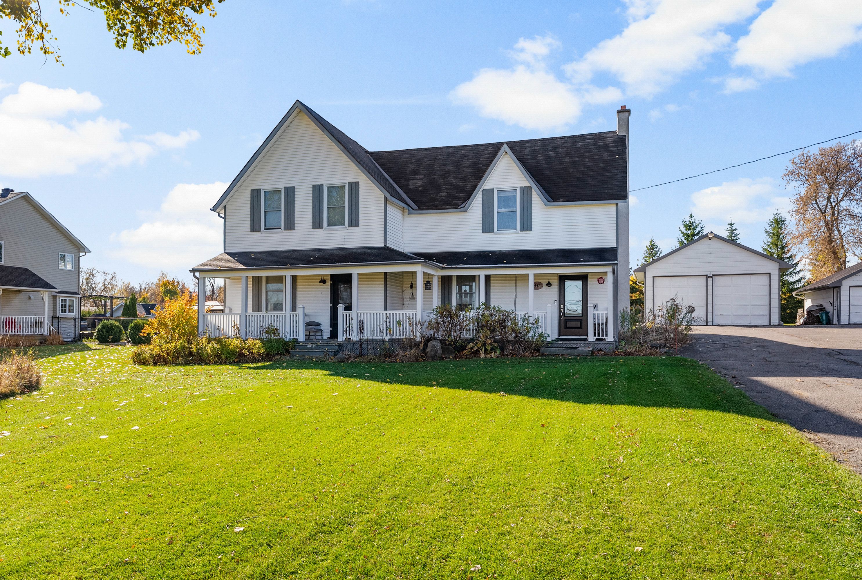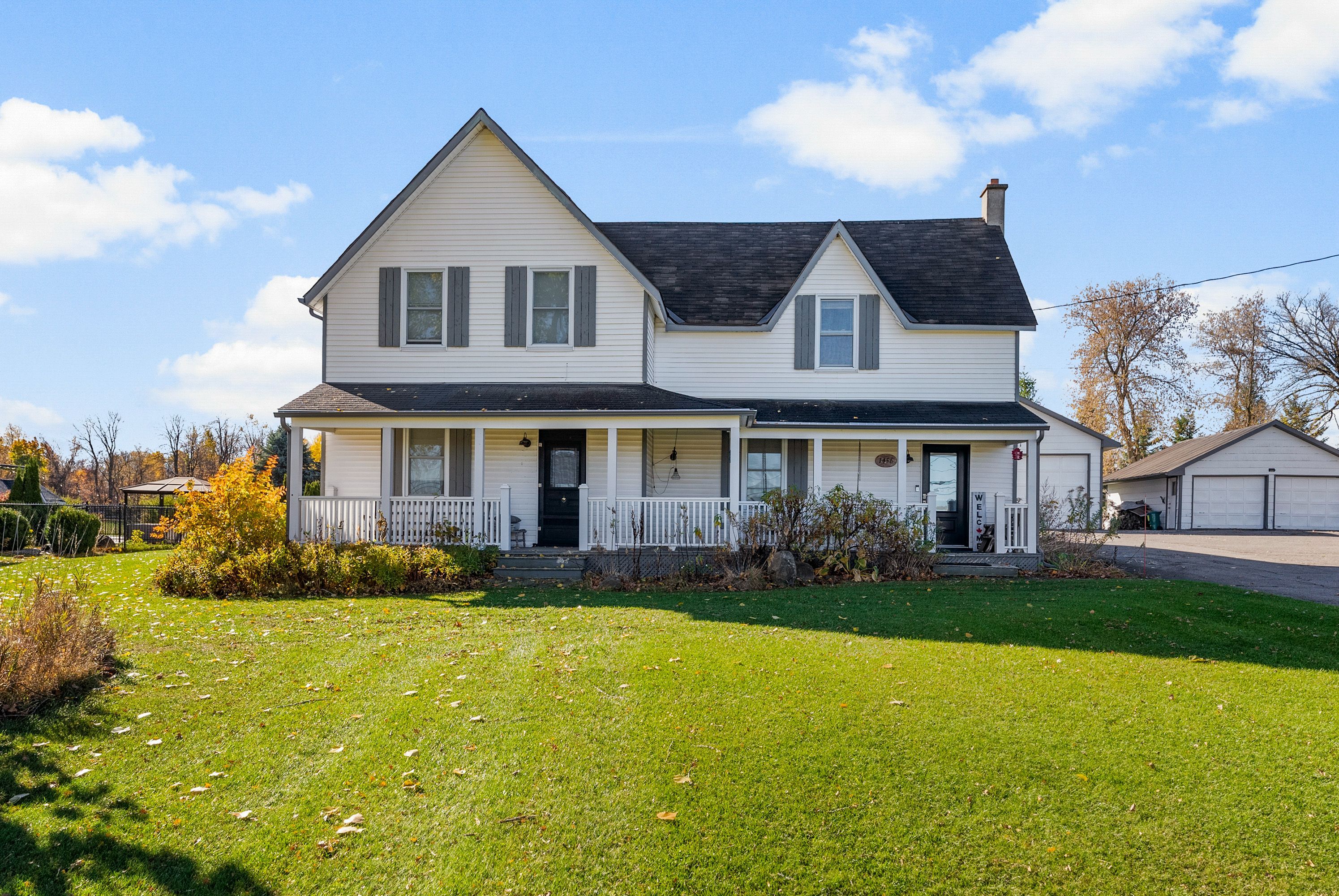Are you looking for space, close proximity to the city & the opportunity to run a business from your home? Look no further than this amazing opportunity situated on a large lot in the heart of greely just 25 minutes from ottawa, just shy of an acre with no rear neighbours, walking distance to local amenities & conveniently located right beside the community centre. With the mixed zoning the possibilities are endless. 2 detached double garages with power for storage & additional workspaces plus parking for plenty of vehicles, equipment etc. With a large circular driveway. This spacious 4 bedroom boasts over 2460 sq feet & has retained it' s character & country charm with modern thoughtfully planned renovations throughout. Sit on your porch swing on your covered verandah to enjoy your morning coffee or read & relax. Updates include the kitchen/eating area, rustic wood block island with a breakfast bar, stainless steel appliances, built in cabinetry & coffee nook. Gleaming hardwood flooring on the main floor. 2 full custom bathrooms, 1 -3 pc & 1 -5 pc. Walk in shower with rain forest shower head. Beautifully tiled done in white & grey. Open living/dining room is filled with natural light with an electric fireplace. A very versatile space currently used as a living space. There is room in your kitchen for a large dining room table. Original wood hand crafted staircase leads you to the second level to a large primary bedroom with a wall of closets, a generously sized 2nd bedroom & updated 5 piece bath with double sinks. There are 2 additional large bedrooms separated by stairs on the other side of the home & both bedrooms can be accessed from a second staircase from the kitchen. Original hardwood flooring preserved. Generlink installed in 2023 & furnace in 2022. Extension with separate entrance is the perfect space for your office allowing you to see clients without accessing your home. Don't miss on this rare opportunity!
