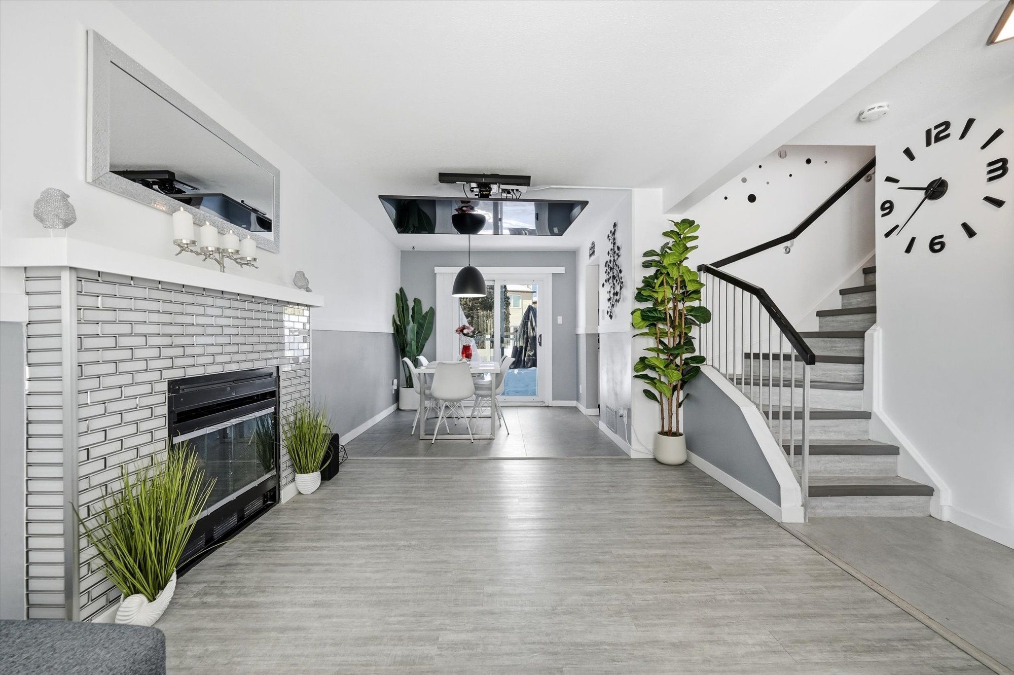 Welcome to 1456 prestone - a beautifully refreshed 3-bedroom, 2-bath home located in a well-established neighbourhood surrounded by mature trees and close to expansive parks and green space. Recently painted throughout and completely carpet-free, this home feels clean, modern, and truly move-in ready. The main level features a bright, stylish galley kitchen with a sleek contemporary finish, generous lower cabinetry, and thoughtful storage and organization features throughout. Brand-new stainless steel appliances complete the space, including a fridge with a convenient built-in water feature. The kitchen flows seamlessly into a warm and inviting living/dining area highlighted by a cozy fireplace - perfect for everyday comfort or entertaining. A convenient powder room completes the main floor. Upstairs, the large primary bedroom offers plenty of closet space and connects directly to the updated full bathroom, with two additional well-sized bedrooms rounding out the upper level. The fully finished basement provides excellent flexibility with two separate living spaces, currently set up as a family room and home office, along with laundry and ample storage. Step outside to enjoy a fully fenced backyard that feels private from rear neighbours, featuring a two-tier deck with railings on the upper level and a garden shed for added convenience - an ideal space for relaxing or hosting outdoors. Ideally located just minutes from schools, transit, shopping, and some of the area's best green spaces, this is a home where all the work has been done and all that's left is to move in and enjoy.