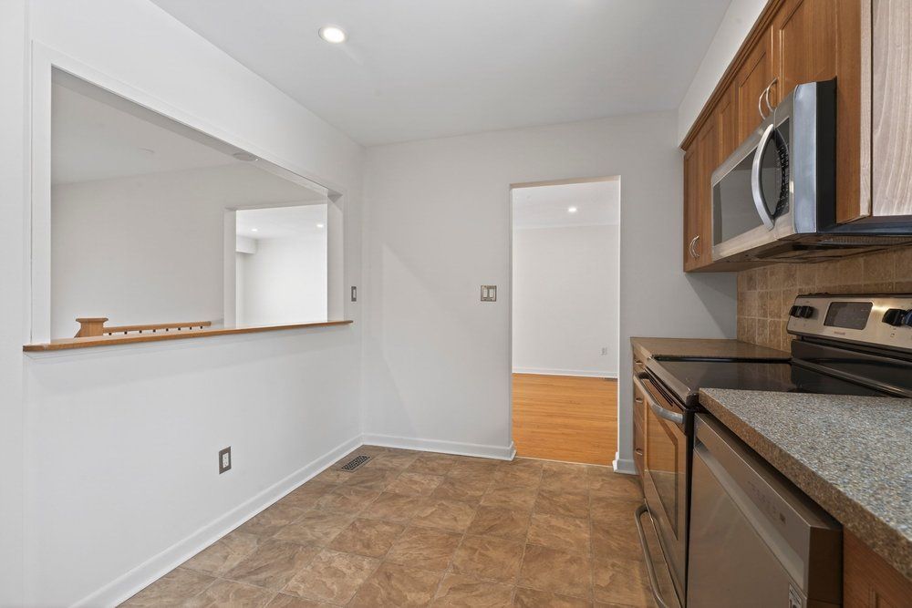 • Modern kitchen with stainless steel appliances and granite counter tops.