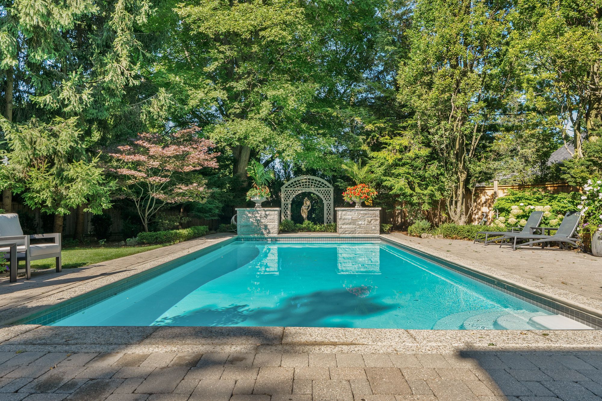 • Resort-style backyard with inground pool, spa, and outdoor entertaining areas.