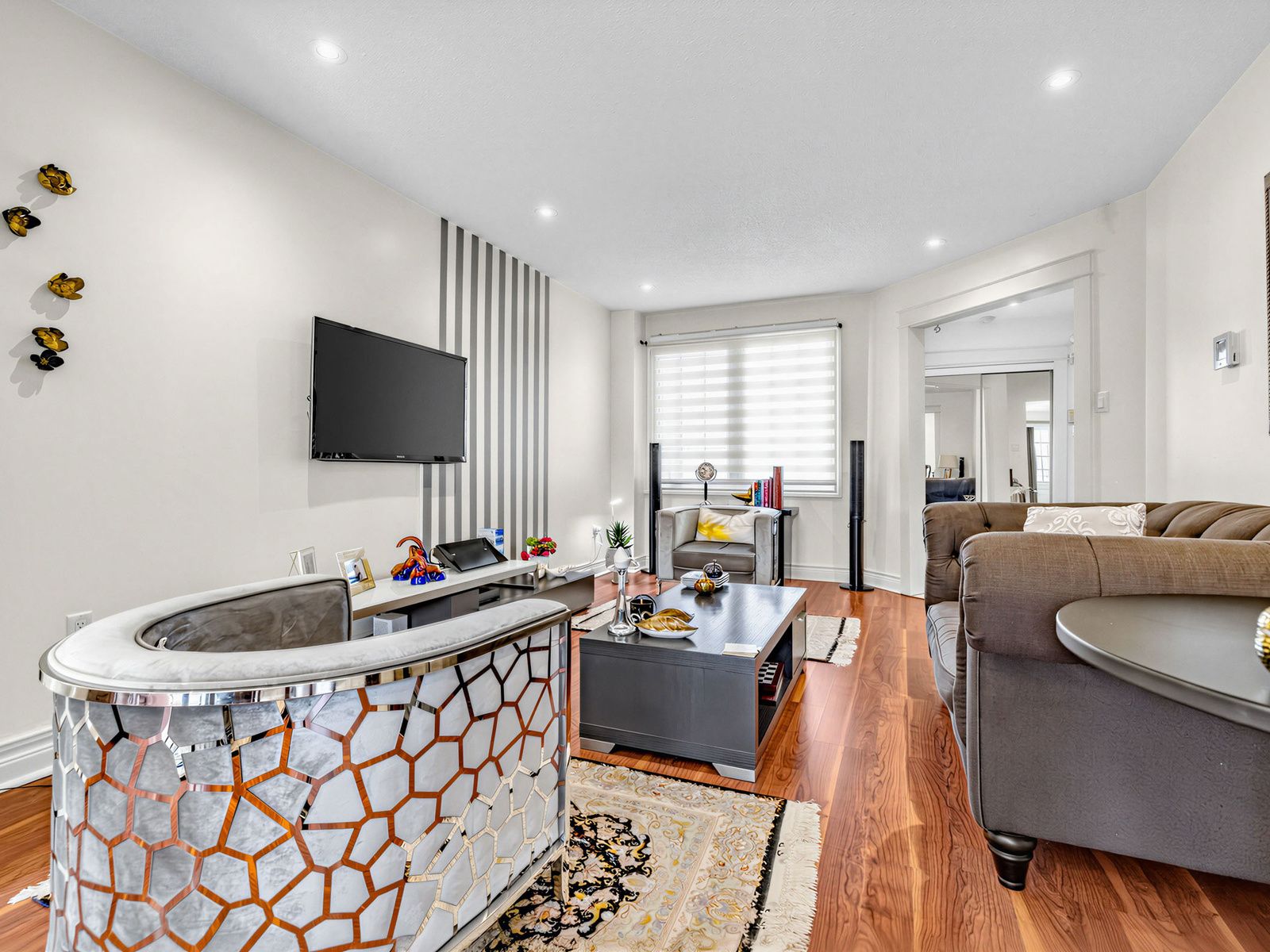 • Finished basement with separate entrance, kitchen, and potential in-law suite.