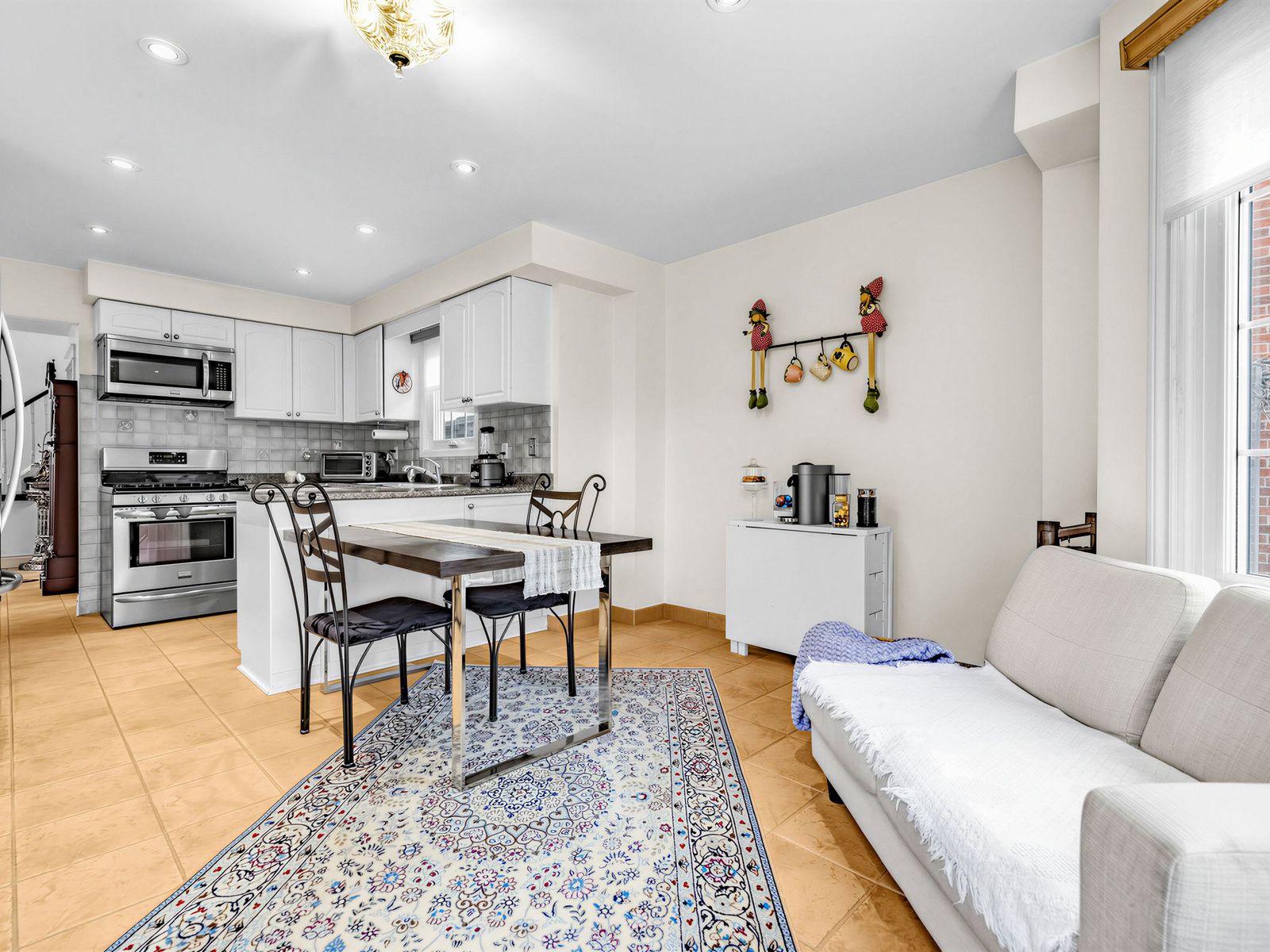 • Bright eat-in kitchen with stainless steel appliances and private backyard access.