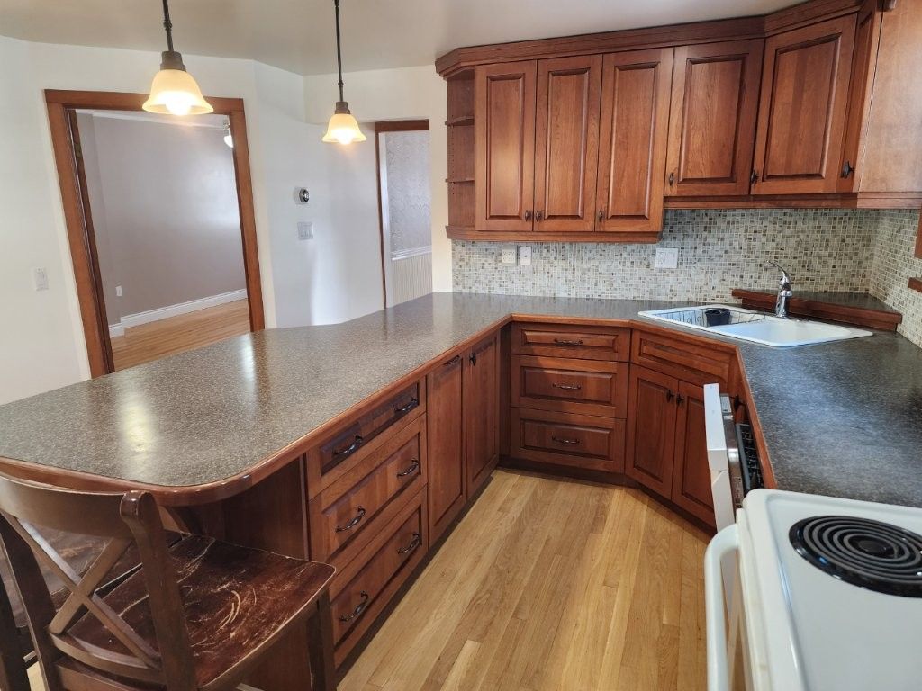 Centrally located, this exquisite 1. 5 story home has gone through extensive upgrades throughout. They include vinyl windows and doors, flooring and paint throughout, primary bathroom has a corner shower +2 person jet tub finished beautifully. Custom designed kitchen with an appliance package plus a full finish basement with in-law suite potential. Highlights include 3+2 bedrooms and 2. 5 baths, side door entrance to basement, carport plus parking for four vehicles. Heated by forced air gas with central air-conditioning. Shows beautifully!!