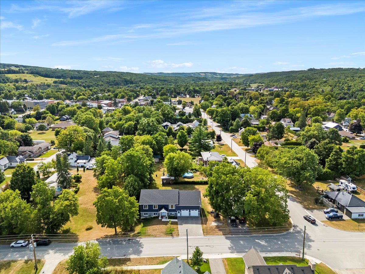 *open house sun feb 15 from 1pm - 3pm* a rare opportunity in creemore! It's not every day you find a custom-built six-bedroom, three-bathroom home with a fully legal apartment in the heart of creemore - a true rarity for the area. This raised bungalow, just over two years old, offers nearly 3,400 sq. Ft. Of finished living space, including more than 2,000 sq. Ft. On the main level. Designed for versatility, this home allows you to live upstairs while renting out the lower level, letting your tenants help pay the mortgage. The carpet-free main floor features an open-concept design with a bright kitchen boasting white cabinetry, granite counters, and plenty of storage. A 16' x 14' walkout deck (to be completed by the builder) with a gas bbq hookup creates the perfect space for entertaining. This level also offers three spacious bedrooms and two full bathrooms, including a primary suite with ensuite. The finished walkout lower level is equally impressive, featuring three bedrooms, a full bathroom, and a rough in for kitchen. With separate laundry hookups and a private garage entrance, this space is ideal for extended family, guests, or as an income-generating rental unit. Car enthusiasts and hobbyists will appreciate the oversized 24' x 36' garage with 14' ceilings, insulation, drywall, and inside access to both levels - perfect for a hoist, workshop, or additional storage. Additional highlights include 200-amp service, hot water on demand, upgraded insulation, pot lighting, and abundant natural light throughout. Located within walking distance to creemore's shops, restaurants, grocery store, library, and public school, and under five minutes to airport road for easy access to toronto and the gta.