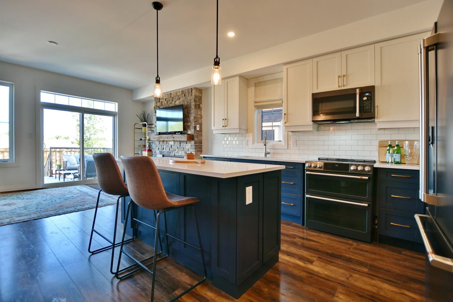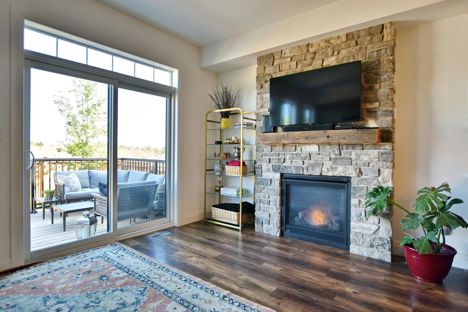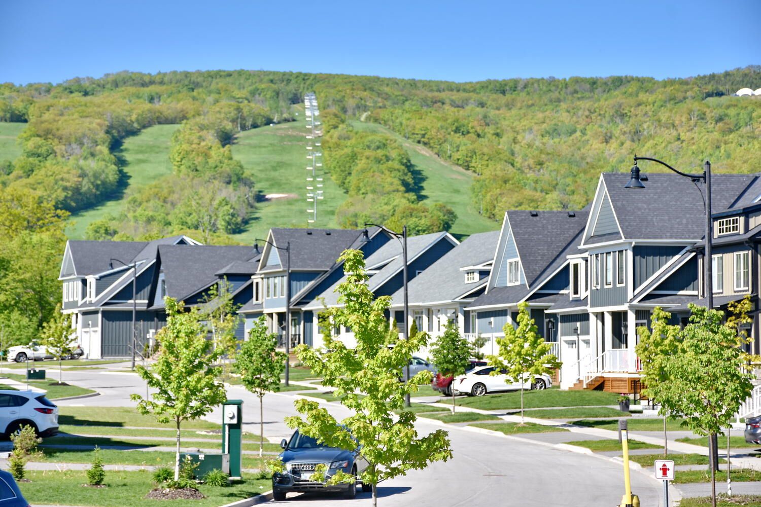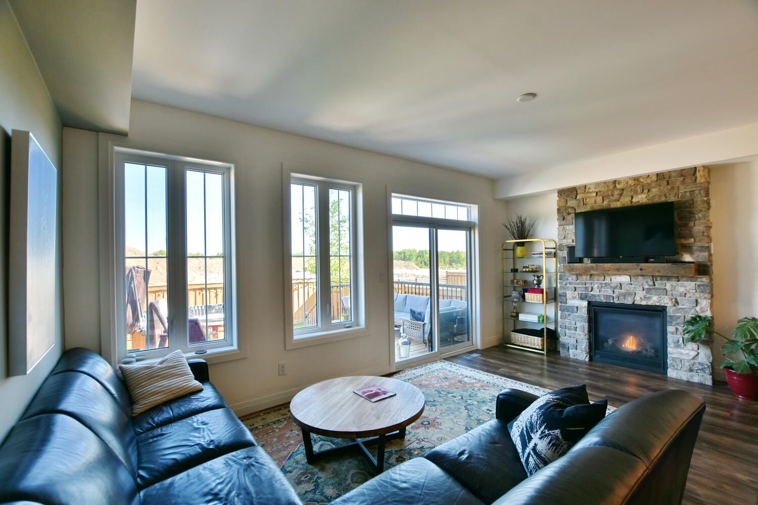 Welcome to 146 red pine located in the sought after community of windfall. Move in this ski season. This semi detached 3-bedroom 4 bath home. Main level open concept with discerning finishes including, upgraded kitchen & bath cabinets & hardware, quartz counter tops, throughout, design forward *cafe appliances, pot lights, added ambiance on those cool winter nights from the natural gas-fireplace-upgraded ceiling to floor stone work, and carpet free with wide plank engineered flooring for minimum maintenance top to bottom. An "open to below" builder upgrade, provides a bright and airy feeling when accessing the fully finished theatre style lower level this level has its own designer glass shower and 3-piece bath unwind in the primary suite featuring, custom window coverings walk in closet. The ensuite offers a stand-alone tub, spacious-designer glass shower, quartz counter tops & more. Bedroom level laundry room with upgraded cabinets & laundry tub and samsung washer and dryer. Spectacular mountain view sunsets & fabulous sunrises, from the room sized-two-tiered deck with existing electric hook up rough in for hot tub & yes, a gas-hook up for the barbecue in a fully fenced yard. Single car garage with loft storage and 2 additional driveway space. Steps from your front door is a nature trail connecting to neighbors such as, scandinavia spa or blue mountain resort (walking distance) & many great venues. On site amenities include "the shed" a four-season part club house, part recreation centre /gym/hot tubs/pools/ sauna/fireplaces/patio/exclusive for home owners!