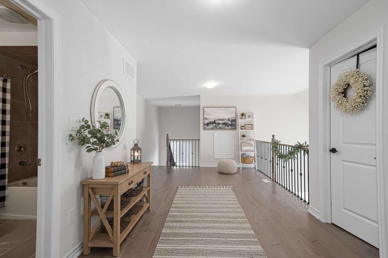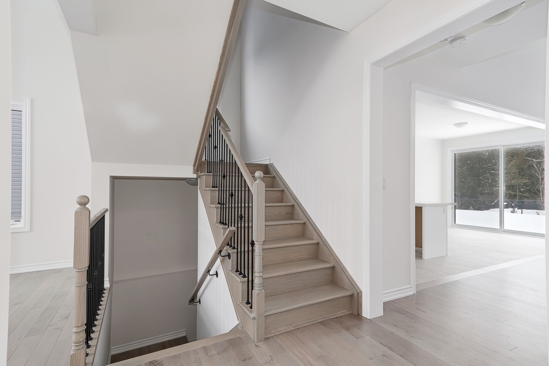 Backing unto forest, no carpet, bungaloft welcome to this stunning fernbrook homes-built "sepody" bungaloft model, ideally located in the growing community of wasaga beach. This beautiful home showcases hardwood flooring throughout the entire home, oversized windows that flood the home with natural light, and a modern, highly functional layout designed for today's family living. The main level features a bright kitchen with a large peninsula, and seamless flow into the family room and breakfast areas, and separate dining area -perfect for both everyday living and entertaining. This bungaloft features 2 bedrooms on the main floor, complete with a private primary ensuite complete with shower enclosure. Upstairs, the home offers two generously sized bedrooms, including a spacious loft area, perfect for a reading nook/computer area. Come see this amazing lot backing unto protected greenspace. Located in an area poised for exciting future development, including a planned new high school nearby, this neighbourhood continues to grow in value and convenience, addressing what was previously a limited secondary school offering. Enjoy the best of lifestyle and location: just 5 minutes to wasaga beach and approximately 30 minutes to blue mountain, with year-round recreation including skiing, hiking, beaches, and waterfront activities. A perfect blend of modern upgrades, thoughtful design, and an unbeatable location, this move-in-ready home is an exceptional opportunity for families, investors, or anyone seeking a relaxed lifestyle close to nature.