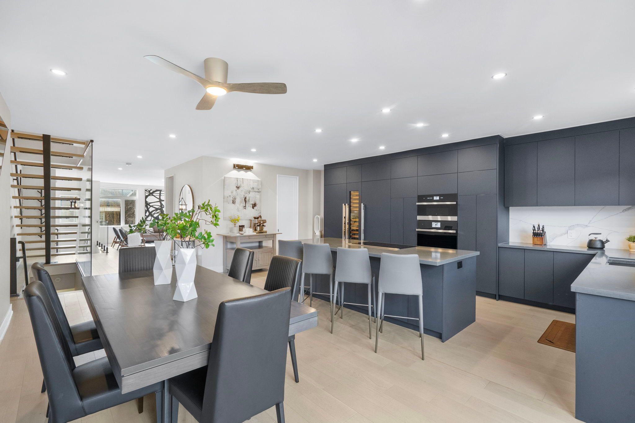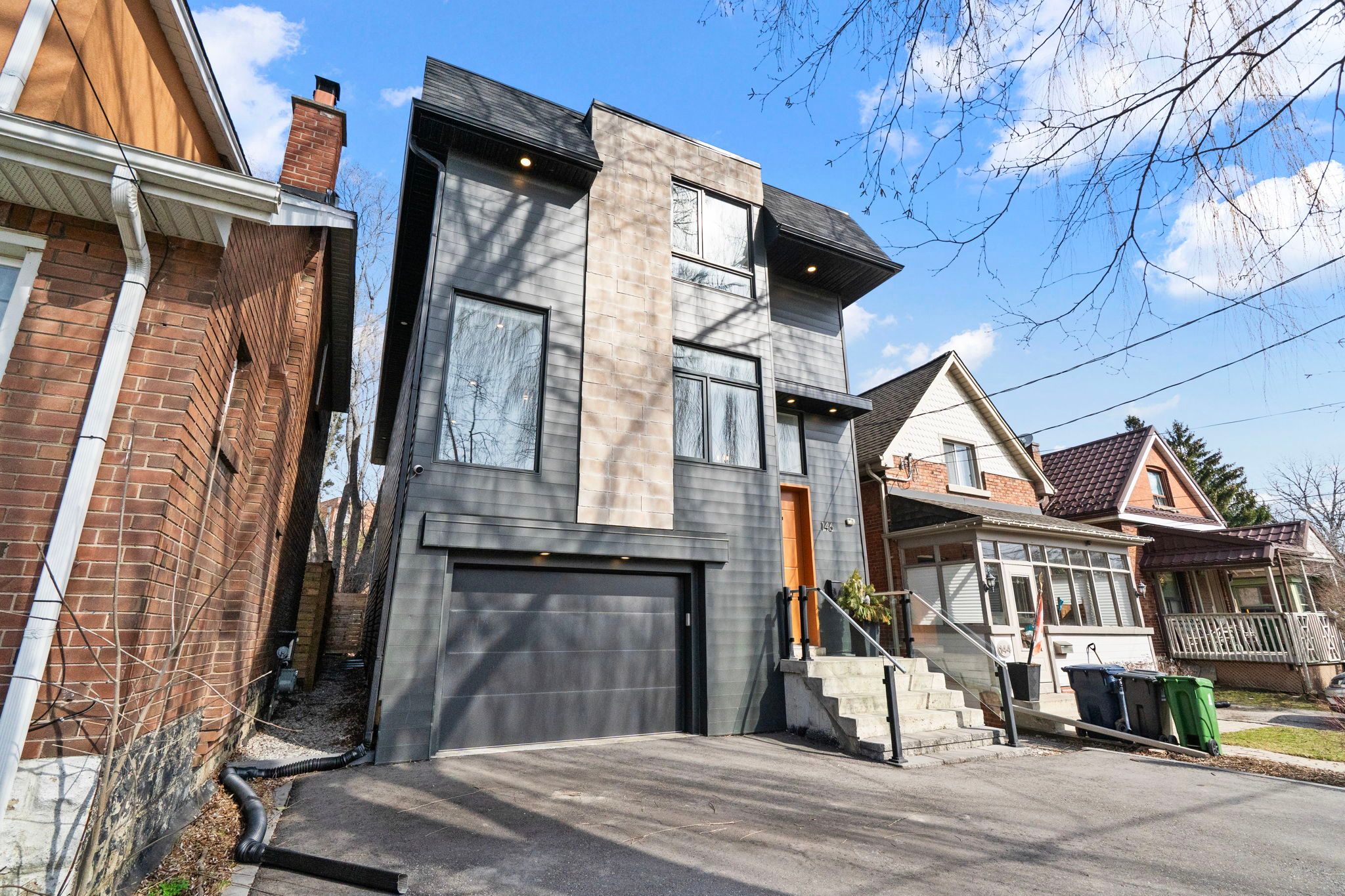 Custom-built prefab home in mimico-by-the-lake leaves the community in awe! This recently built, nearly 2,500 sq. Ft. Modern residence with an additional 779 sq. Ft. In the lower level has the entire neighbourhood talking. From curious passersby to locals like jean, the neighbourhood dog walker, who said, "it was impressive to watch it go up," and marian from the mimico moms group calling it "so modern and tasteful," the buzz is well deserved. Blending eco-conscious prefab construction with high-end luxury, this home delivers both style and substance. The main level offers seamless, single-level living, no steps, creating an expansive open-concept space. Highlights include an oversized powder room, walk-in pantry, and a striking matte blue custom kitchen featuring premium appliances, a downdraft stove, and a built-in sub-zero wine fridge. Walk out to an oversized deck overlooking a generous 31 x 128 ft. Lot rare space that allows for this scale of home. Upstairs, you'll find four bedrooms and two full baths. The primary suite offers a spa-like retreat with a freestanding tub, custom shower, double vanity, and a walkthrough closet. The additional bedrooms are all well-sized, and convenient second-floor laundry adds everyday ease. The lower level is a true standout, with soaring ceilings, large above-grade windows and murphy bed. Complete with a bedroom, full bath, and a functional mudroom nook with separate entrance to the spacious garage, it's no wonder neighbours are calling it "the best basement in mimico." finished with white oak engineered floors and custom glass floating stairs, this home is truly prefabulous. Note: fourth bedroom does not have a window.