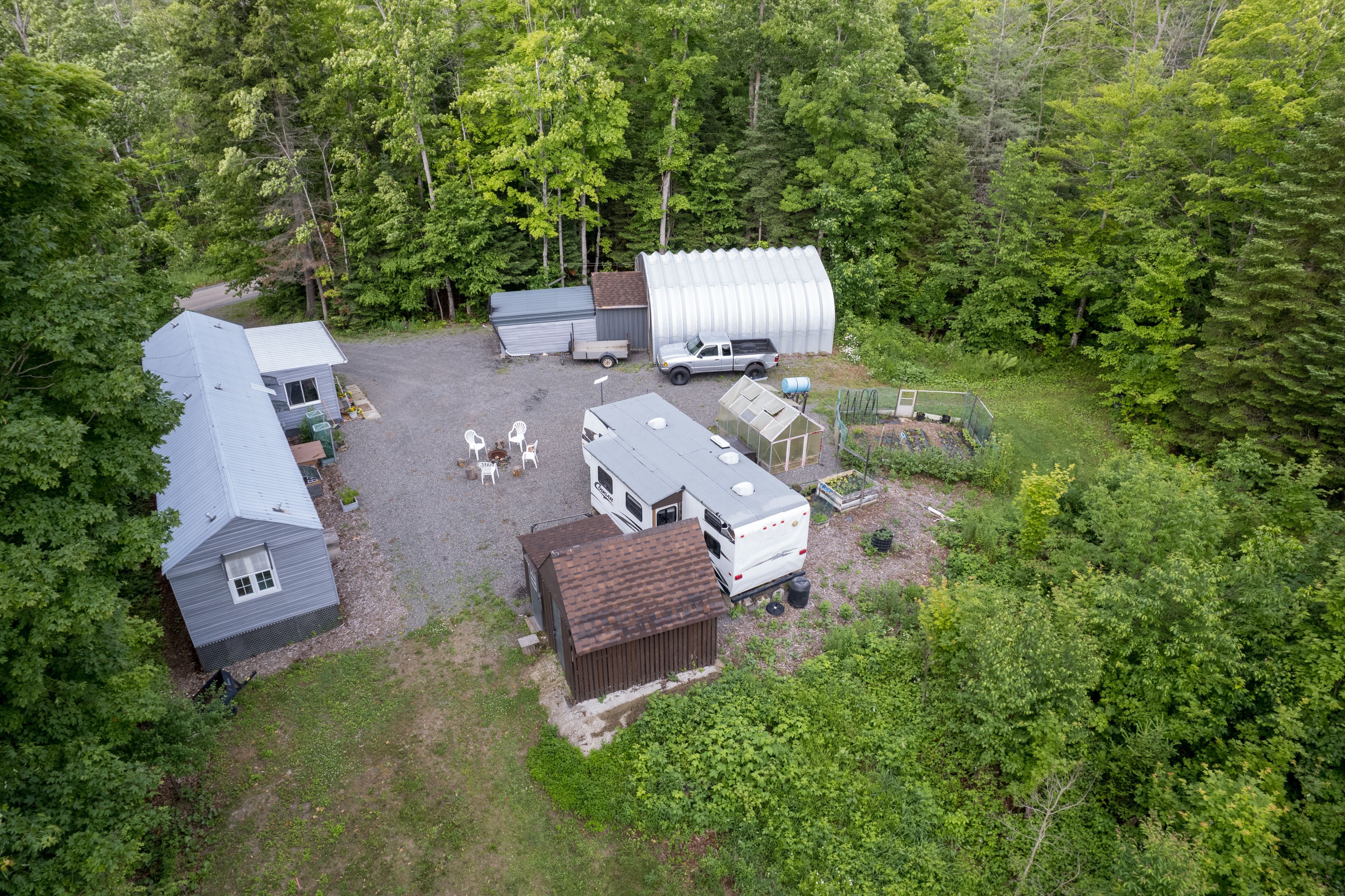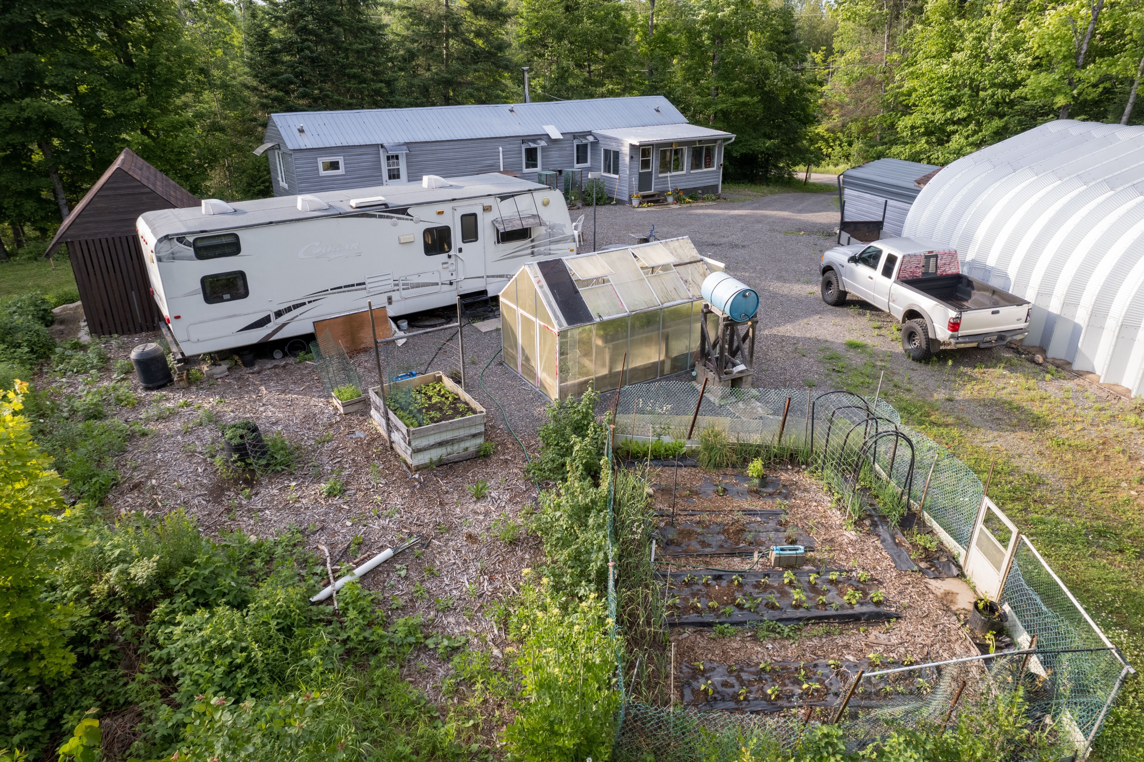• Self-sufficient infrastructure including greenhouse, workshop, and maple syrup equipment.