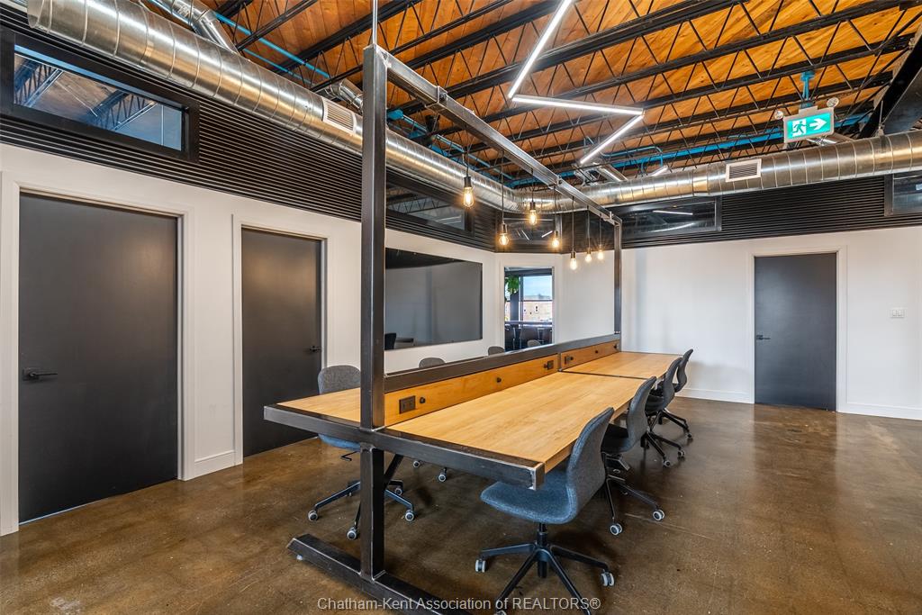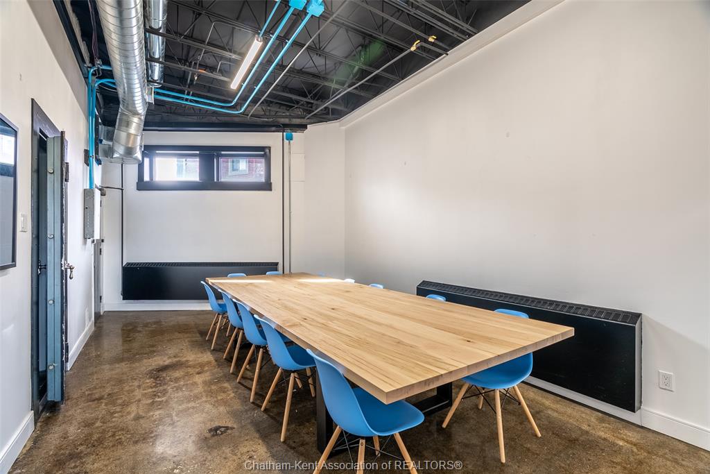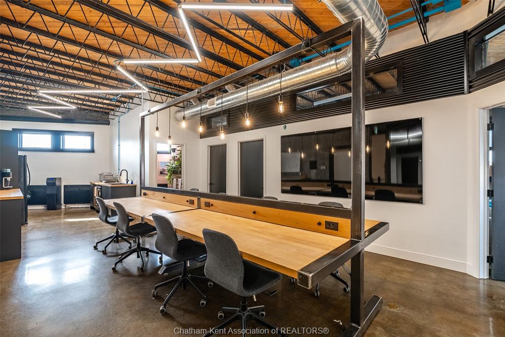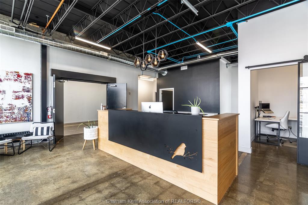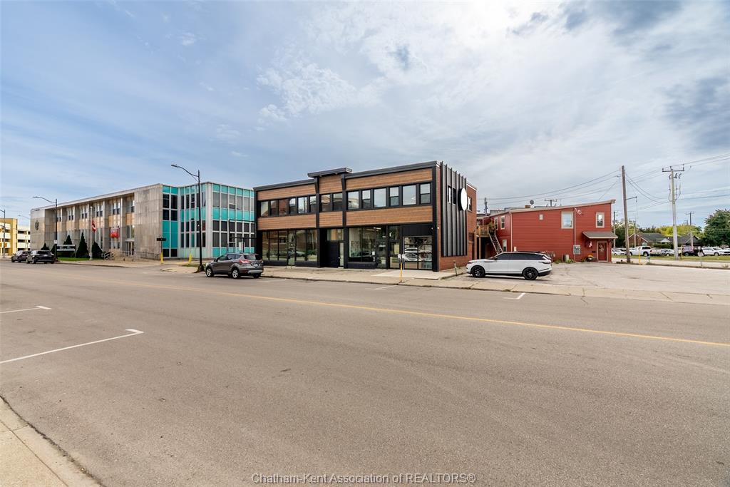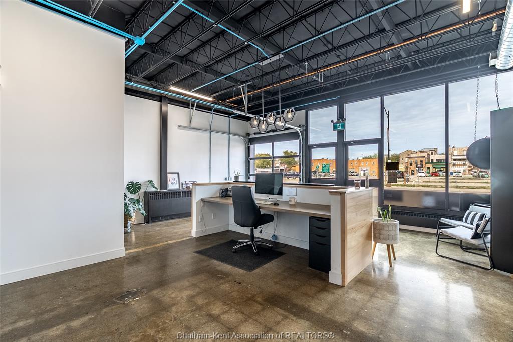 4599 sq ft of prime downtown office/retail space available, on a high-visibility corner location in downtown chatham with parking and shopping just steps away. Previously used as a real estate office, this modern, industrial-style space spans two bright, open floors with abundant natural light and a fully renovated interior (2020). Main floor approx. 1316 sq ft, includes an accessible washroom, board room space, private office and reception area. Second floor is approx. 3283 sq ft, with a combination of open spaces and private offices (9 offices), as well as 2 bathrooms. Ideal for professional offices, boutique retail, or mixed-use concepts. The landlord may consider subdividing upper and lower levels to suit your business needs. 5-year minimum lease. Offered at $15/sq ft, triple net (taxes, utilities, insurance, hvac maintenance) parking available in side municipal lot, metered or permitted spots available.