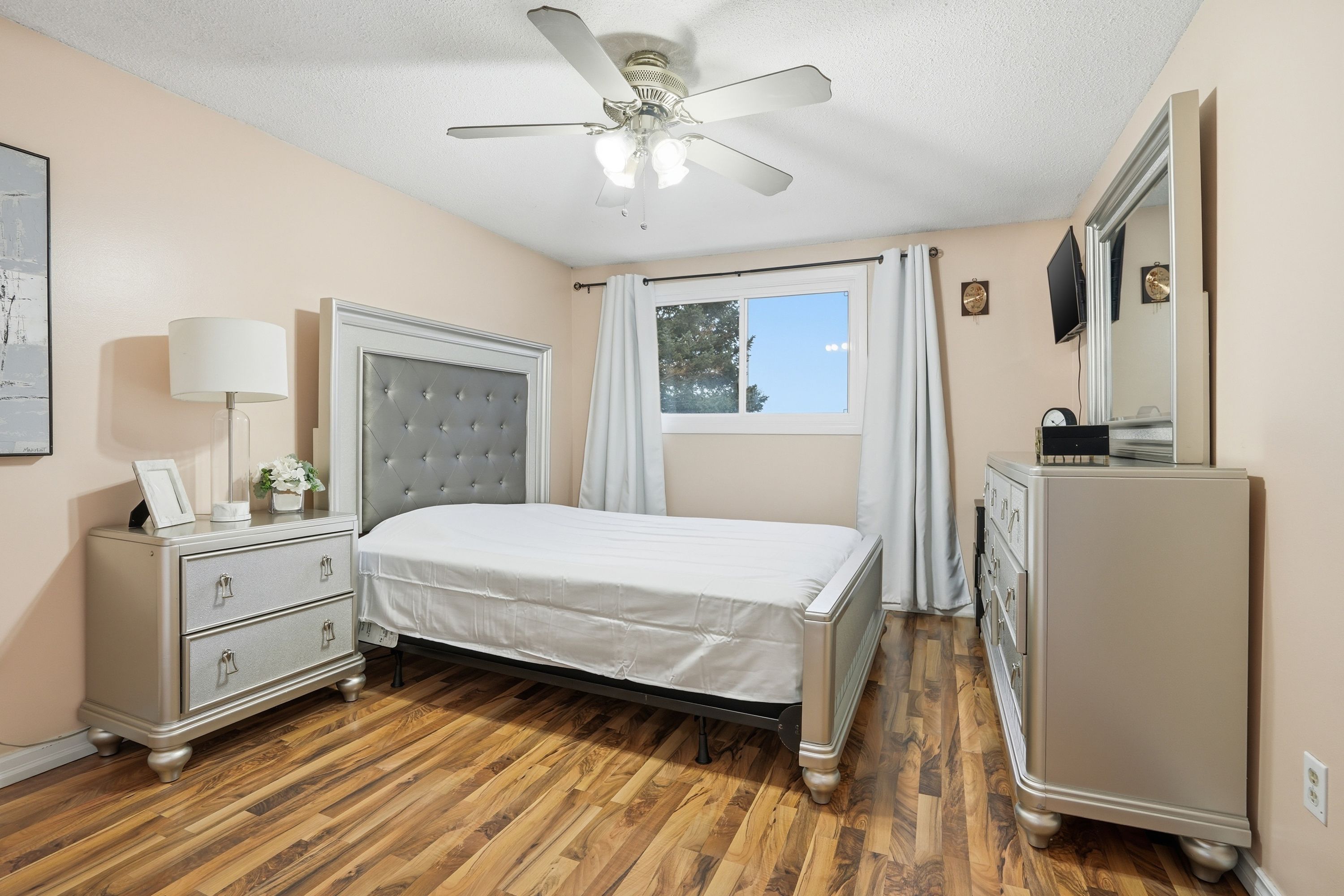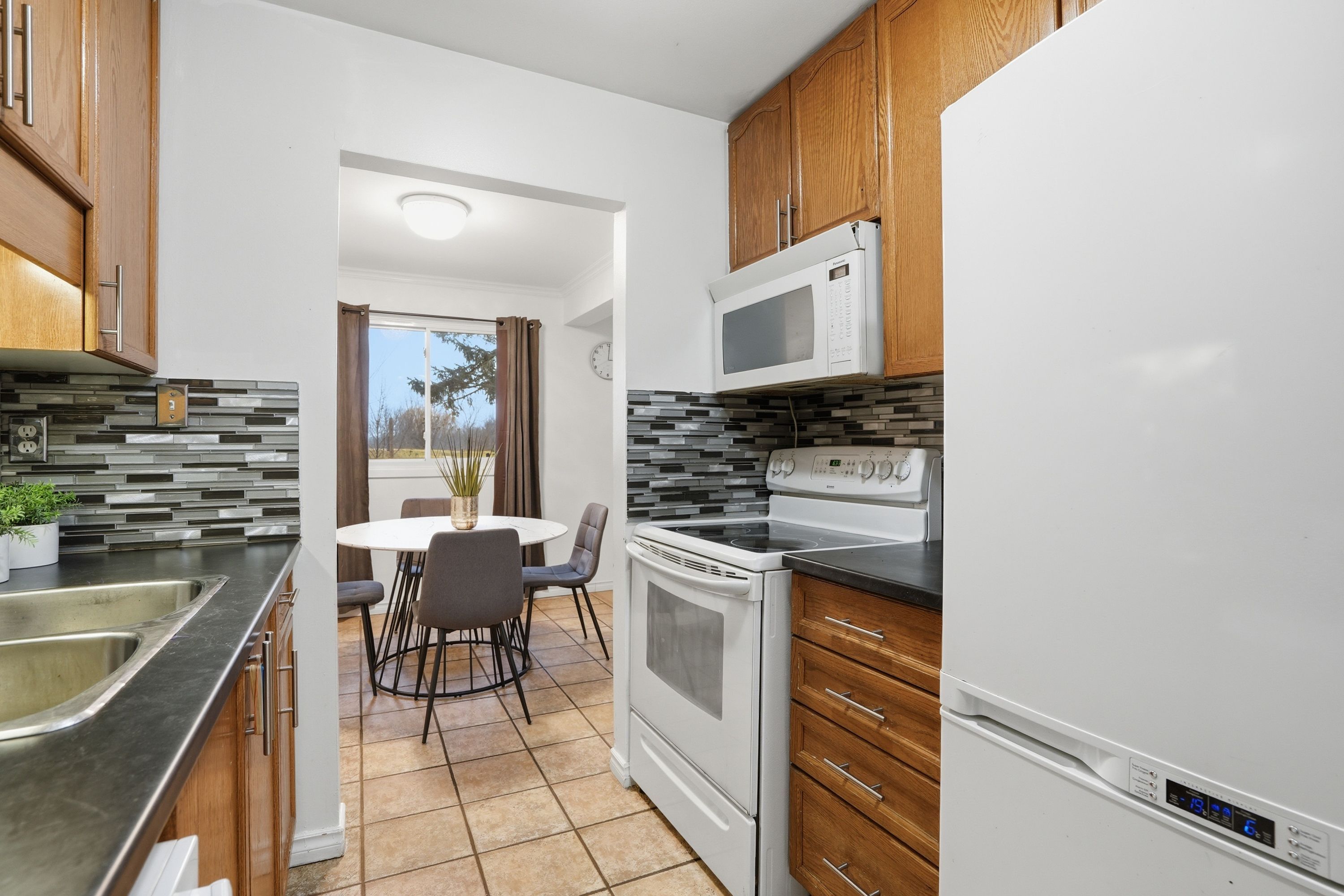Welcome to this beautifully finished end-unit townhouse in a well-maintained complex in the desirable west mountain neighbourhood. This 2-storey home offers 3+1 bedrooms, 3 baths & finished basement. The bright main level features a spacious living room w/ walk-out to an exclusive yard with no rear neighbours, dining area, updated kitchen w/ two fridges & convenient 2pc bath. Easy-care ceramic & laminate flooring throughout. Upstairs offers three spacious bedrooms & updated 4pc bath. The finished basement provides versatile space for a 4th bedroom or rec room, laundry, storage & 3pc bath, ideal for in-law or multi-generational living. Backyard overlooks open field. Single driveway & attached garage w/ inside entry. Recent updates include kitchen, baths, flooring, stairs, washer, dryer, fridge, fresh paint & upgraded electrical (fuses to breakers). Well-managed condo with fees including internet and water. Close to shopping, schools, parks, transit, and quick highway access.