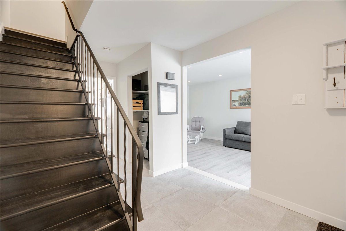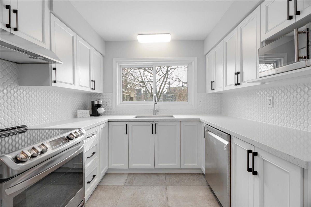 Welcome to this well-maintained two-storey condo townhouse, offering space, functionality, and a setting that works beautifully for family life. You're welcomed by a front entry with a convenient main-floor powder room and hallway closet storage. The living room is bright and inviting, with large windows that bring in plenty of natural light. From the dining area, patio doors lead out to a private deck and backyard surrounded by mature trees and backing onto green space - a peaceful spot to unwind or let kids play. The updated kitchen features quartz countertops, stainless steel appliances, an elegant backsplash, and plenty of cabinet and counter space, making everyday meals and entertaining easy. Upstairs, you'll find three bedrooms, including a primary bedroom with its own private ensuite powder room. Two additional bedrooms are supported by a full bathroom, offering flexibility for family, guests, or a home office setup. The finished basement adds even more living space - ideal for a rec room, play area, or home gym - along with another full bathroom, bringing the total to 2 full baths and 2 half baths. An attached garage, private driveway parking, and a quiet west-end location close to parks, shopping, transit, and schools - including western university and university hospital - complete this move-in-ready home. Multiple bus routes are just a short walk away, making commuting to western university or downtown london simple and stress-free.