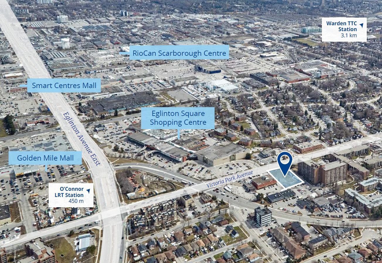 An opportunity defined by the right scale, the right location and the right timing. 1460 victoria park avenue (the "property") presents and exceptional investment opportunity in one of toronto's most rapidly growing areas, the wexford-maryvale neighbourhood. Approved for an 11-storey, mixed-use development, the property offers a well-scaled project that minimized absorption risk and ensures a faster lease-up or sale process compared to larger developments. The property's prime location is a major factor in its appeal, with excellent walkability to key amenities such as eglinton square shopping centre and the golden mile shopping centre, currently undergoing a transformative multi-billion dollar redevelopment. The upcoming eglinton crosstown lrt, with a station located less than 300-meters away, enhances the property's desirability and offers connectivity throughout toronto. Market timing is advantageous, allowing for potential cost savings in construction, which can translate into more profitable outcomes. Zoned for an 11-storey mixed use building, the property can accommodate 113 residential units and approximately 108,650 sf of total gfa, including 1,055 sf of ground-floor retail space. With approvals in place, this is a rare chance for developers to secure a high-potential asset in a thriving urban corridor. As well, due to the reconfiguration of o'connor drive, a 35-storey mixed-use tower scheme with a gfa of 289,355 sf is now feasible. This is a unique opportunity to capitalize on a well-positioned, scalable porject in one of toronto's most dynamic neighbourhoods.