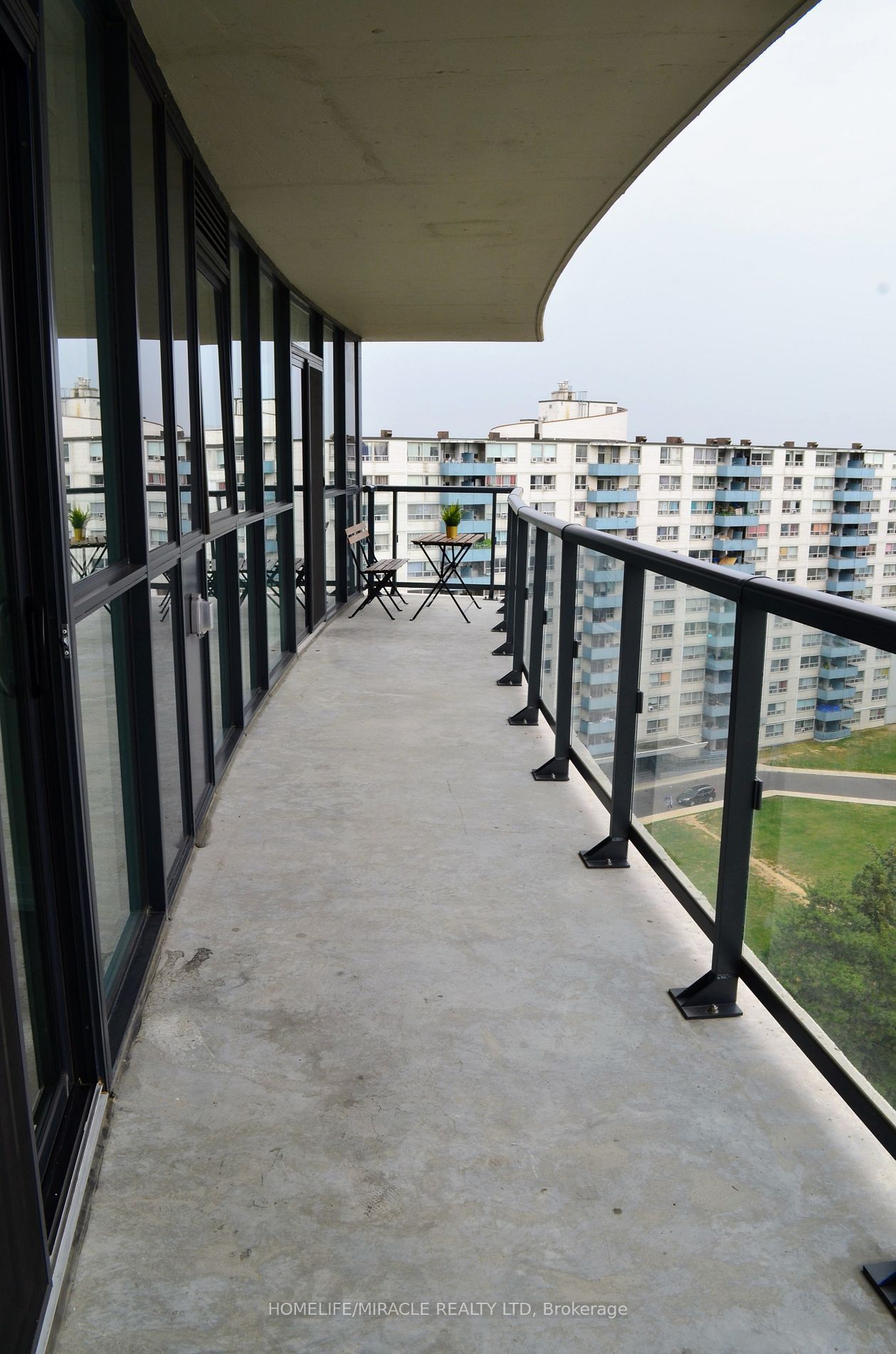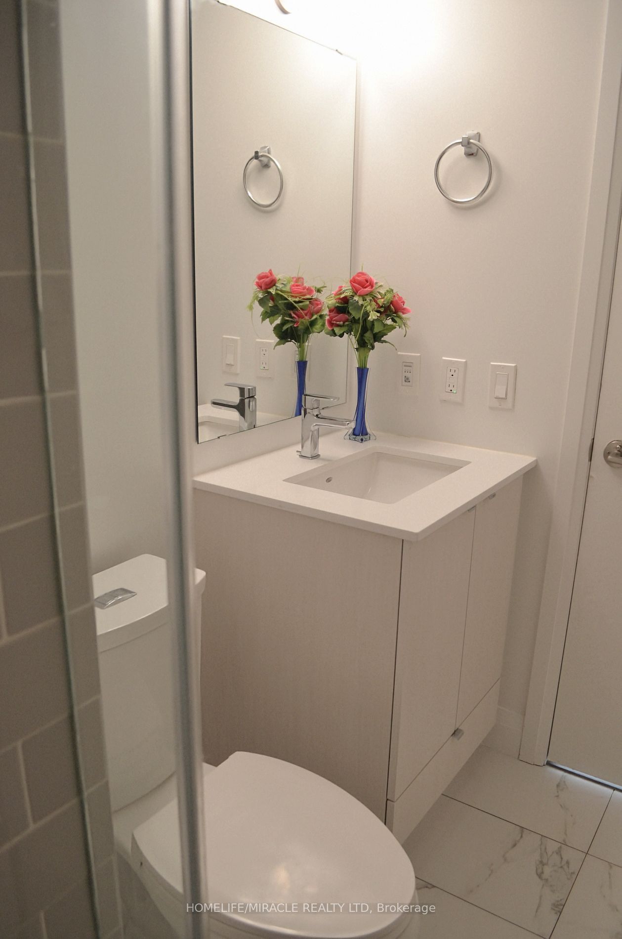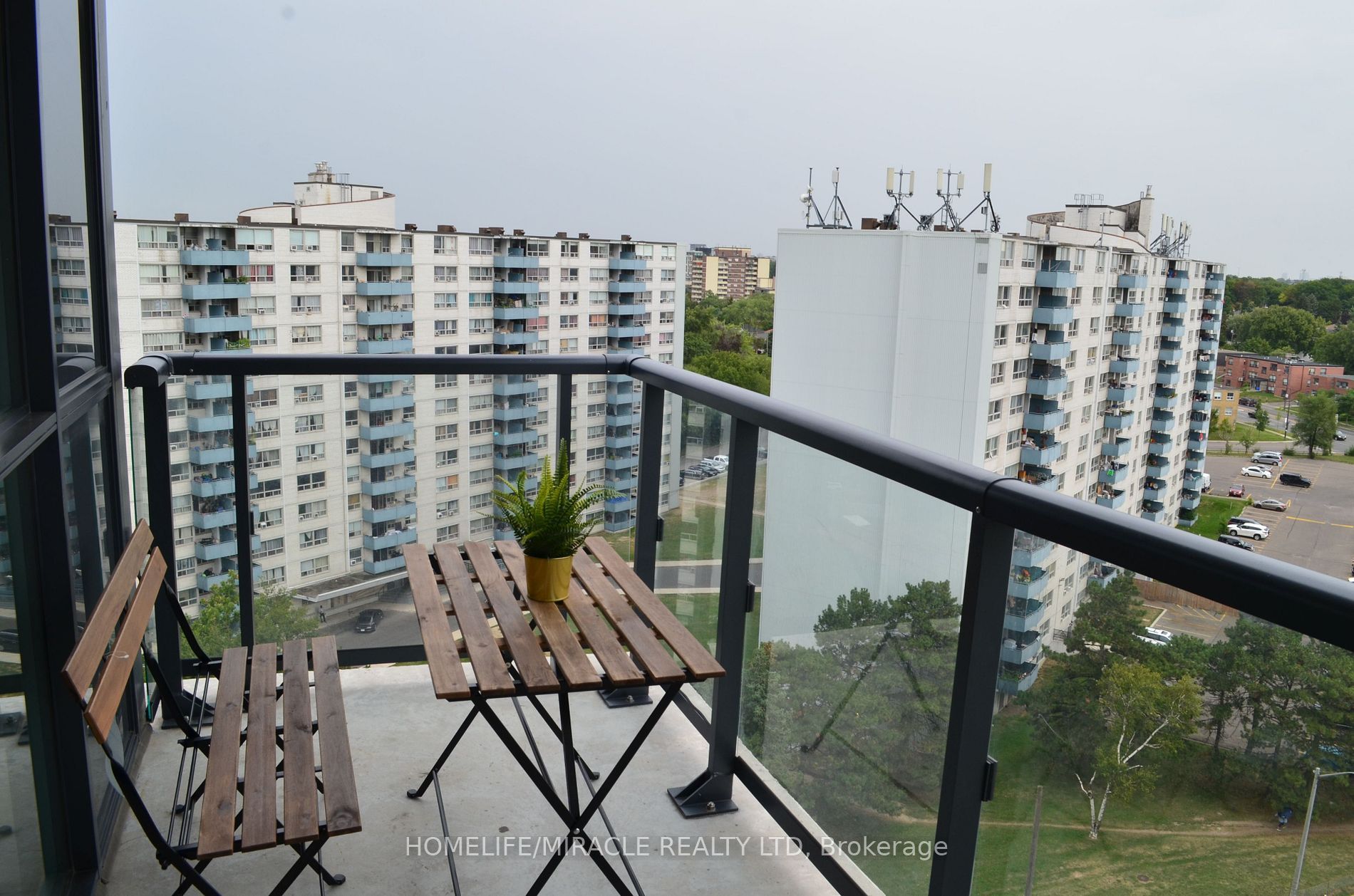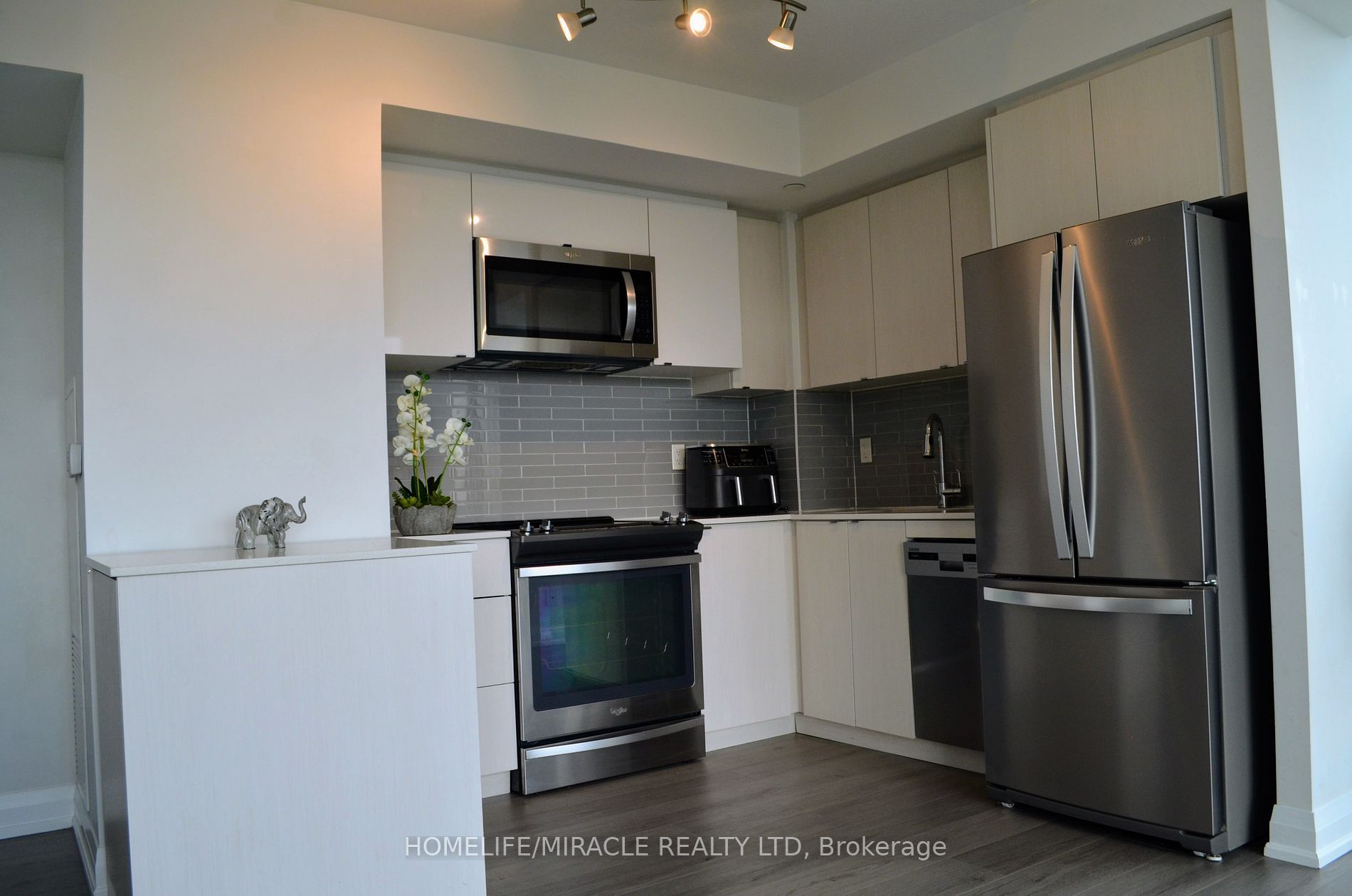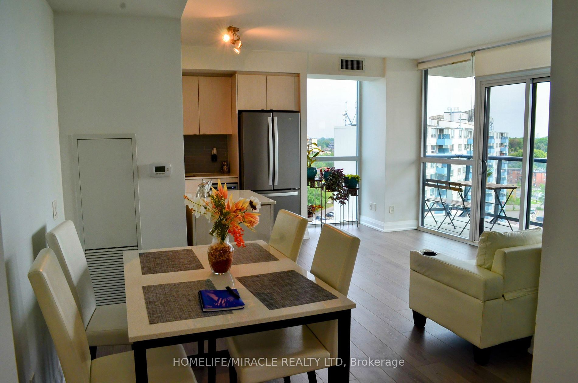Welcome to 7 on the park. This exceptional sun-filled corner suite offers a refined blend of modern design and everyday functionality. Featuring an open-concept layout with expansive eastern exposure, the space is filled with natural light throughout the day. The current owners have invested over $7,000 in quality upgrades, enhancing both style and comfort. A standout feature is the impressive 229 sq. Ft. Private balcony, accessible from both the living area and the primary bedroom. The large balcony is a great space perfect for morning coffee or evening relaxation and even bbqs (electric)the contemporary kitchen is thoughtfully appointed with stainless steel appliances, quartz countertops, sleek cabinetry, and generous workspace, making it well-suited for both daily living and hosting. The spacious primary bedroom includes a private ensuite bath and ample closet space, while a second full bathroom provides added convenience. Additional features include in-suite laundry, underground parking, and a dedicated storage locker. Residents enjoy access to premium amenities which includes a fitness centre, party room, and games room. Situated in a well-maintained three-year-old building, this property is conveniently located within walking distance to ttc transit, shopping plaza various dining places and everyday essentials. A sophisticated and practical offering in a highly accessible location.