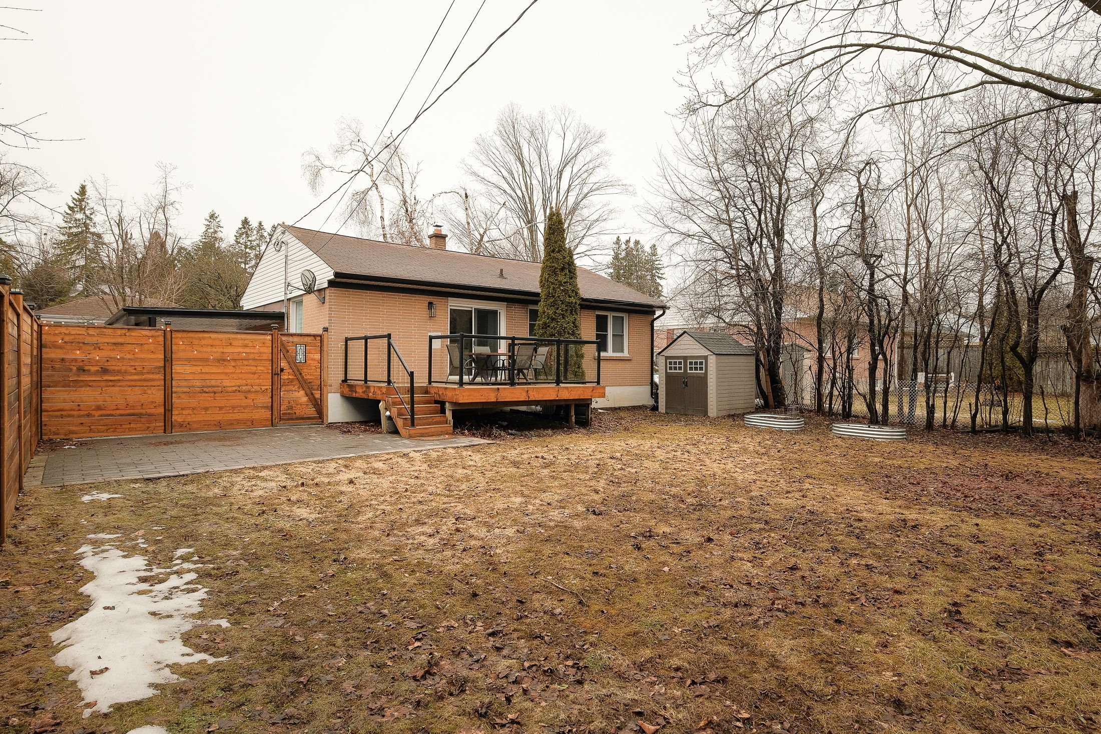 Tucked away on a quiet, tree-lined street in peterborough's sought-after west end, this updated three-bedroom, one-bath bungalow blends warmth, style, and everyday comfort. From the moment you arrive, you'll notice the care and attention that has gone into every detail. Inside, the open-concept main floor feels bright and inviting, with a custom kitchen that's both functional and stylish. The kitchen opens into the living and dining areas, creating a comfortable space for daily living and easy entertaining. The finished lower level with newly added vinyl plank flooring provides extra room to relax, featuring a cozy family room that's perfect for movie nights or casual gatherings. Step outside to enjoy a private backyard with a glass-railed deck, stone patio, and modern privacy fence. There's plenty of space to unwind, host, or simply enjoy the quiet setting. Located near the hospital, schools, and parks, this move-in ready home offers modern updates, thoughtful design, and a welcoming neighbourhood.