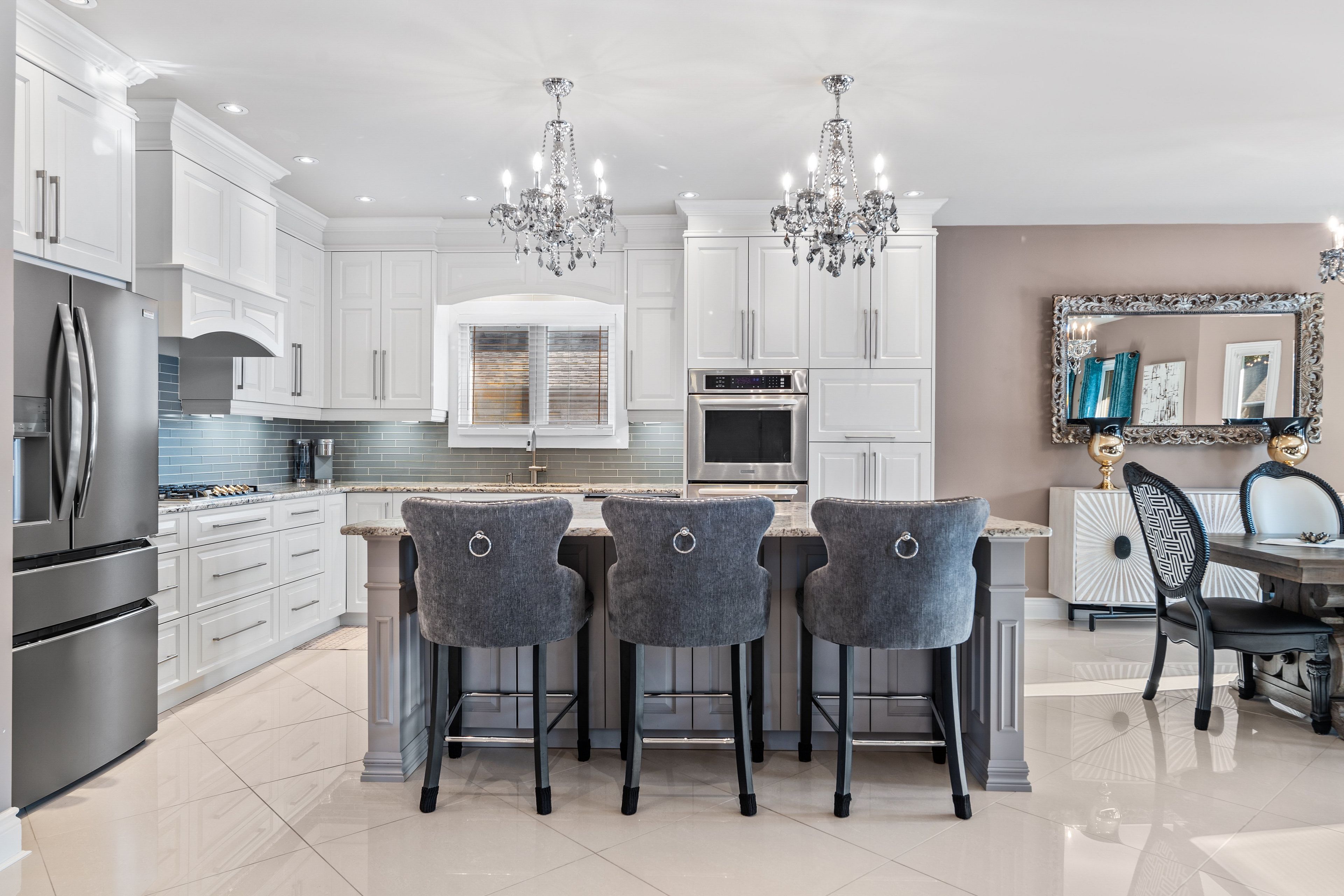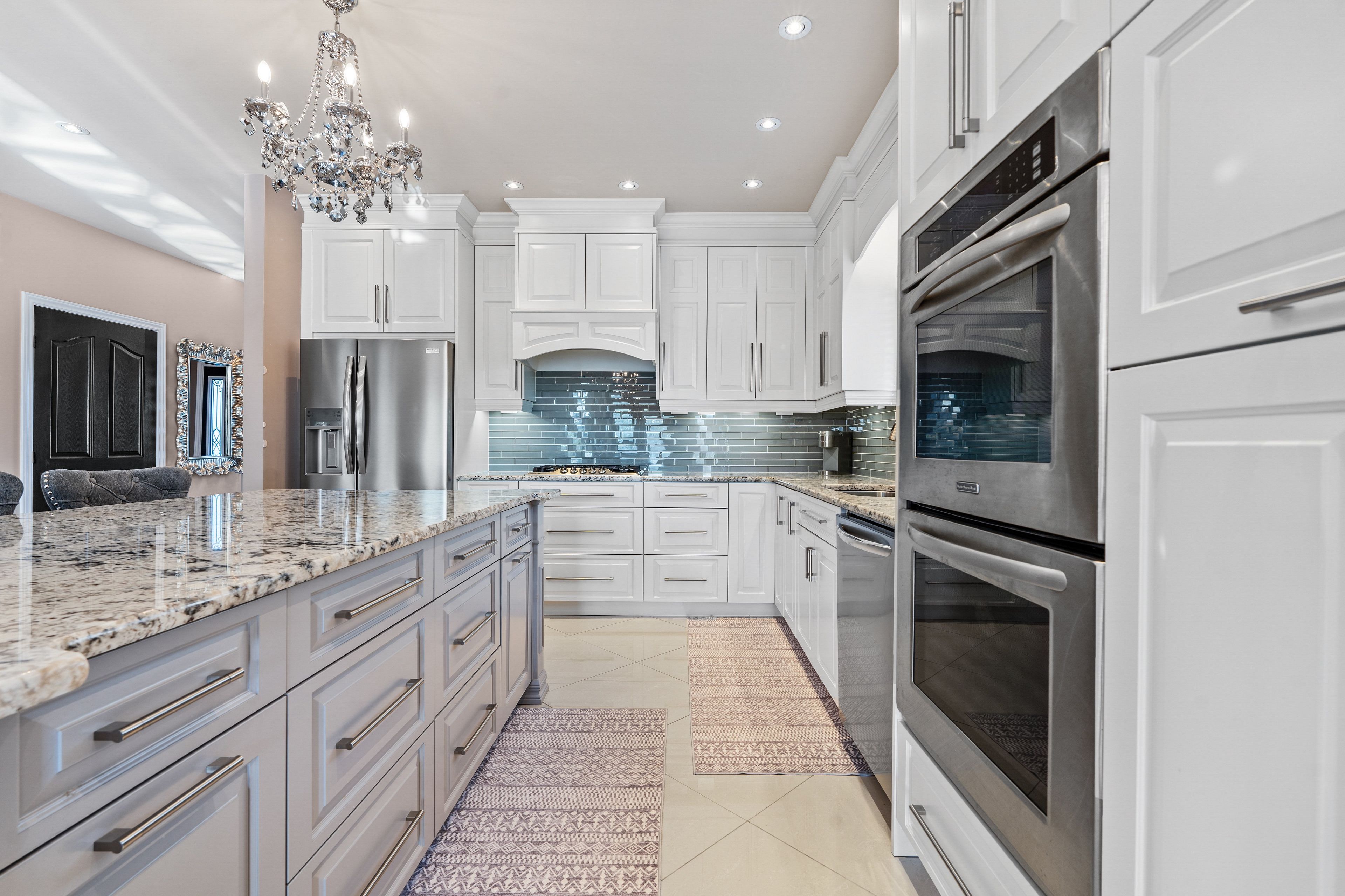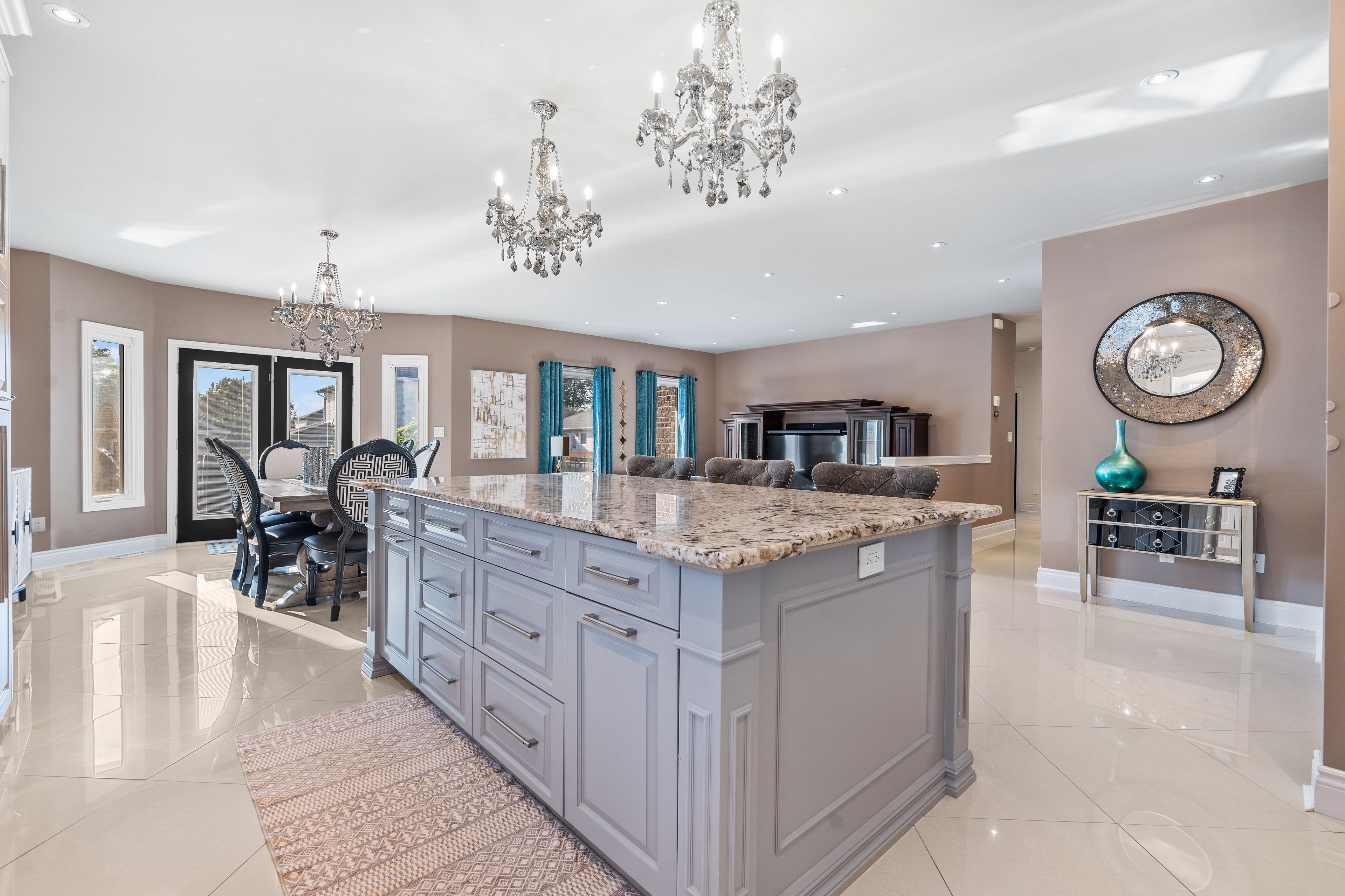 • Chef-inspired kitchen featuring a huge island and modern built-in appliances.