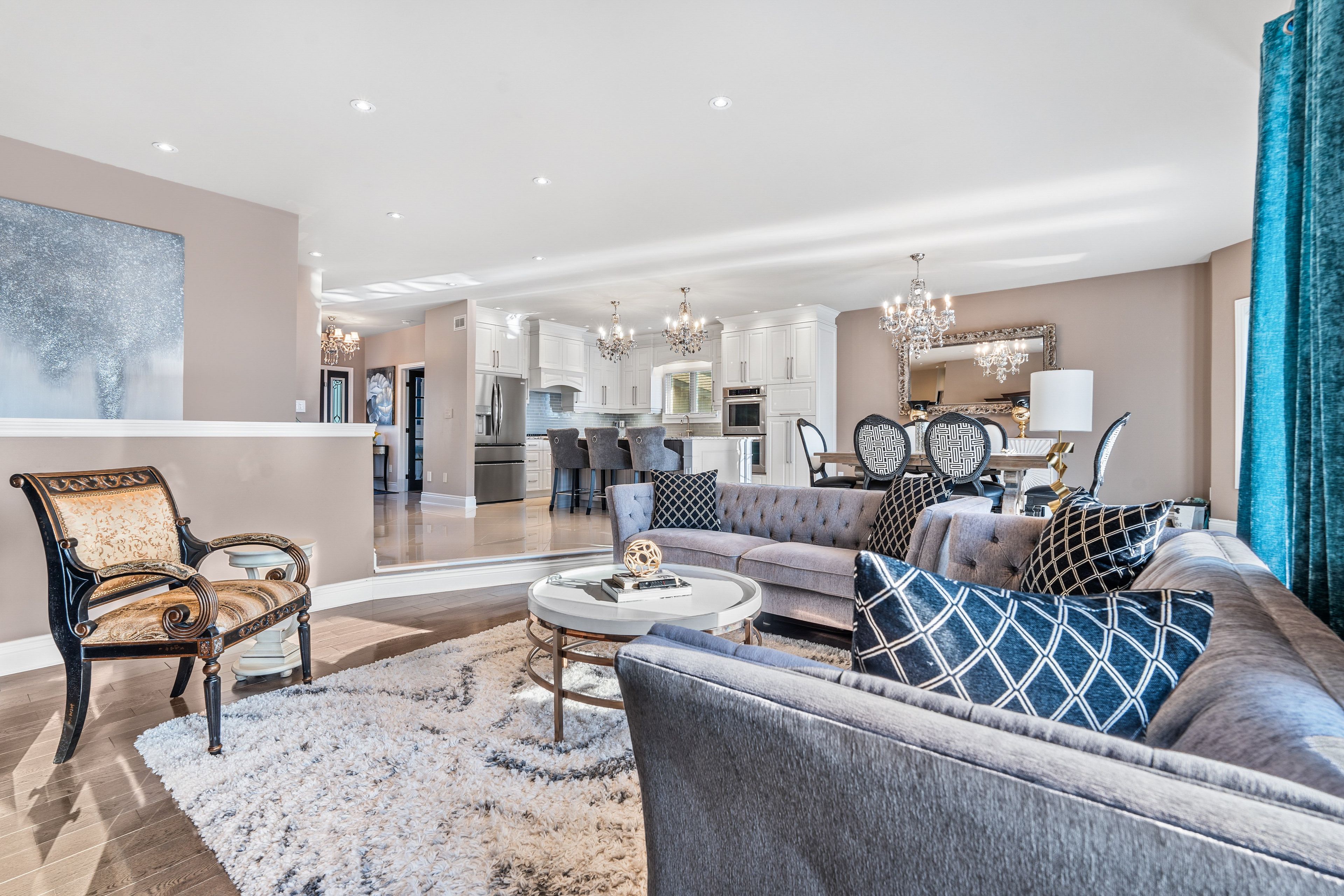 Luxurious, high-end all-brick bungalow nestled at the end of a quiet cul-de-sac is the epitome of elegance and modernity. Beautifully landscaped outdoor space along with a double wide paved driveway and a two-car attached garage offers ample space. The front yard also features an irrigation system, maintaining the greenery with pristine care. Step inside to be instantly captivated by the bright and airy open floor layout accentuated by inviting 9ft ceilings. Admire the exquisite, large white tile flooring that runs throughout this renovated beauty, giving it a fresh and contemporary feel. The home boasts an office and a spacious bedroom, both adorned with high-quality hardwood floors. The grand, chef-inspired kitchen steals the show with an enormous center island topped with stunning granite countertops. Also featuring ultra-modern built-in appliances, sliding cupboard drawers, and a hideaway microwave - a blend of style and functionality. The adjacent dining room, equipped with patio doors, offers an irresistible view of the fully-fenced backyard. The sunken living room offers plenty of extra space for gatherings. The main floor further features a gold accented 3pc bath, convenient laundry space, large primary bedroom with a walk-in closet, 4pc ensuite, and an additional bedroom. As you venture downstairs, you'll discover a fully finished rec room, ample storage space, the potential for a wet bar, an additional bedroom with an extra-large closet and an accessible utility room. The lower level also houses a separate in-law suite. This suite is immaculately finished and equipped with quartz countertops in the kitchen, 4pc bath, designated laundry space, and double doors for privacy and convenience. This suite comes with its own exterior entry via a side pathway, offering easy access and independent living options. 3pc bath' 25, in-law suite' 23, kitchen remodel '18, main floor remodel '17 and much more!