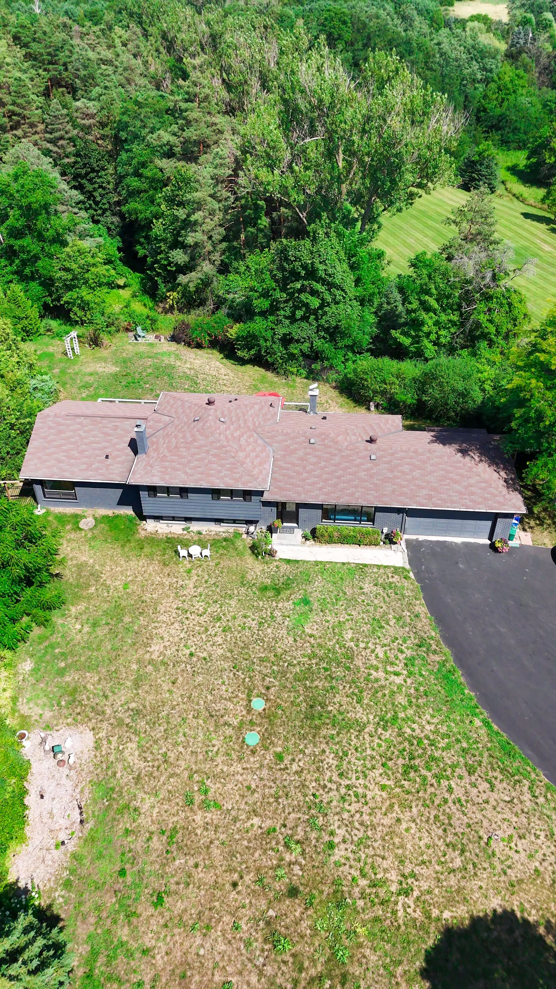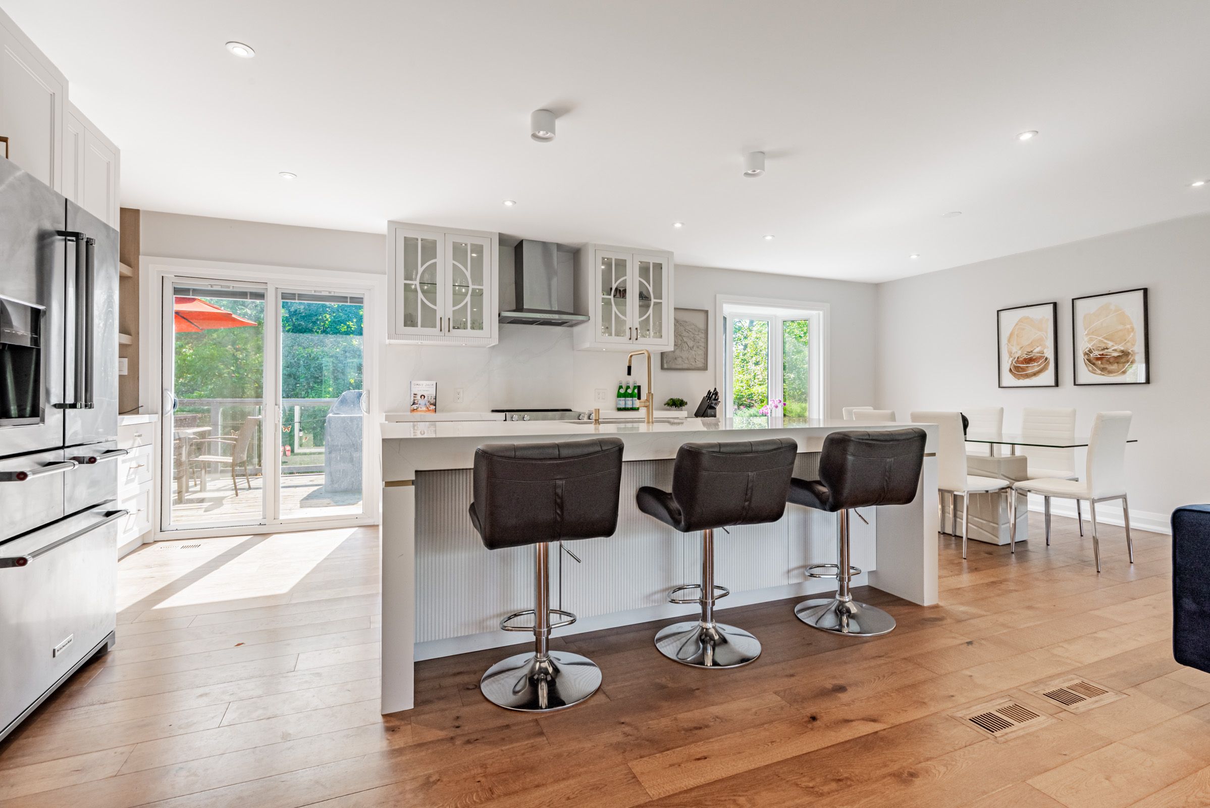 Once-in-a-lifetime opportunity to own nearly 2 acres of ultra-prime land, directly across from the exclusive magna golf club community in aurora. Secluded long driveway lined with mature trees, ensuring utmost privacy from the road. Reside in this exquisitely renovated sidesplit bungalow with in-law suite potential, or construct your bespoke dream estate on this irreplaceable parcel. Abundant natural light and breathtaking scenic views from every window. Bespoke kitchen featuring custom paneling, island, cabinetry, and all kitchenaid appliances. Premium engineered white oak plank hardwood flooring. Integrated speakers and potlights throughout. Brand-new bathrooms. Freshly painted interior and exterior. Upgraded 200amp electrical panel and electric car charger ready. Expansive picture and bay windows. Vast eat-in kitchen with direct walk-out to deck. Distinct separate loft complete with cottage-like exposed beams, cathedral ceiling, private bathroom, shower, and bar. Serene nature trails backing onto protected greenspace, offering unmatched tranquility.
