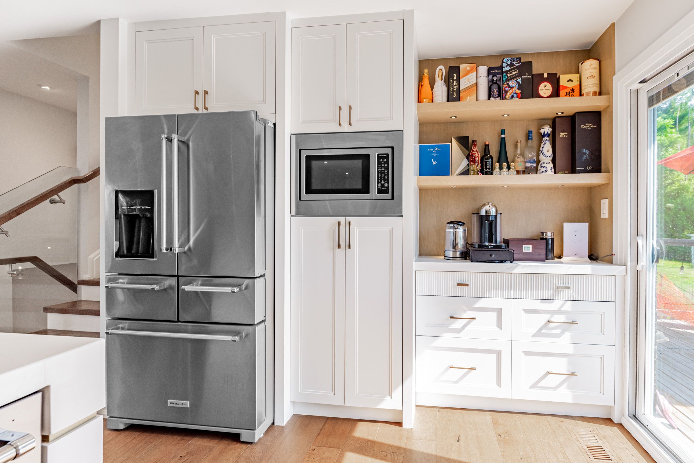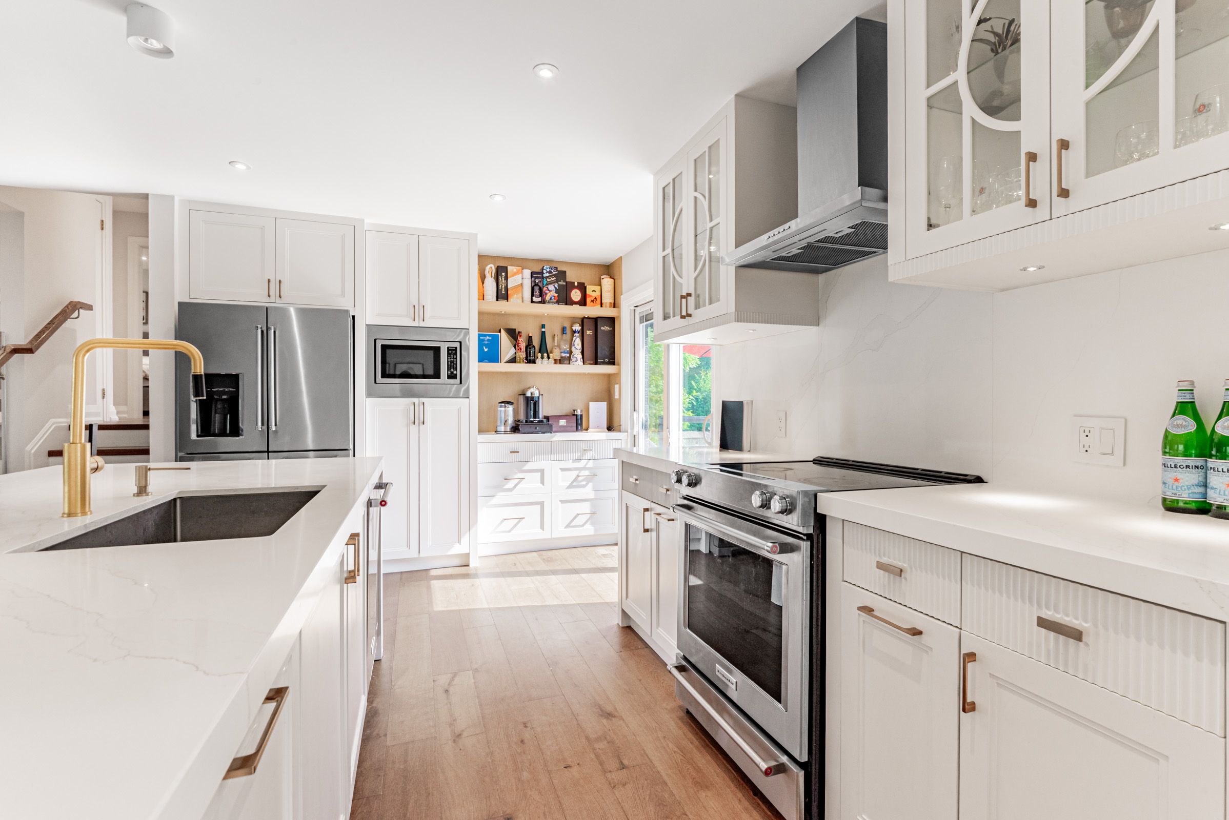 • Expansive kitchen with custom cabinetry and direct access to the deck.