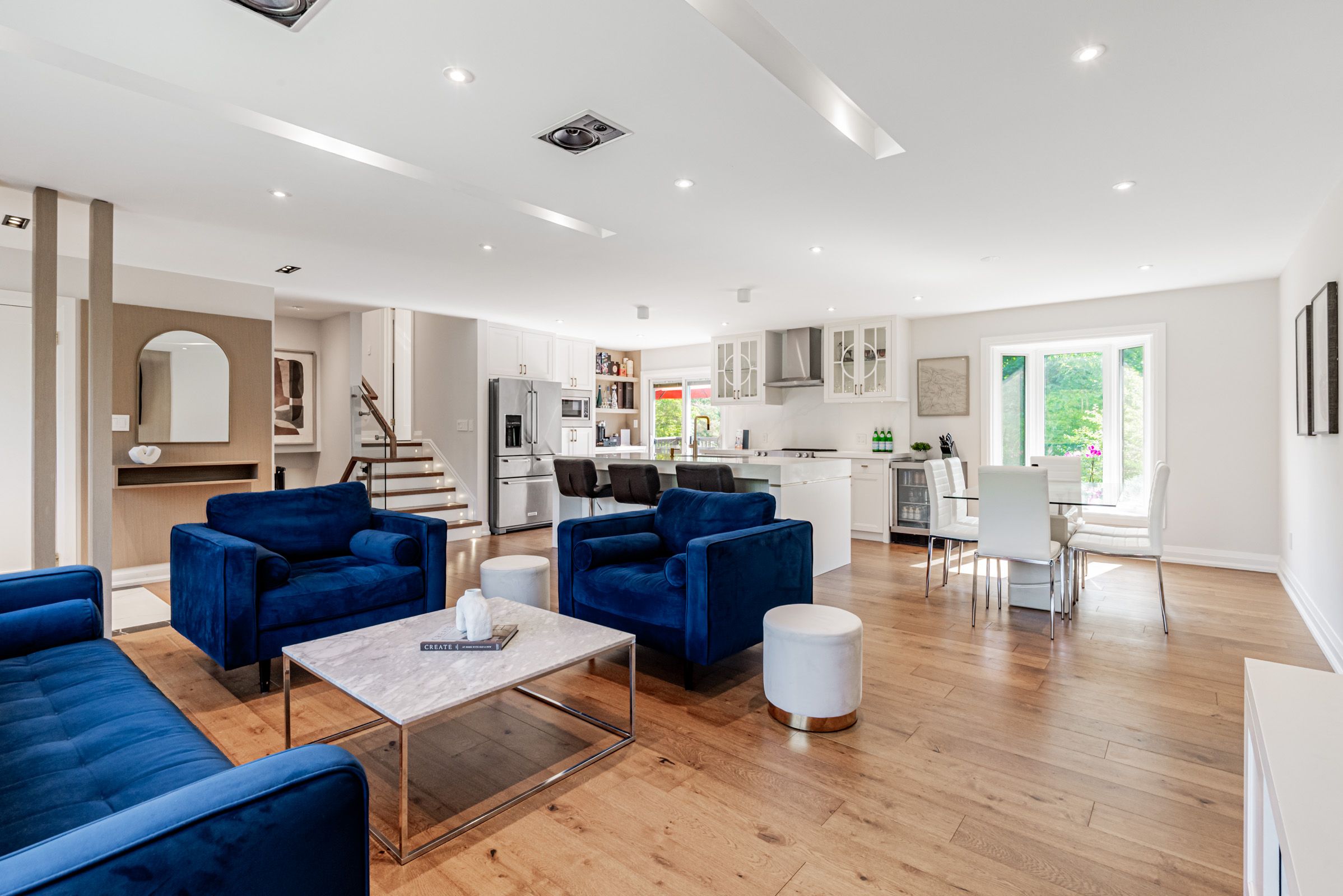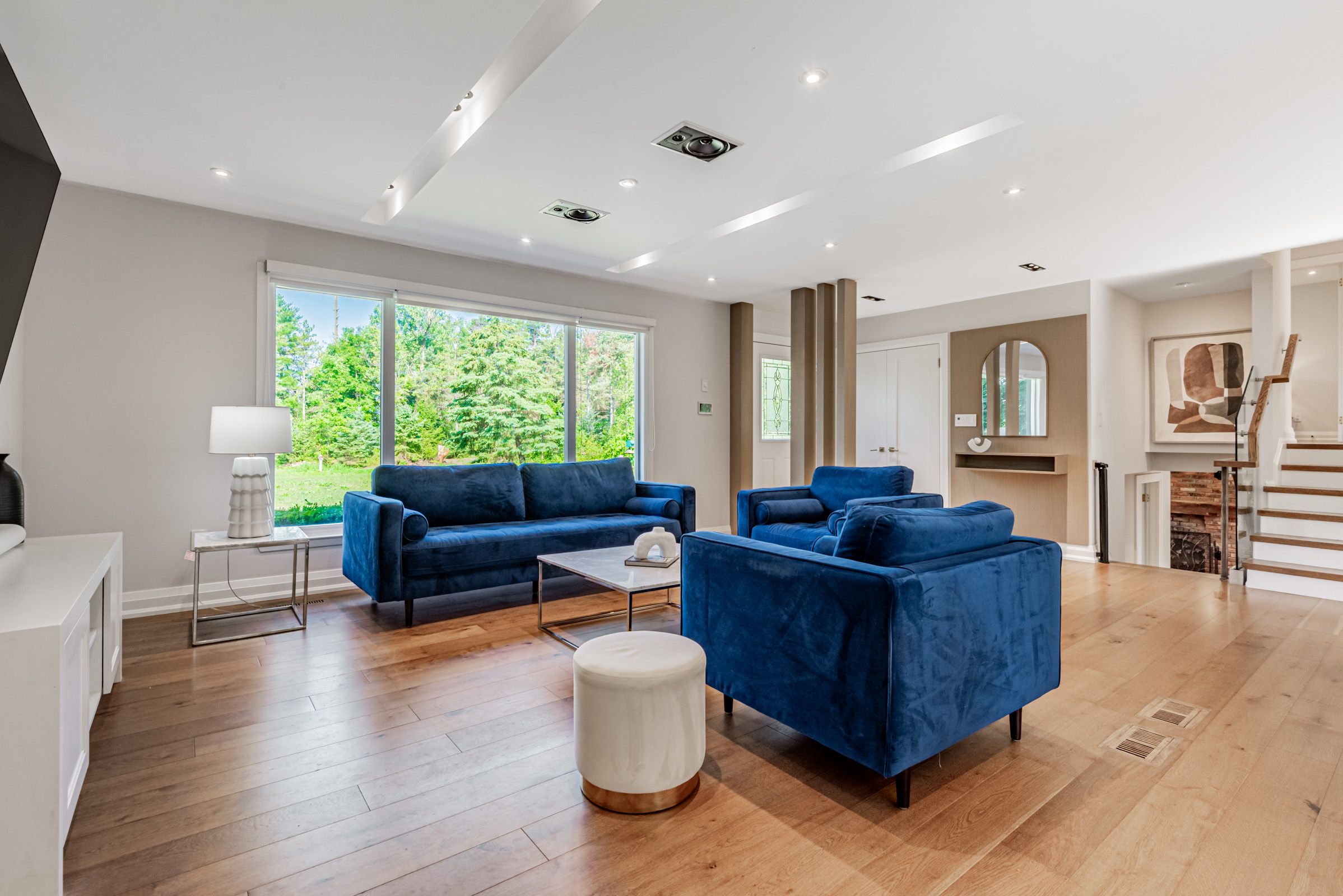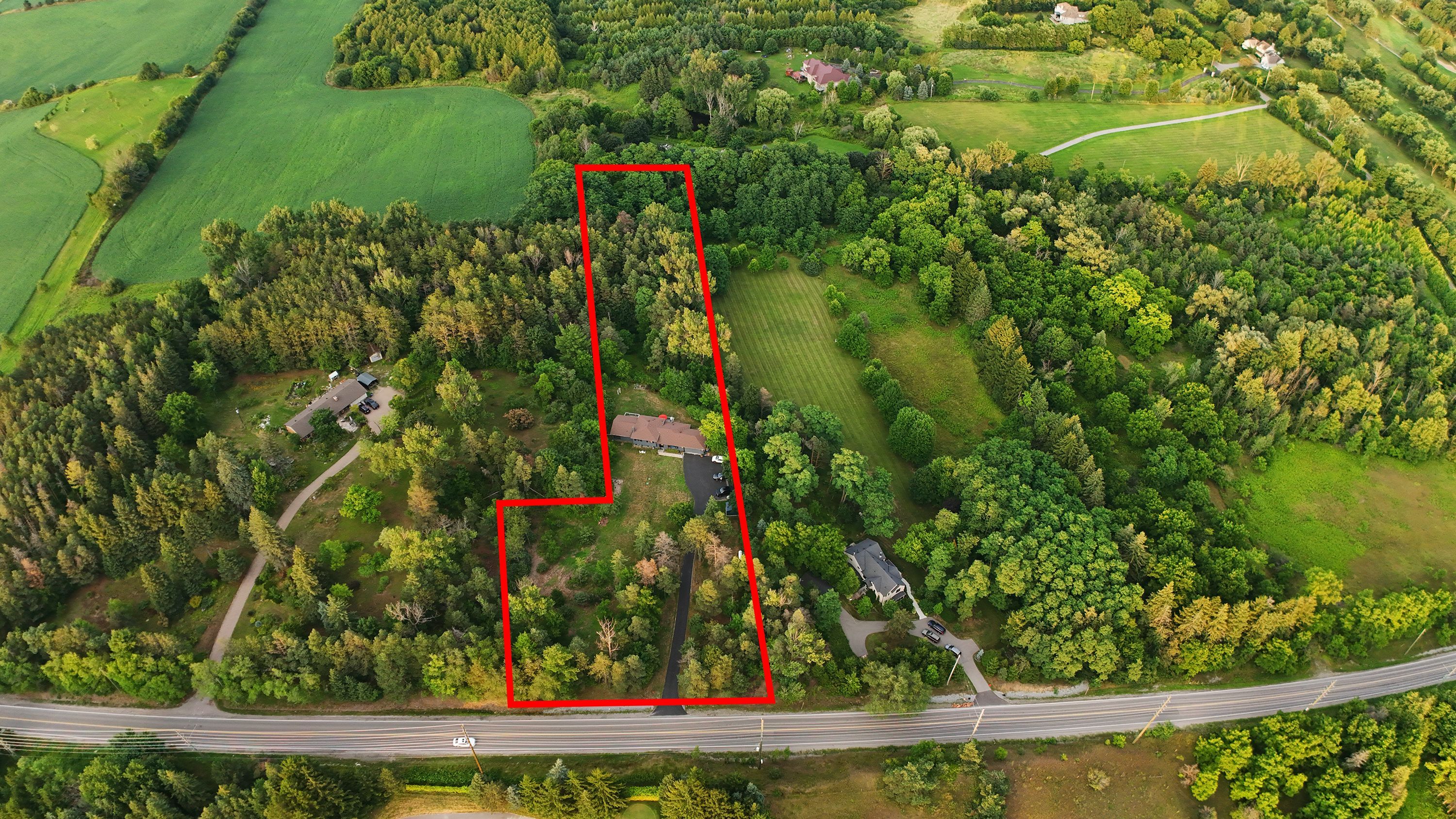 Once-in-a-lifetime opportunity to own nearly 2 acres of ultra-prime land, directly across from the exclusive magna golf club community in aurora. Secluded long driveway lined with mature trees, ensuring utmost privacy from the road. Reside in this exquisitely renovated sidesplit bungalow with in-law suite potential, or construct your bespoke dream estate on this irreplaceable parcel. Abundant natural light and breathtaking scenic views from every window. Bespoke kitchen featuring custom paneling, island, cabinetry, and all kitchenaid appliances. Premium engineered white oak plank hardwood flooring. Integrated speakers and potlights throughout. Brand-new bathrooms. Freshly painted interior and exterior. Upgraded 200amp electrical panel and electric car charger ready. Expansive picture and bay windows. Vast eat-in kitchen with direct walk-out to deck. Distinct separate loft complete with cottage-like exposed beams, cathedral ceiling, private bathroom, shower, and bar. Serene nature trails backing onto protected greenspace, offering unmatched tranquility.