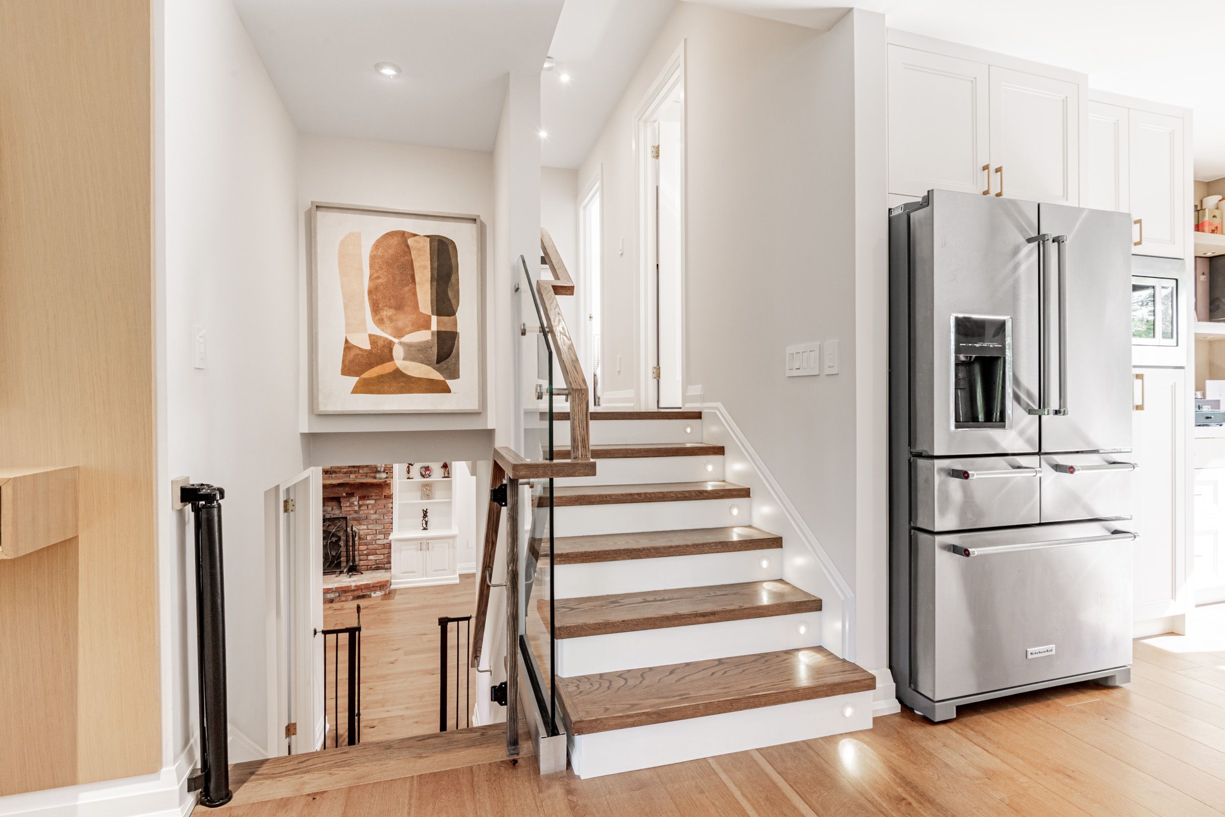 • Spacious kitchen with custom cabinetry and KitchenAid appliances.