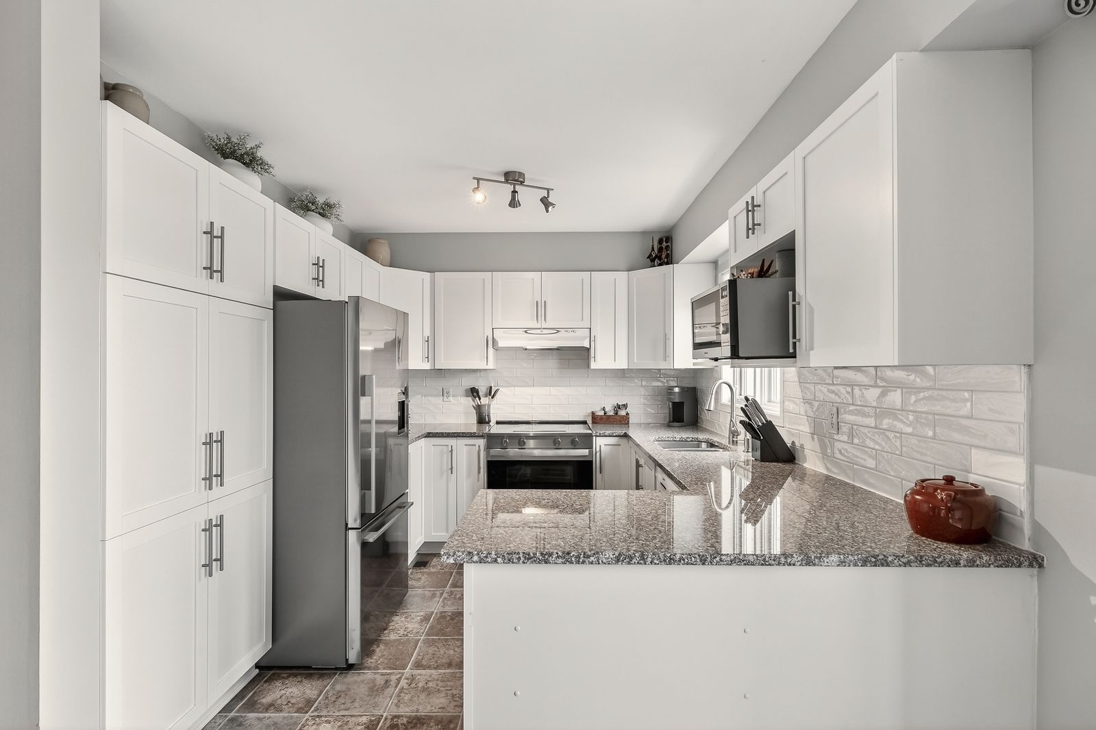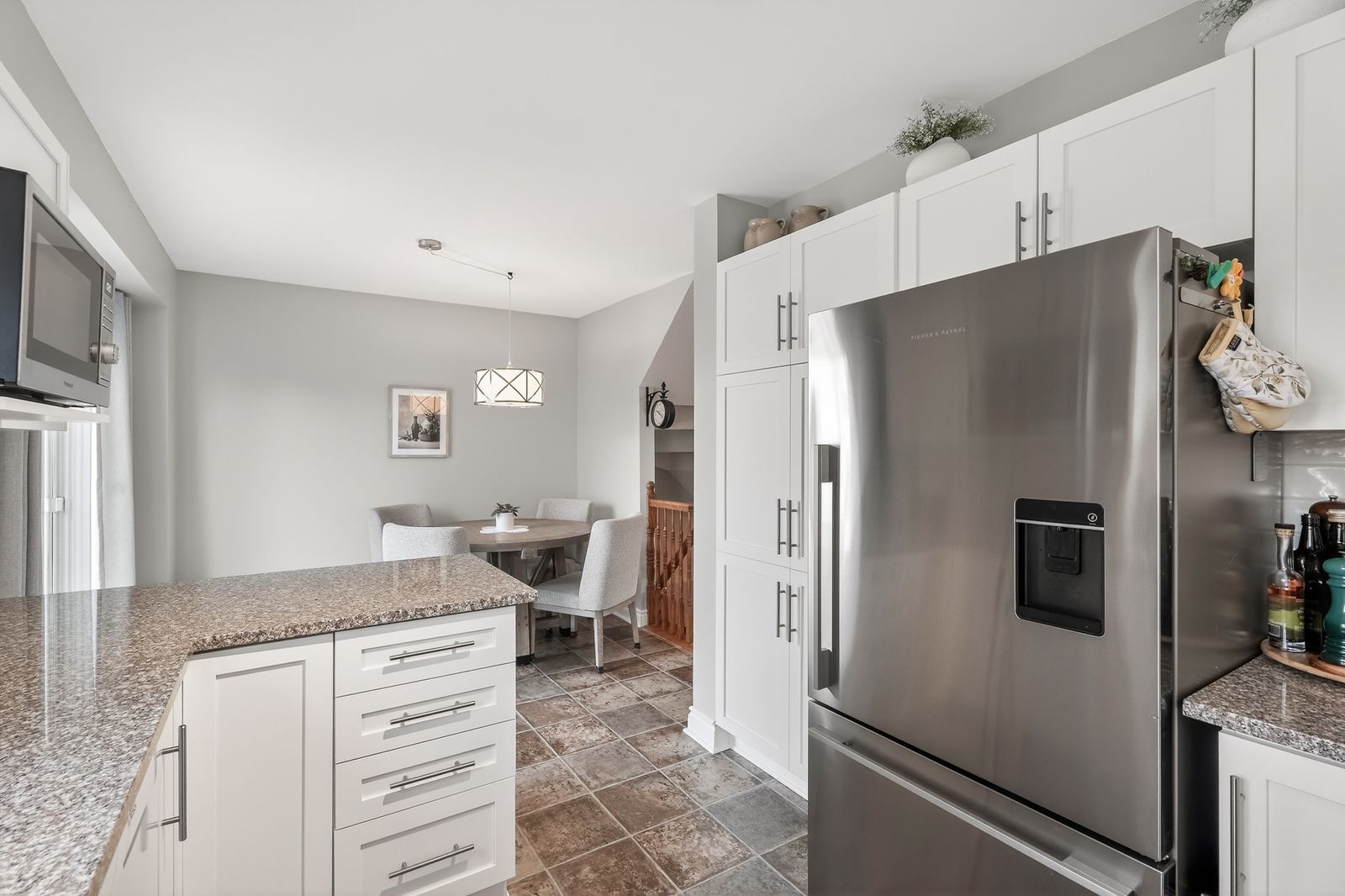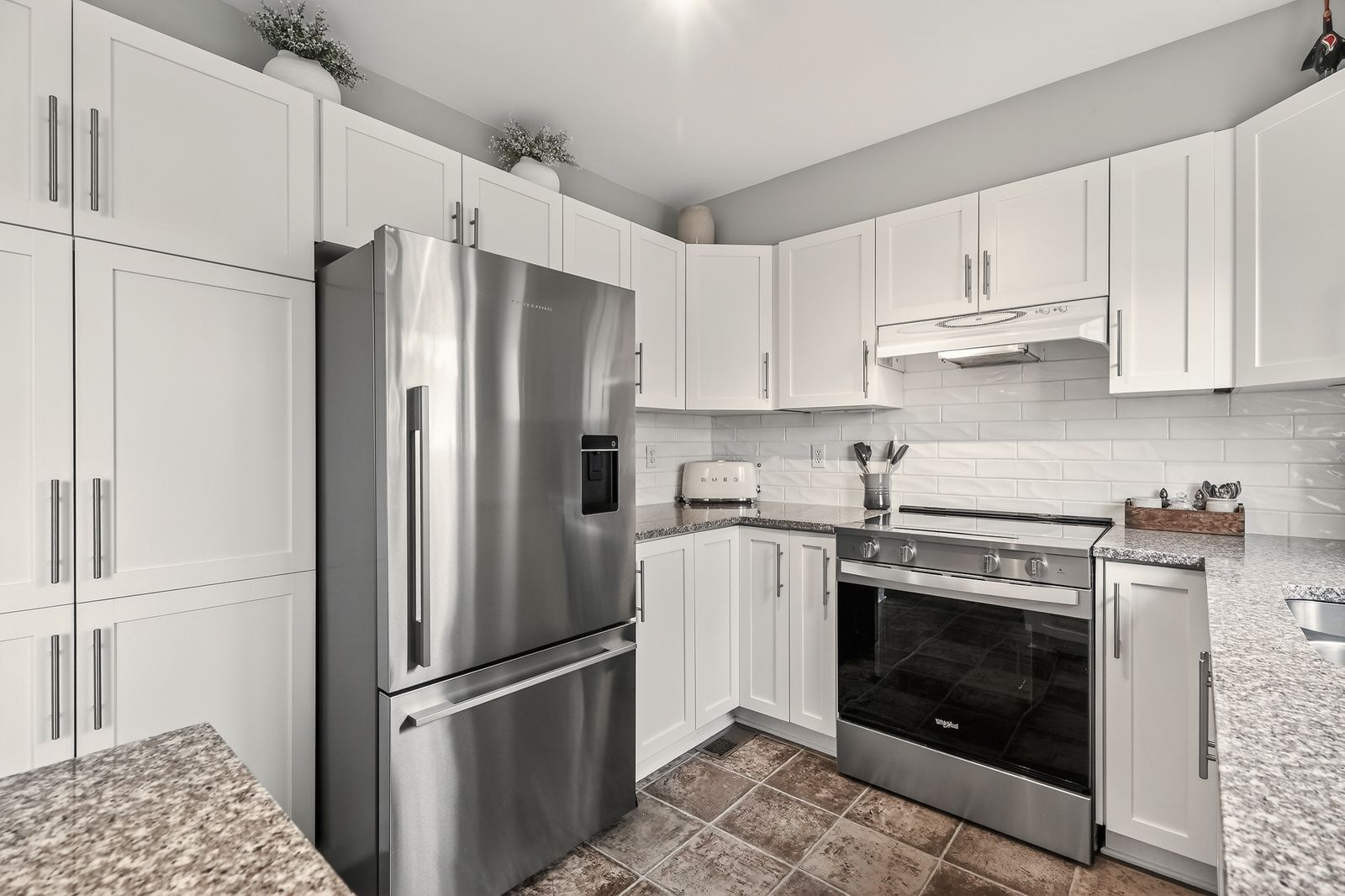 • Updated kitchen featuring granite countertops and quality fixtures.