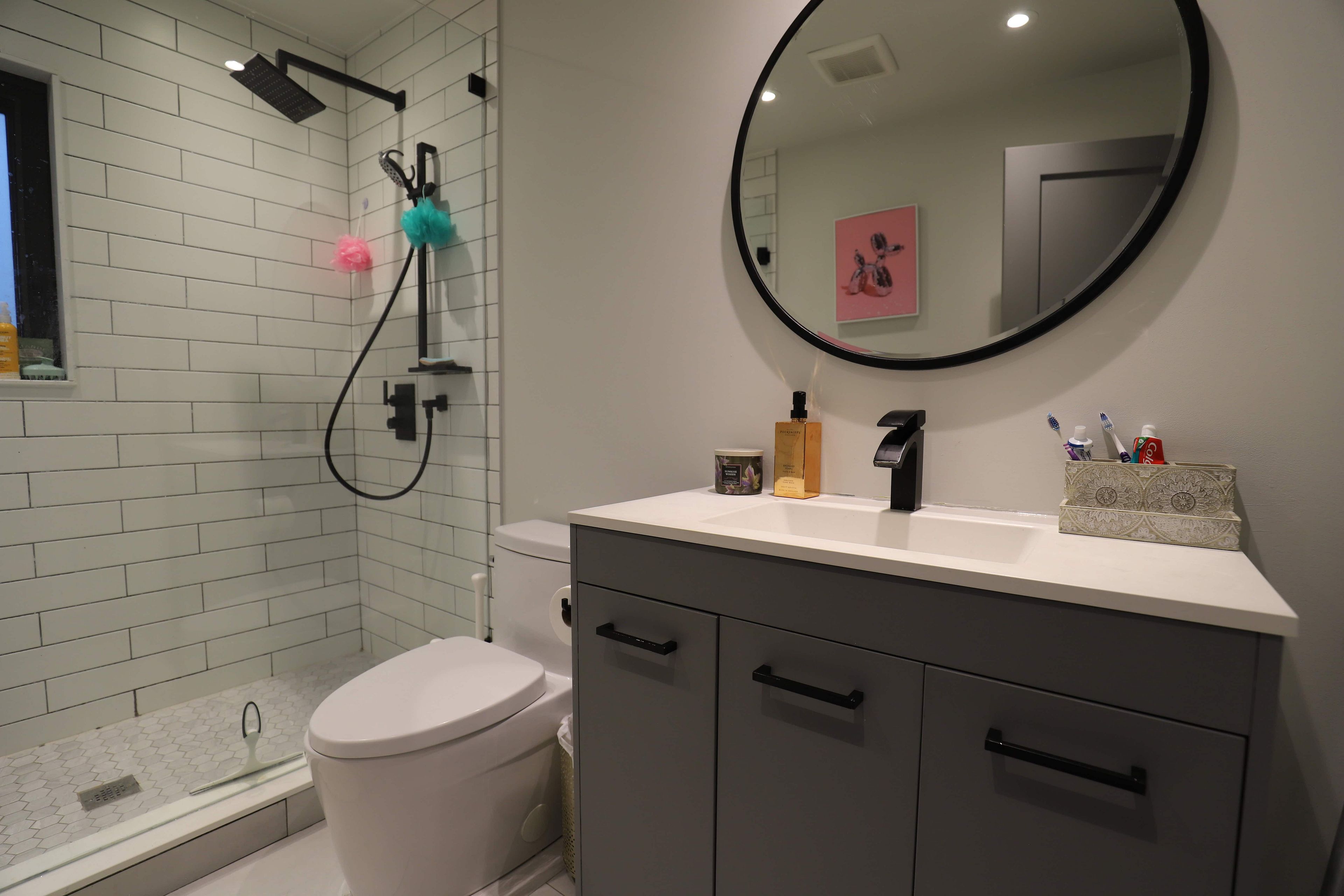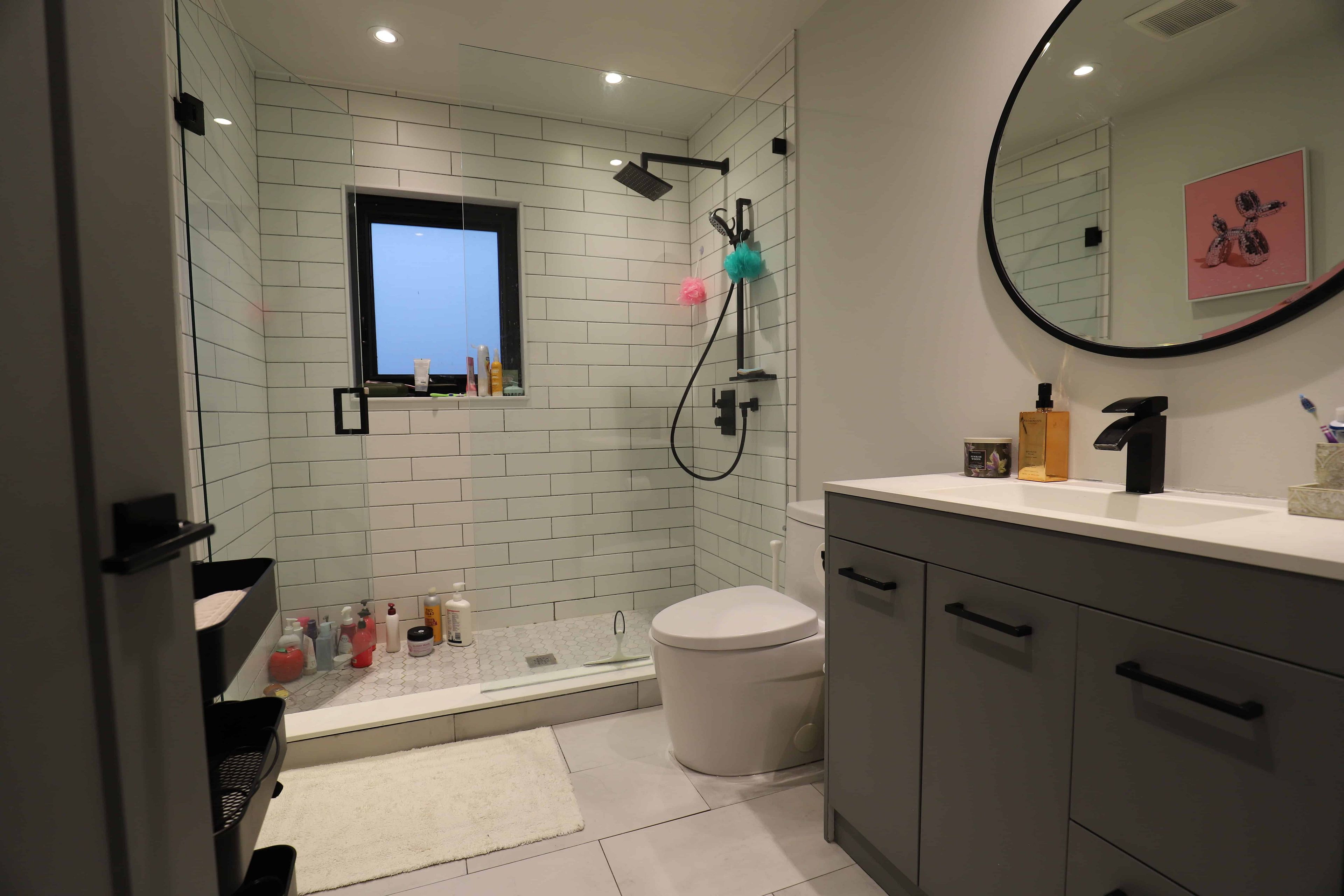 • Large bathroom with a massive shower for comfort.