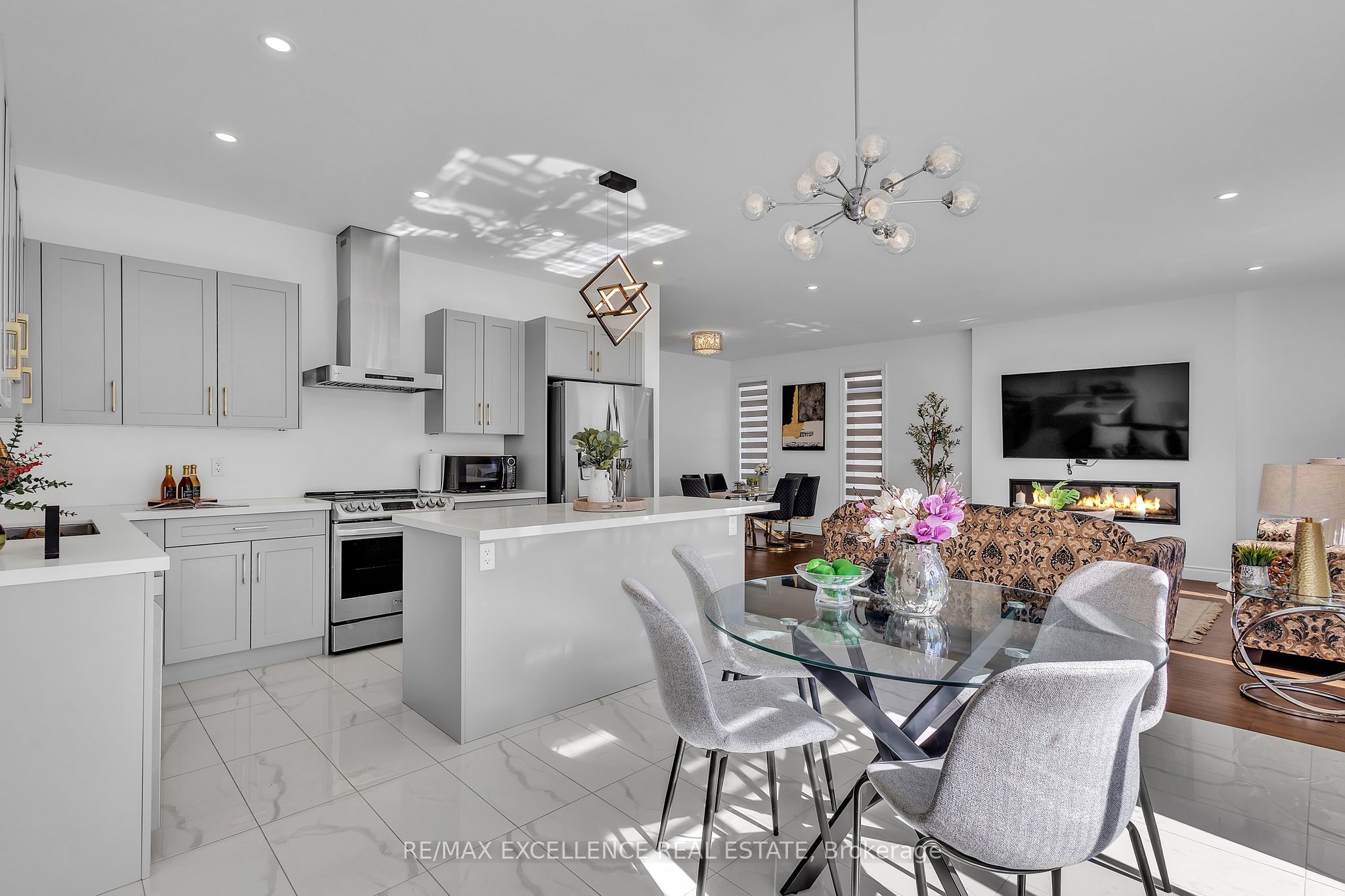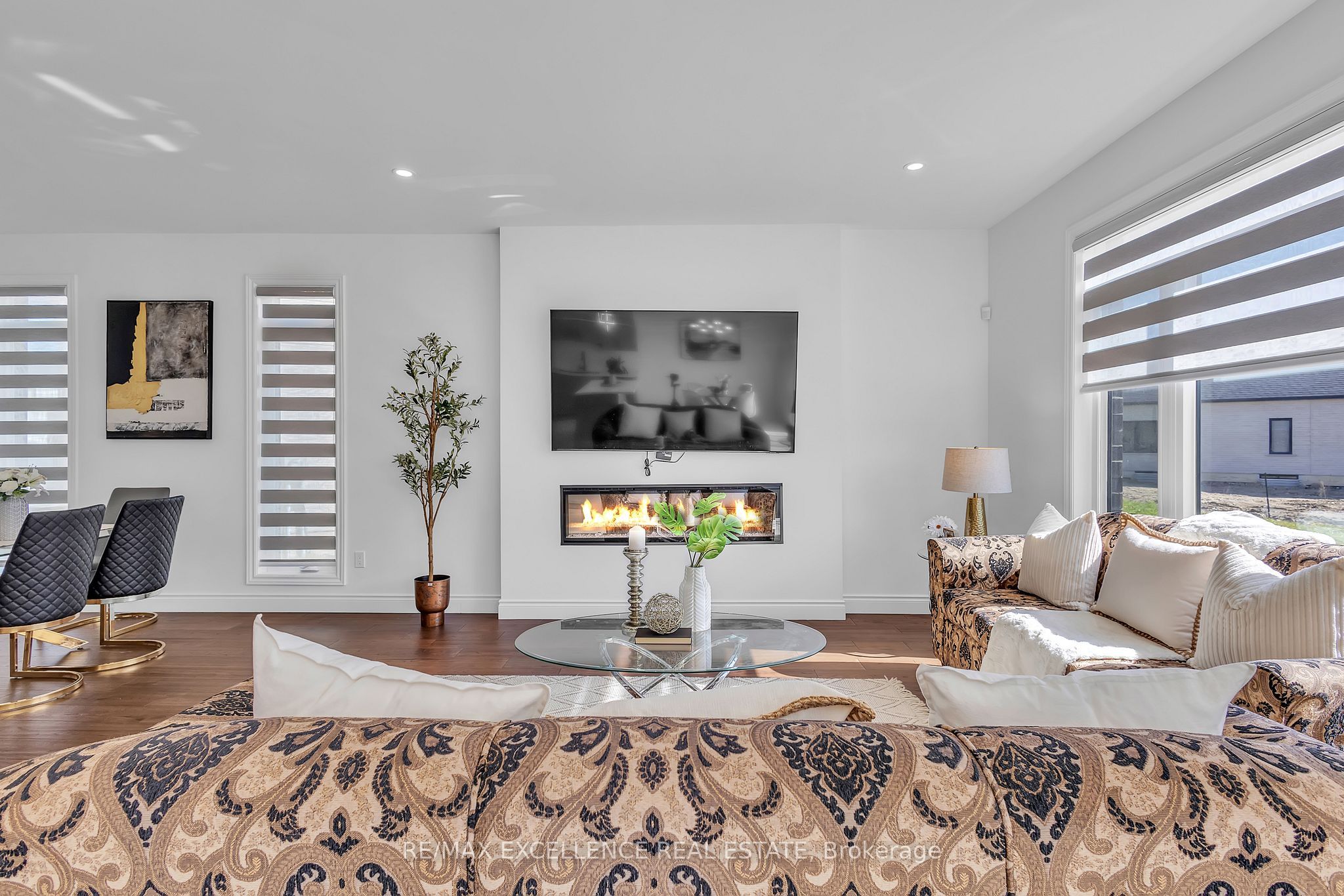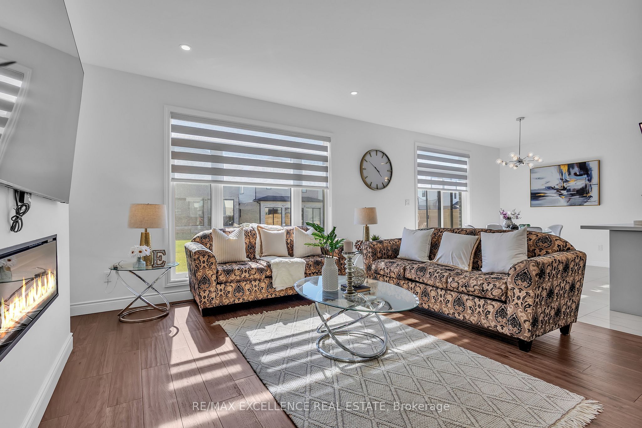 Welcome to 1464 medway park dr, a stunning 2-storey detached home nestled in the prestigious hyde park neighbourhood of north london. Built in 2021, this carpet-free, contemporary residence offers 2,685 sq. Ft. Of luxurious above-grade living space on a beautifully landscaped 42. 68 x 111. 26 ft lot. The elegant exterior showcases a stone and stucco façade, accented by brick and vinyl sides, a wide driveway, and meticulous curb appeal that reflects true pride of ownership. Step inside to discover an open-concept main floor highlighted by 9-ft ceilings, engineered hardwood flooring, pot lights, and oversized windows that fill the home with natural light. The inviting living room features a sleek electric fireplace, creating the perfect setting for gatherings and relaxation. The chef-inspired kitchen is a true showpiece, boasting quartz countertops, custom cabinetry, stainless steel appliances, a modern backsplash, and under-cabinet lighting. High-end roller blinds throughout the home add a touch of sophistication and privacy. Upstairs, the primary suite offers a spacious walk-in closet and a spa-like ensuite bath. Bedrooms 2 and 3 share a stylish jack & jill bathroom, while bedroom 4 enjoys its own private ensuite-ideal for guests or extended family. A legal separate side entrance leads to the unfinished basement, offering incredible potential for a future in-law suite or income-generating unit. Completing this exceptional property is a double-car garage and parking for up to six vehicles. Experience the perfect blend of modern comfort, design, and location-this home truly stands out in one of london's most desirable communities.