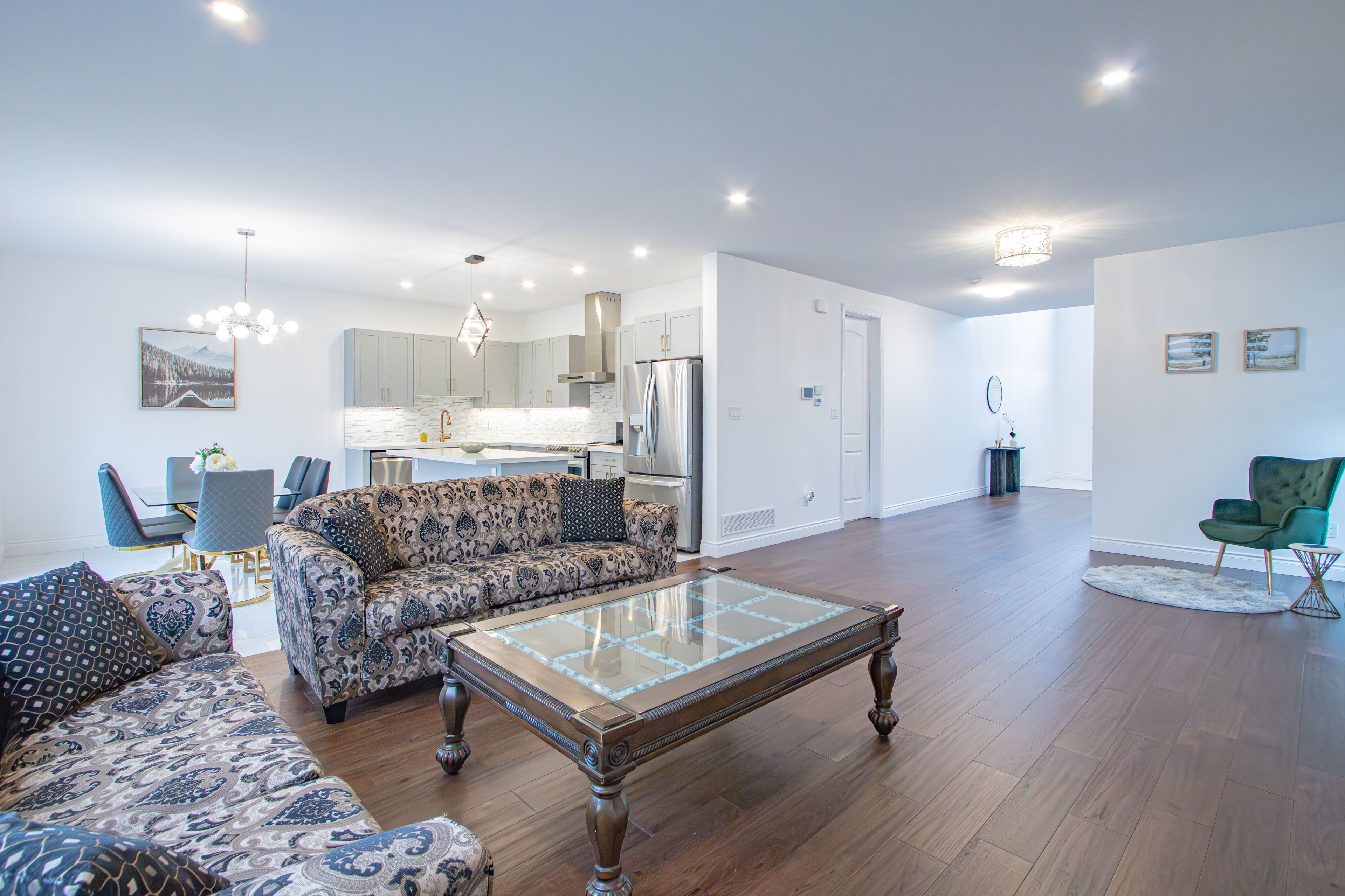 • Bright interior with 9 ft ceilings and oversized windows for natural light.