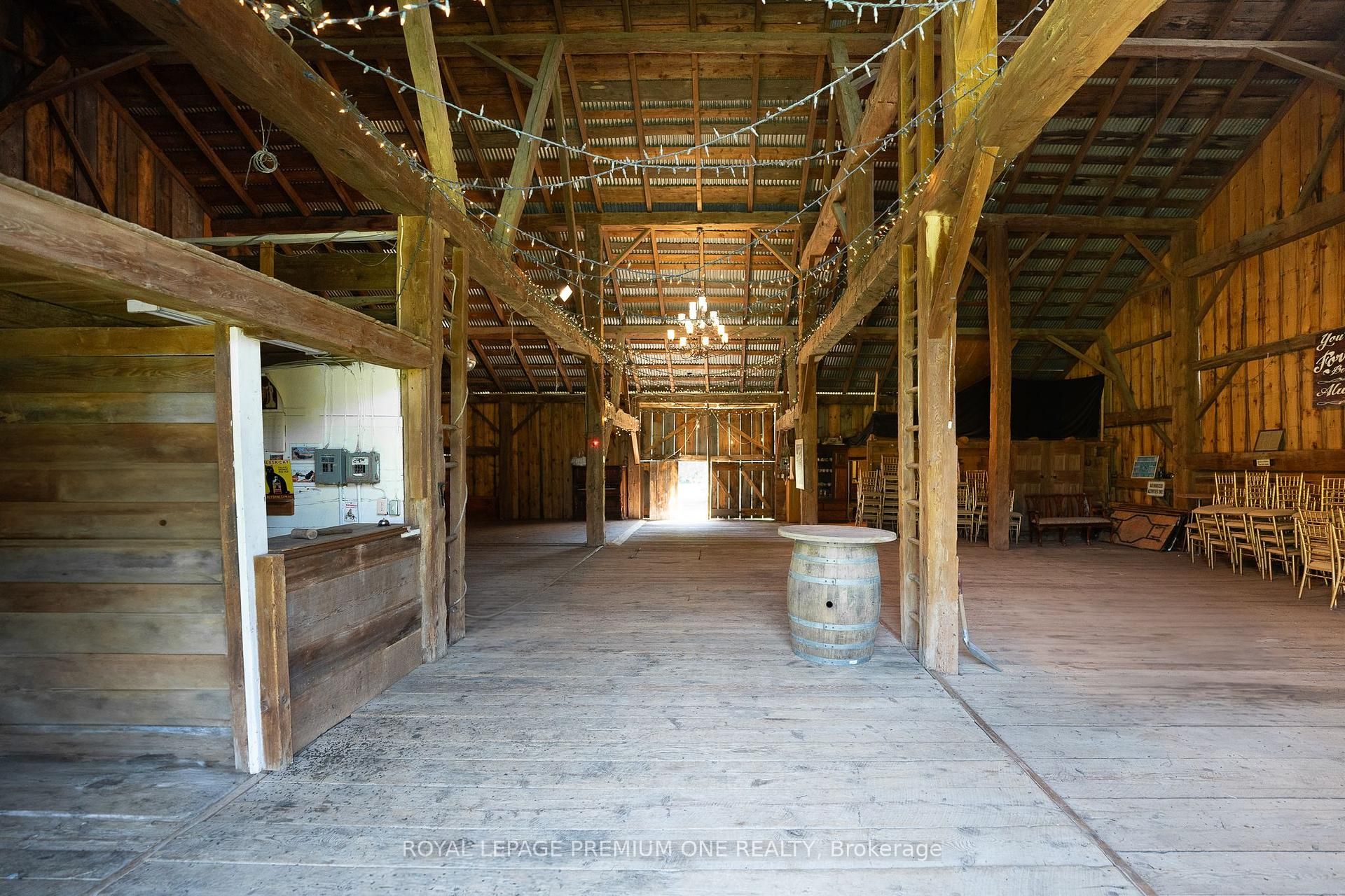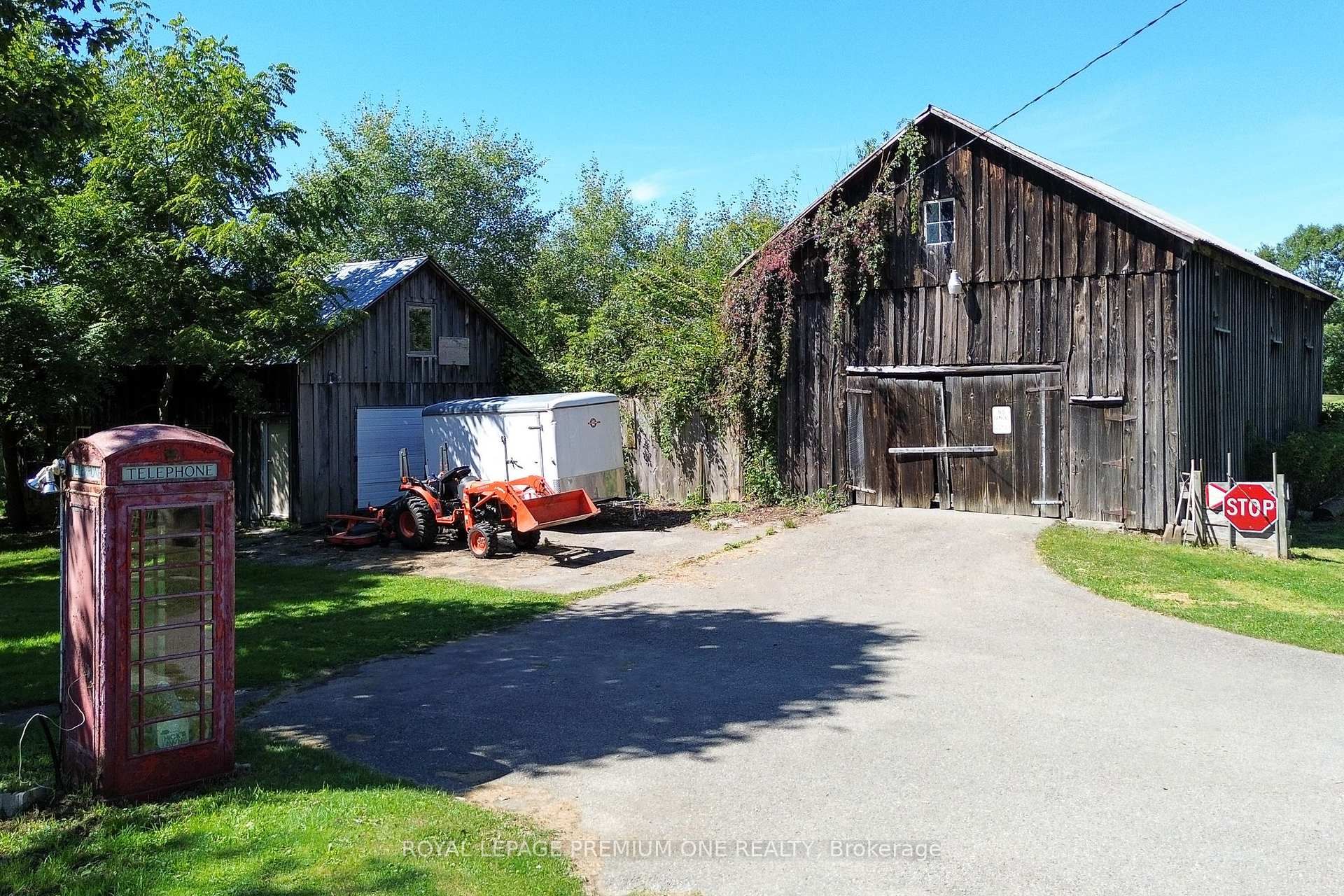 Bursting with charm and storied in history. This 1864 gem and 5 out buildings are with period features and old-world character. The alexander smith farmhouse is a good representation of the vernacular style known as "ontario gothic". This style is the l-shaped floor plan, polychromatic brick patterning, buff brick quoins and voussoirs. The residence also has coursed polychromatic end chimneys, a projecting bay window, lancet & paired gable windows. A porch with decorative bargeboards wraps around the ne corner of the house. Attached to the nw corner of the house is the summer kitchen & brick carriage house with the original farm bell on the roof. Located across the farm lane, are the 5 out buildings. The buildings consist of the chicken house, implement shed, and three timber frame barns set in a u-shape, all with medium pitched gable roofs & board and batten cladding. The farm complex is surrounded by a mix of open fields, natural growth cedar & areas of reforestation. A cedar rail fence lines the property. Make this property your hobby farm or transform it into an income property by way of hosting events like weddings or corporate gatherings. How about turning it into a wellness retreat or a bed & breakfast. Even add additional outbuildings and increase your income capabilities. The opportunities at this farm complex are endless.
