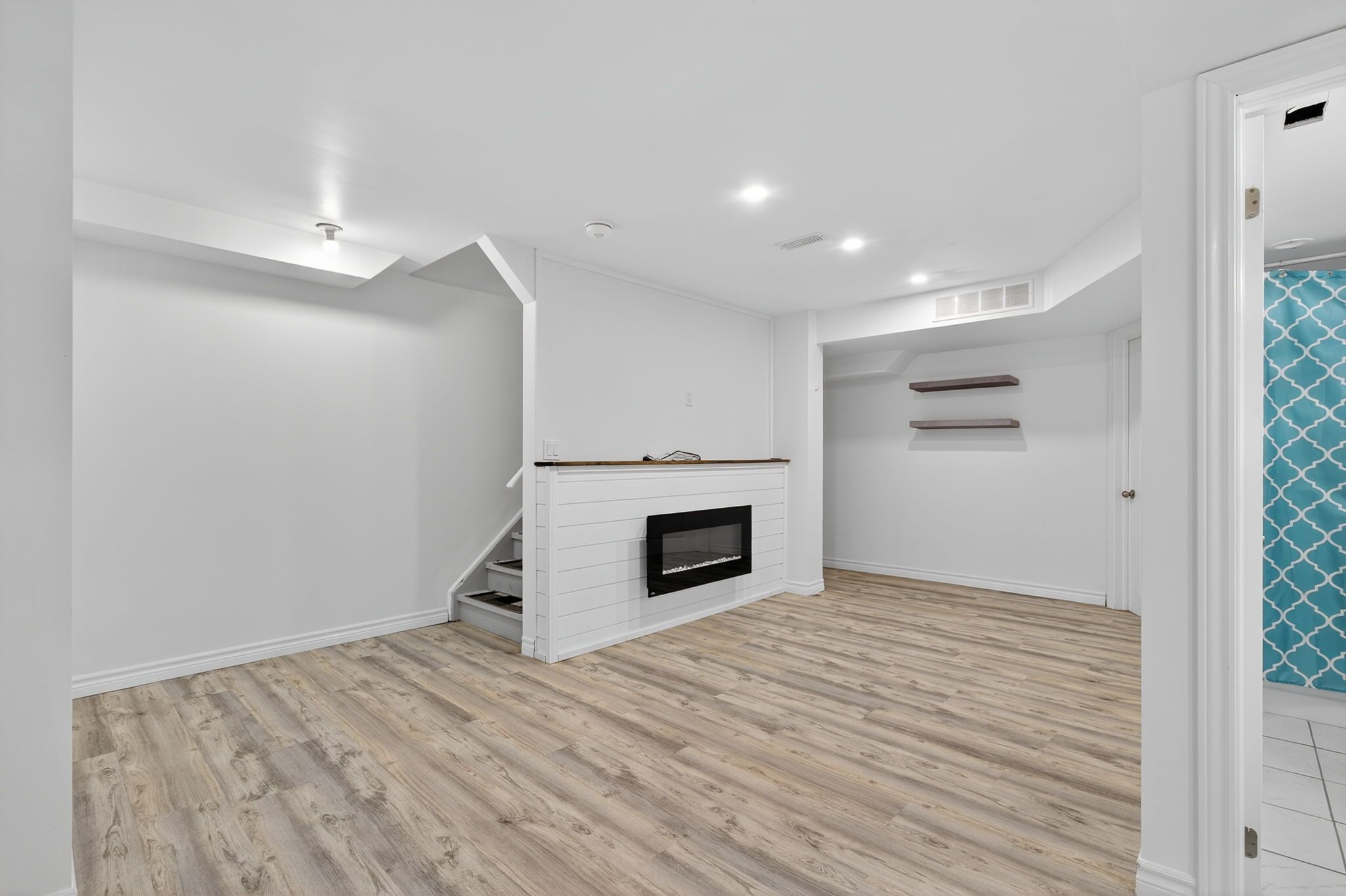 • Upgraded with modern finishes and inviting fireplace in living room.