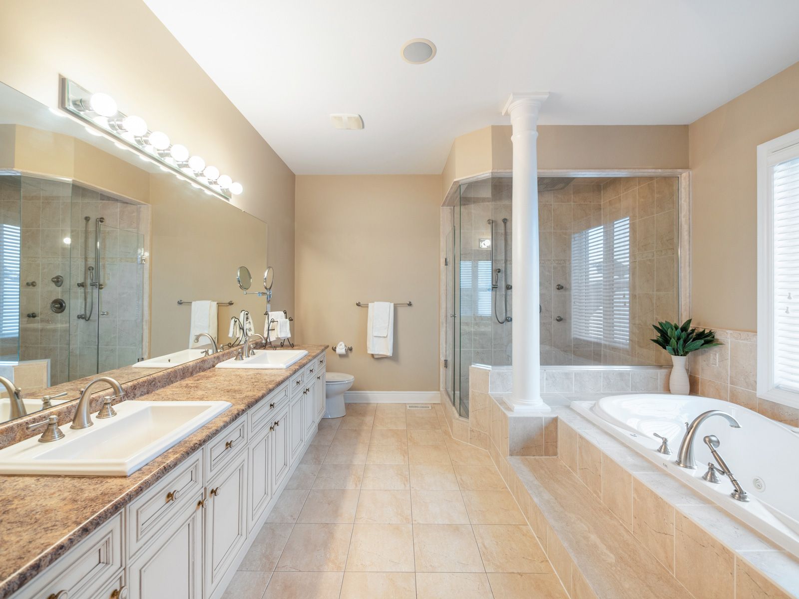 A meticulously maintained family home in joshua creek, built by fernbrook and thoughtfully upgraded by its original owners over two decades. The main floor features 10-foot ceilings throughout, with an open plan encompassing a home office, sitting room, powder room, and great room with vaulted ceilings and gas fireplace. The formal dining room includes a servery. The kitchen centers around a substantial island with extensive cabinetry. A mudroom provides direct garage access. Nine-foot ceilings continue on the upper floor, where four generous bedrooms and three bathrooms are arranged. The primary suite occupies its own wing with a sitting area, gas fireplace, dual walk-in closets, and a spa-inspired ensuite. The lower level features 9 and 10-foot ceilings and includes a family room with gas fireplace, gymnasium, billiards room, wet bar, steam shower, and state-of-the-art theatre room with integrated sound system. New wide-plank oak flooring spans the main level. Crestron and nest smart home systems control music, lighting, climate and the alarm system throughout. Outside, $150,000 in professional landscaping surrounds a fresh water pool, with mature plantings and custom lighting creating privacy. The property includes security cameras and a comprehensive alarm system. Top-rated schools within the district. Highway access, premium shopping, and dining including narenj, oak cafe gallery, and blk & co all within ten minutes.