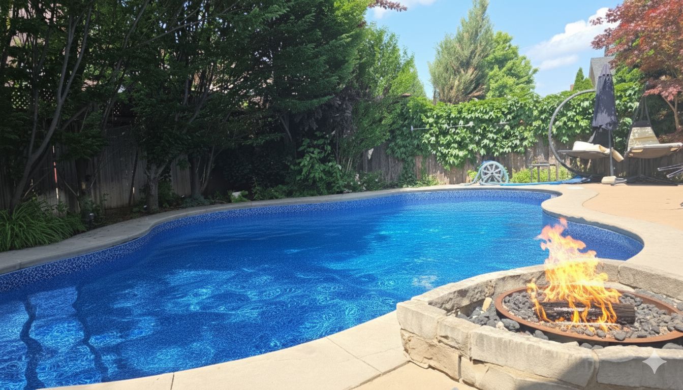 • Professional landscaping surrounds a fresh water pool, providing privacy and relaxation.