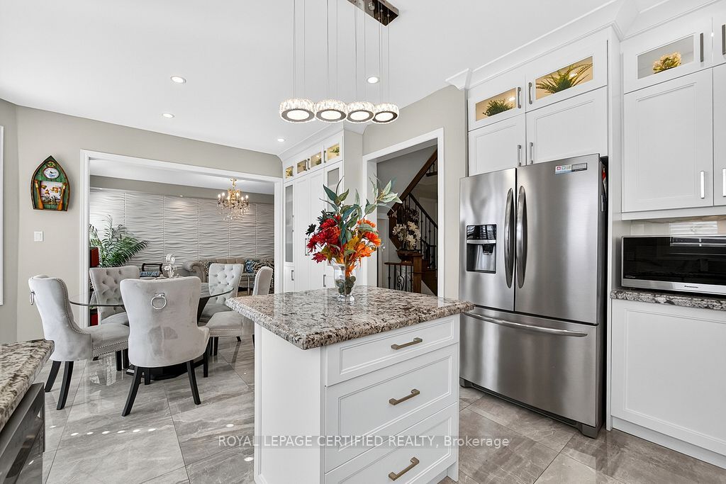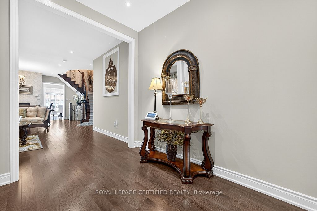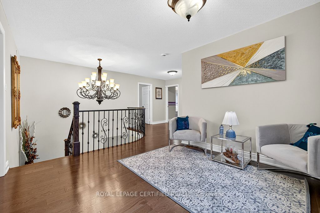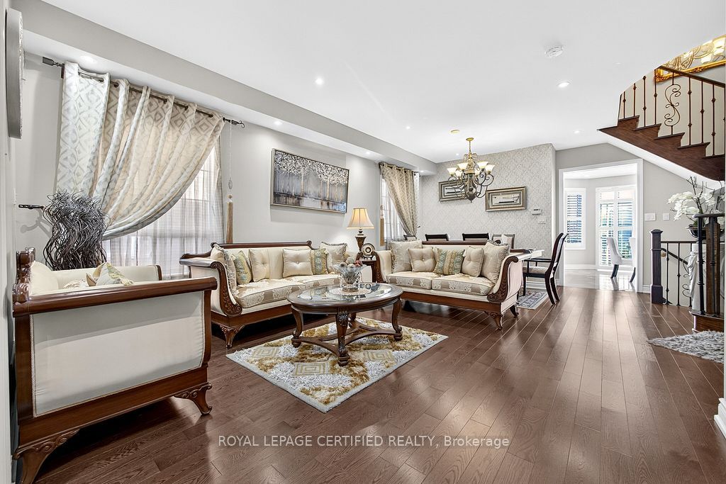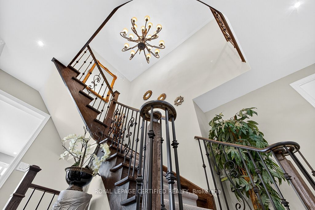 Offering nearly 4,000 sq ft ( 5 washroom layout)of beautifully finished living space, thiss tunning greenpark montana model (2,956 sq ft above grade as per builder) is located on aquiet, family-friendly street in one of oakville's most desirable communities, just minutesfrom the new oakville hospital and surrounded by scenic trails and green space. This extensively renovated home (over $300k spent) features 9-ft ceilings, 8-ft custom doors, smooth ceilings on the main level. Elegant hardwood spiral staircase with wrought iron pickets, hardwood flooring, california shutters, gas fireplace, pot lights, and modern light fixtures throughout. This exclusive 5-washroom layout( 3 full on 2nd floor) model sits on a quietstreet. Upgraded kitchen showcasing extended tall white cabinetry, granite countertops, backsplash, central island, and stainless steel appliances, a very convenient office andlaundry on the main level. A perfect luxurious model home for family breakfasts, entertainment,or perfect for evening parties. The main floor is adorned with premium 24x24 porcelain tiles, adding to the luxurious feel. Upstairs, you'll find four spacious bedrooms, three full bathrooms on the second level, and a versatile additional sitting area or den ideal for a homeoffice, kids' play area, or relaxing space. A fully finished walk-out basement with kitchen and3-pc washroom along with electric fireplace. Major updates include a new hot water tank (owned,2024), furnace and central a/c (2021), and roof (2020). This thoughtfully upgraded and distinctlayout is designed for modern family living. This move-in-ready home is a rare find in apremium oakville location.