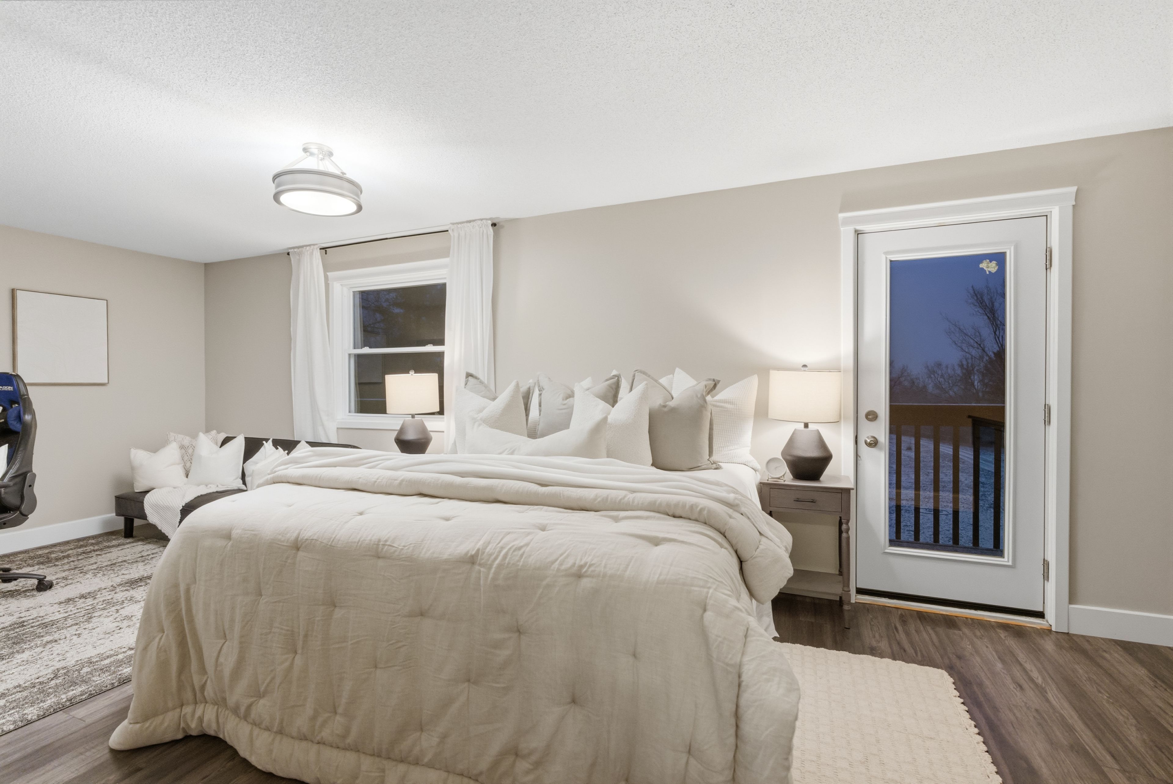 • Main floor features a primary suite with walk-in closet and ensuite.