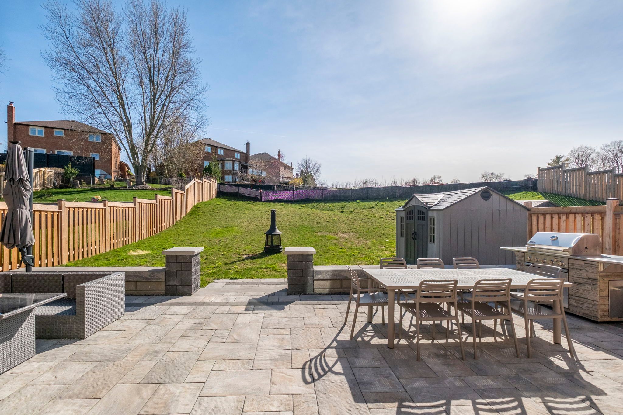 Stunning upgraded 5-bedroom family home featuring approximately $90,000 in exterior upgrades, including premium interlock driveway, custom stone front steps, side stone walkway, professionally landscaped backyard, premium patio and outdoor entertaining area. Exceptional curb appeal and a private backyard setting backing onto open space. Approximately $150,000 in interior upgrades throughout, including wide-plank hardwood floors, upgraded staircase, high ceilings, upgraded interior doors, oversized 4-panel window, rough-in plumbing in basement for future development potential, and premium finishes throughout. Designer kitchen includes approximately $32,000 in upgraded jennair appliances, including refrigerator, gas range, built-in oven, hood fan, dishwasher and wine fridge. Additional value includes approximately $8,500 security system with cameras and alarm. With approximately $240,000 in combined owner upgrades, this beautifully maintained home offers exceptional quality, comfort and lifestyle.