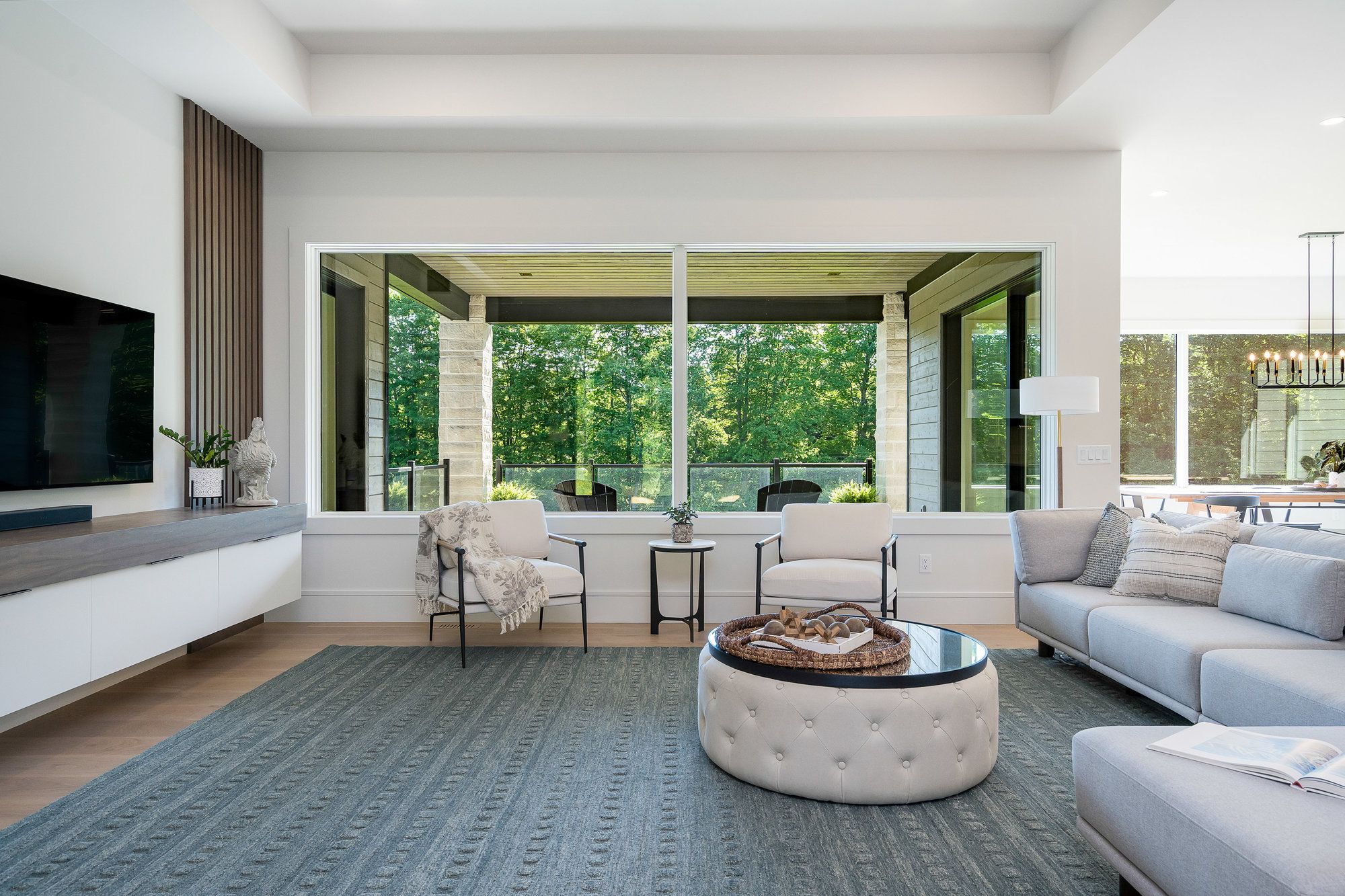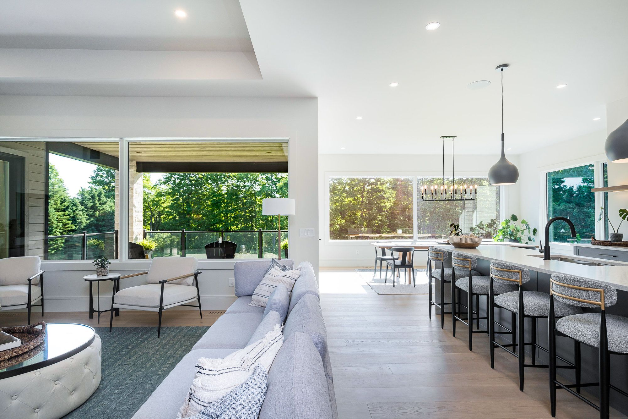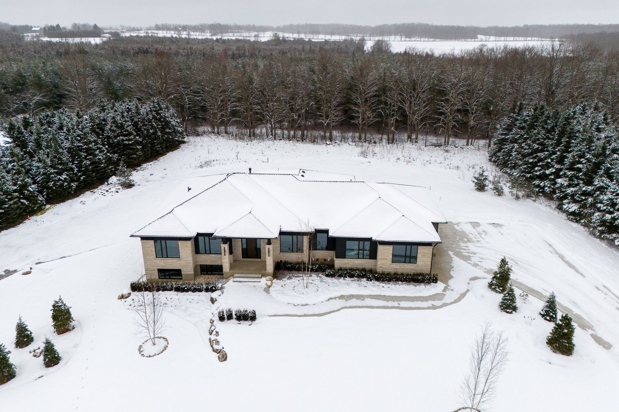 A stunning blend of modern luxury and thoughtful design, this custom-built home is set on a private 2-acre lot and offers an exceptional setting for family or multi-family living. The expansive 2,900 sq ft main floor features soaring 10-foot ceilings and oversized windows that flood the home with natural light. At the heart of the home, the chef's kitchen impresses with a dramatic caesarstone waterfall island, premium jennair appliances, floor-to-ceiling custom cabinetry, and a walk-in pantry-perfect for everyday living and effortless entertaining. The open-concept living and dining areas are warm and inviting, highlighted by a custom woodwork entertainment wall and sleek linear gas fireplace. Step out from the dining area or the private primary suite onto the covered porch and enjoy a peaceful backdrop of mature maple and spruce trees, ideal for morning coffees or evening gatherings. Designed for real life, the main level includes two additional bedrooms, a stylish full bathroom, powder room, dedicated office, and a generous laundry/mudroom built to handle active lifestyles. The expansive 2,700 sq ft walkout lower level offers endless potential for a rec room, kids' zone, gym, or in-law suite. An oversized three-car garage provides direct access to both levels for seamless daily living. Ideally located just minutes from beaver valley ski club, hiking trails, and the new hospital, this is a home that truly balances luxury, comfort, and lifestyle. Tarion warranty included. A rare opportunity to secure a beautifully crafted home designed for how families live, grow, and gather.
