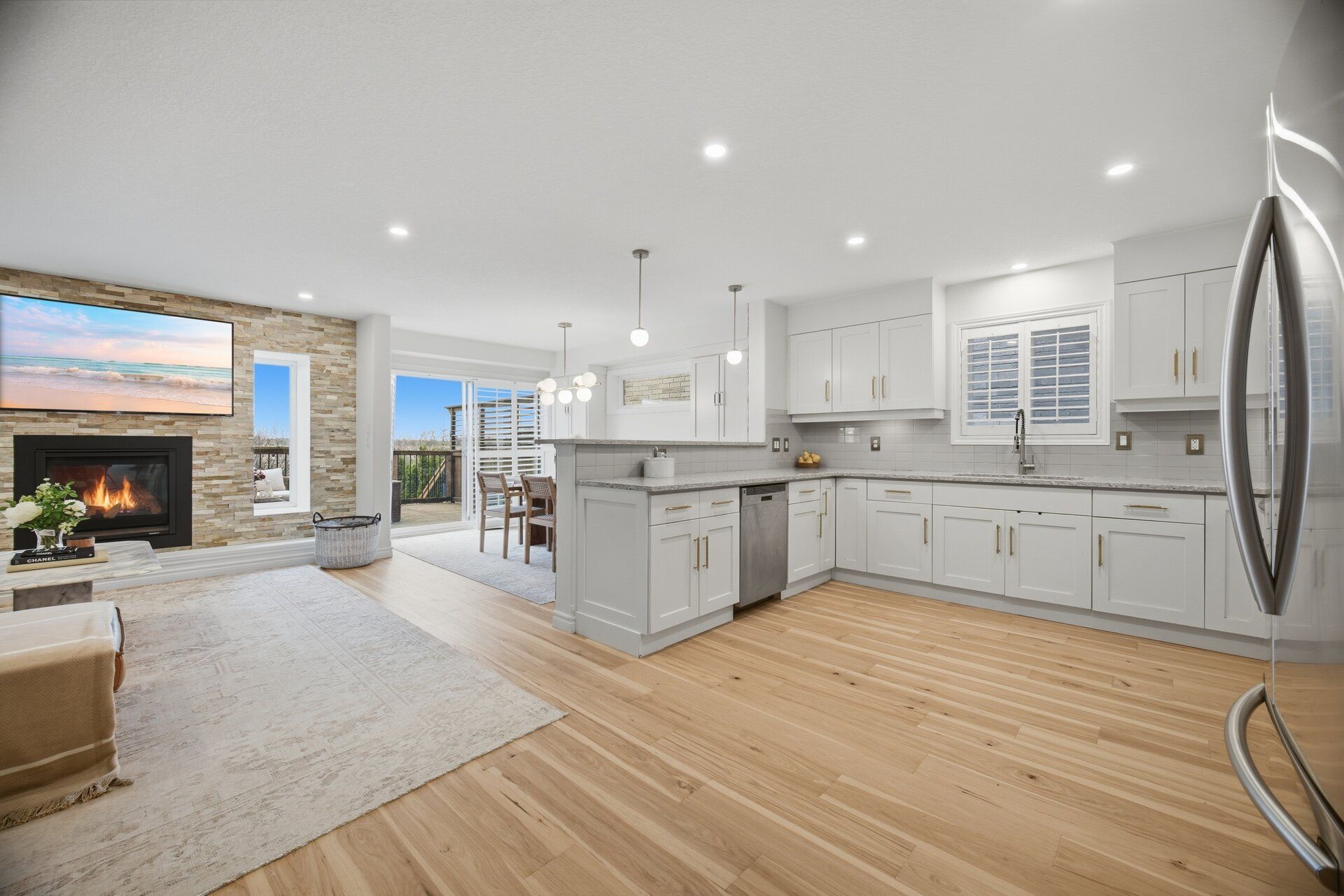 True pride in ownership - where design, privacy, and effortless living come together. Meticulously transformed into a true turn-key retreat, where every detail has been elevated with care, intention, and exceptional craftsmanship. This is luxury living backing on to no neighbours in guelph's desirable east end. A beautifully upgraded, completely turn-key detached home offering approx. 2500 sqft of total living space. This home has undergone extensive, high-end renovations with significant investment throughout, leaving nothing for the next owner to do but move in and enjoy. Featuring premium hardwood flooring throughout (minus basement stairs), freshly painted, upgraded lighting with pot lights, and elegant finishes at every turn. Features a stunning modern kitchen complete with quartz countertops and additional custom cabinetry/pantry space. With 4 spacious bedrooms and 2. 5 bathrooms on the main and and 2nd floor, plus a fully finished walkout basement offering a large recreation room, an additional bedroom, and a 2-piece bath, this home delivers exceptional flexibility for families of all sizes. Step outside to your private backyard retreat surrounded by mature trees that create a peaceful, secluded setting, especially in the summer months. Enjoy two expansive decks (upper and lower) thanks to the walkout design, perfect for entertaining, relaxing, or taking in guelph's renowned birdlife. The yard is fully equipped for family living with a kids' play set and beautifully designed outdoor spaces plus a newly completed side concrete walkway and stairs leading to the backyard. Additional highlights include two fireplaces, a 1. 5 car garage (total 4 parking spaces), and a layout designed for both comfort and functionality. With a strong community feel, excellent schools, parks, and natural surroundings, this home offers the perfect blend of luxury, privacy, and convenience. This is true turn-key living - every detail has been taken care of. Just move in and enjoy.