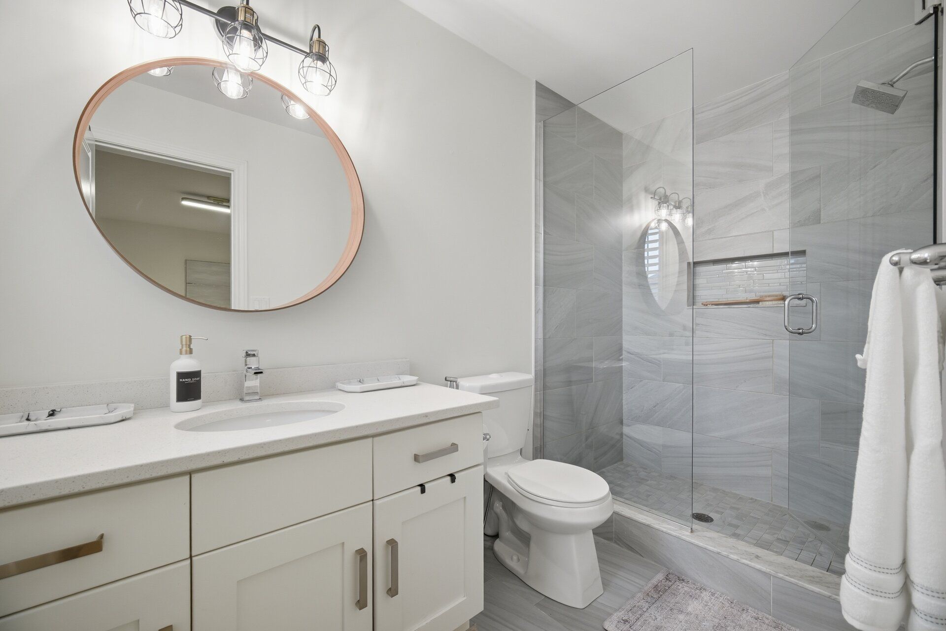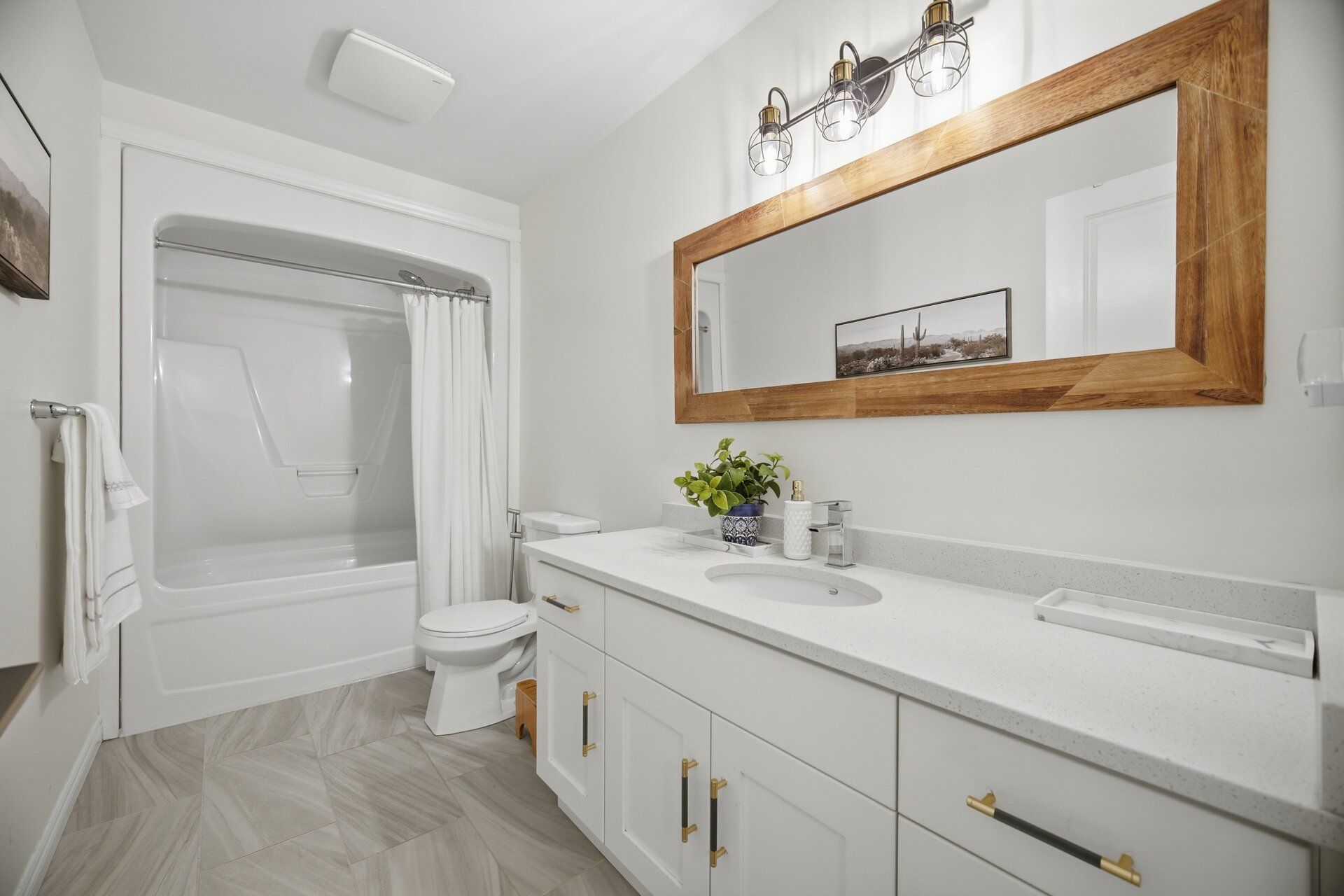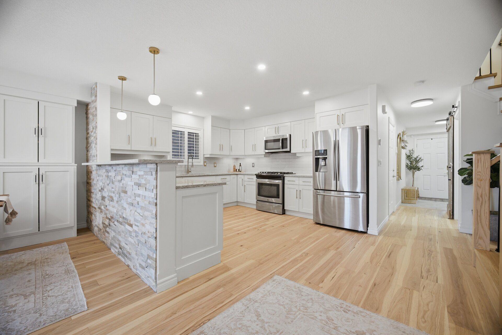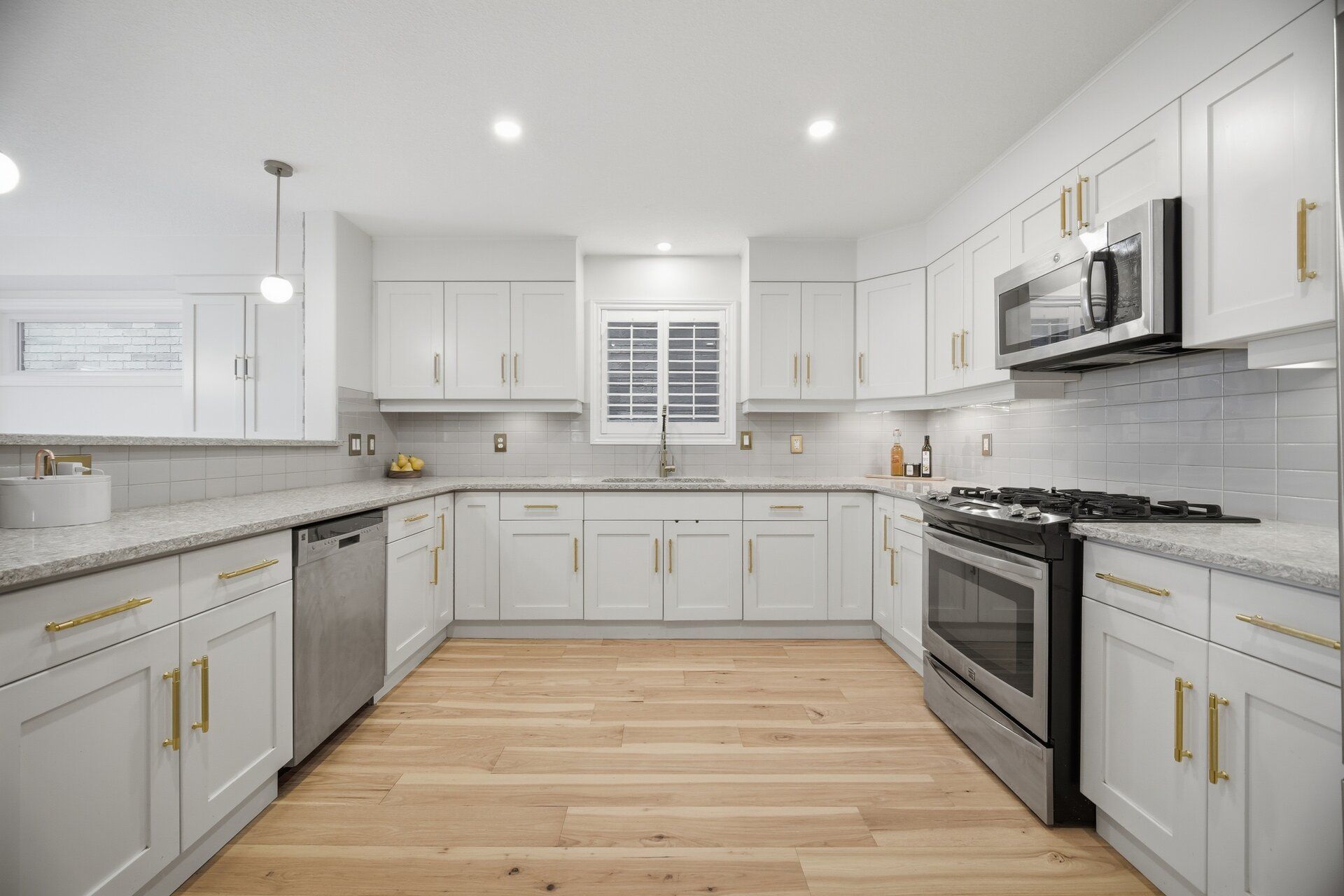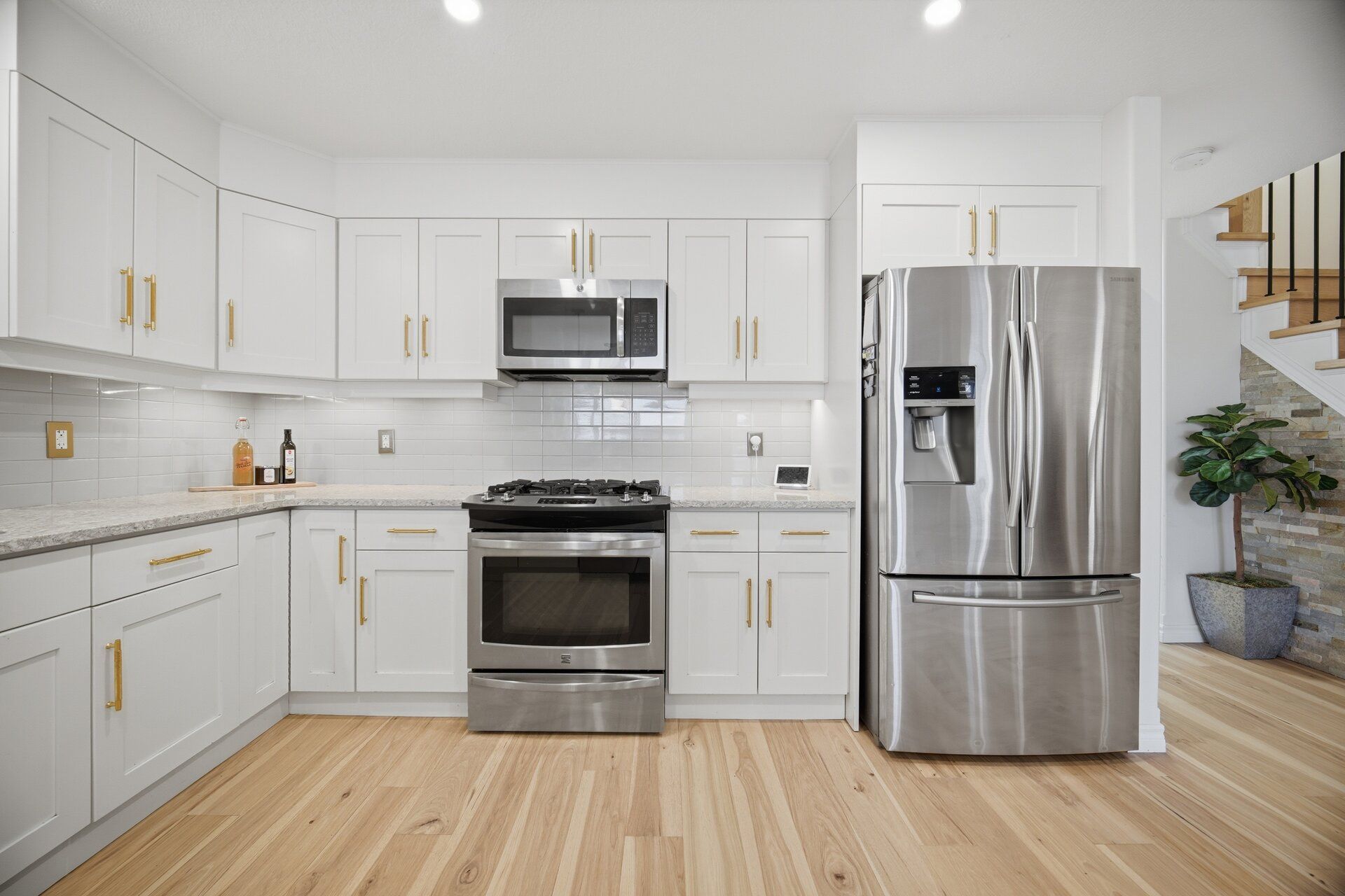 • Upgraded kitchen featuring quartz countertops and custom cabinetry.